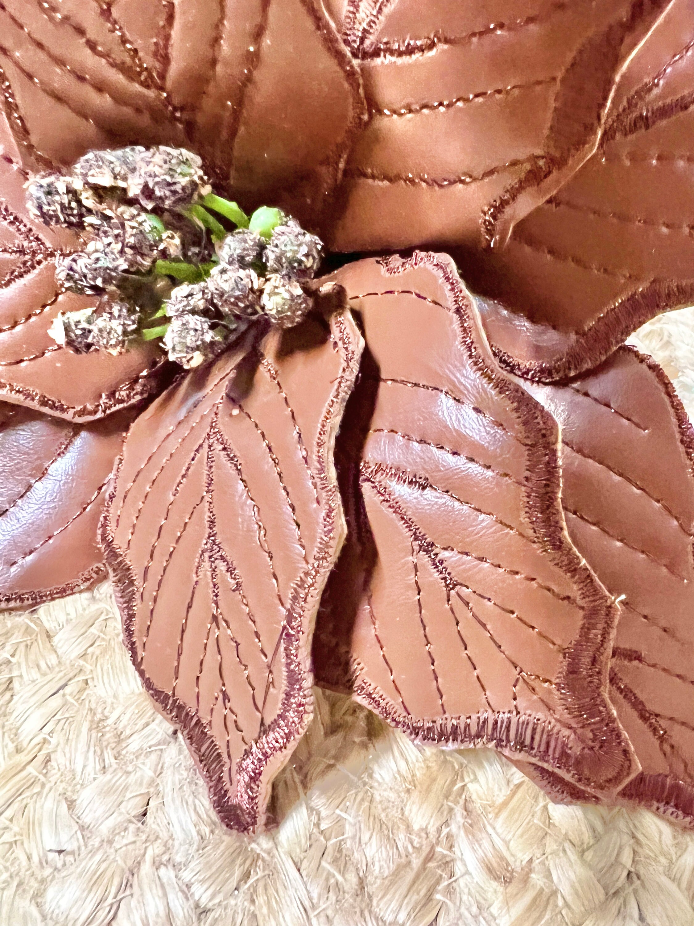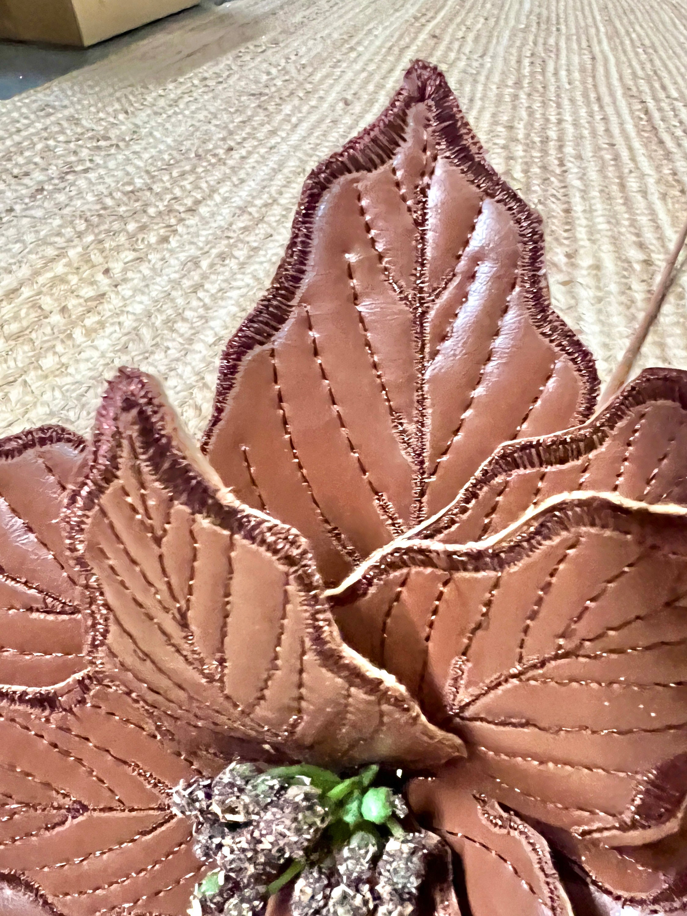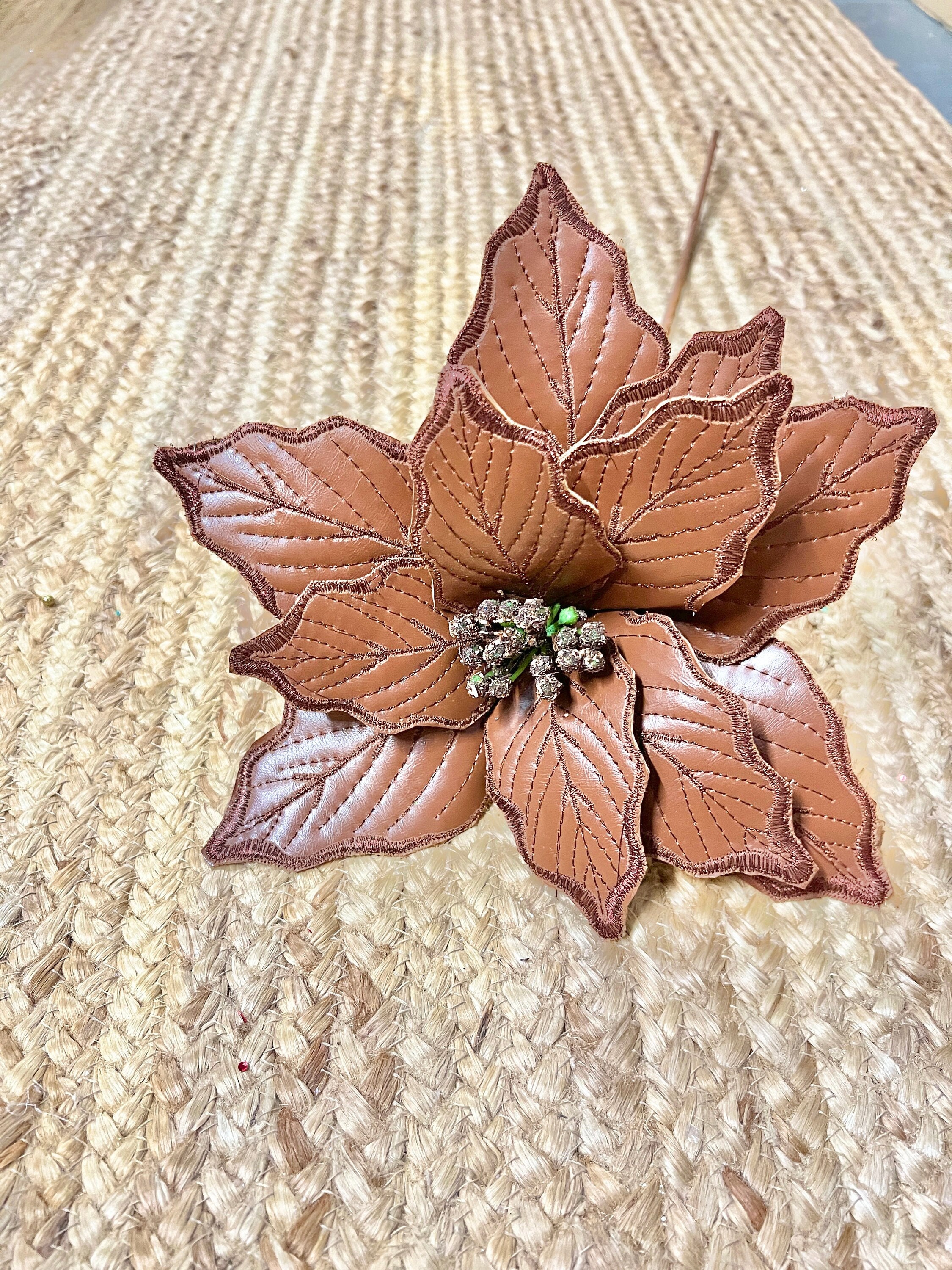 Faux Leather Chocolate Brown Poinsettia Stem ~ 20 inch
