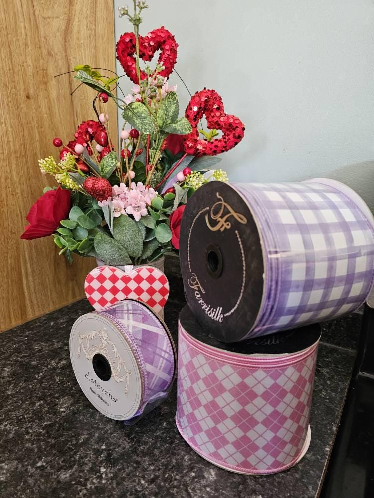 1.5” D Stevens Purple Plaid Ribbon ~ 5 yards