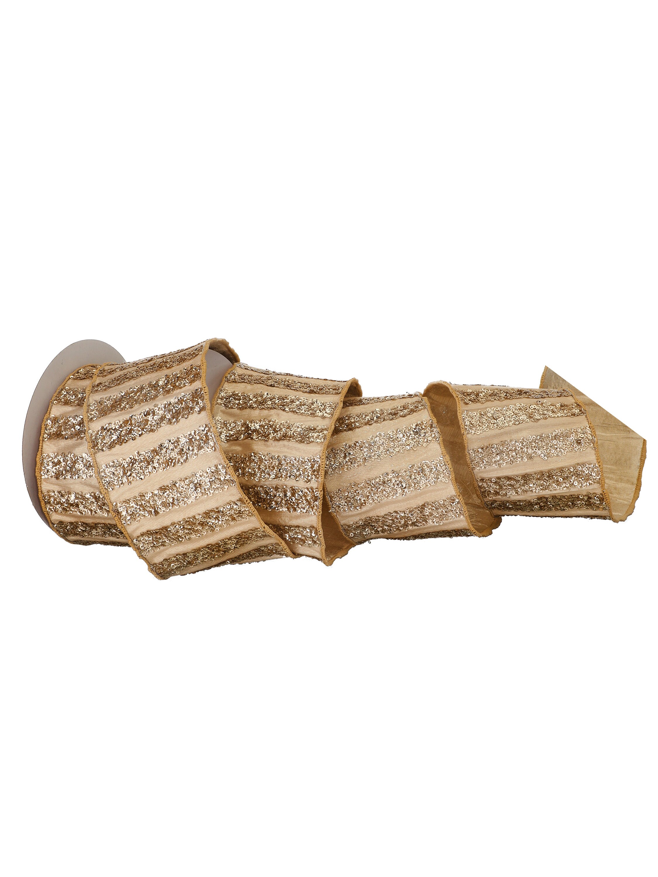 Champagne Sequin Stripe Ribbon, Champagne Christmas Ribbon, Wired Ribbon with Sequin, Champagne Lame Ribbon, Glitzy Christmas Tree Ribbon