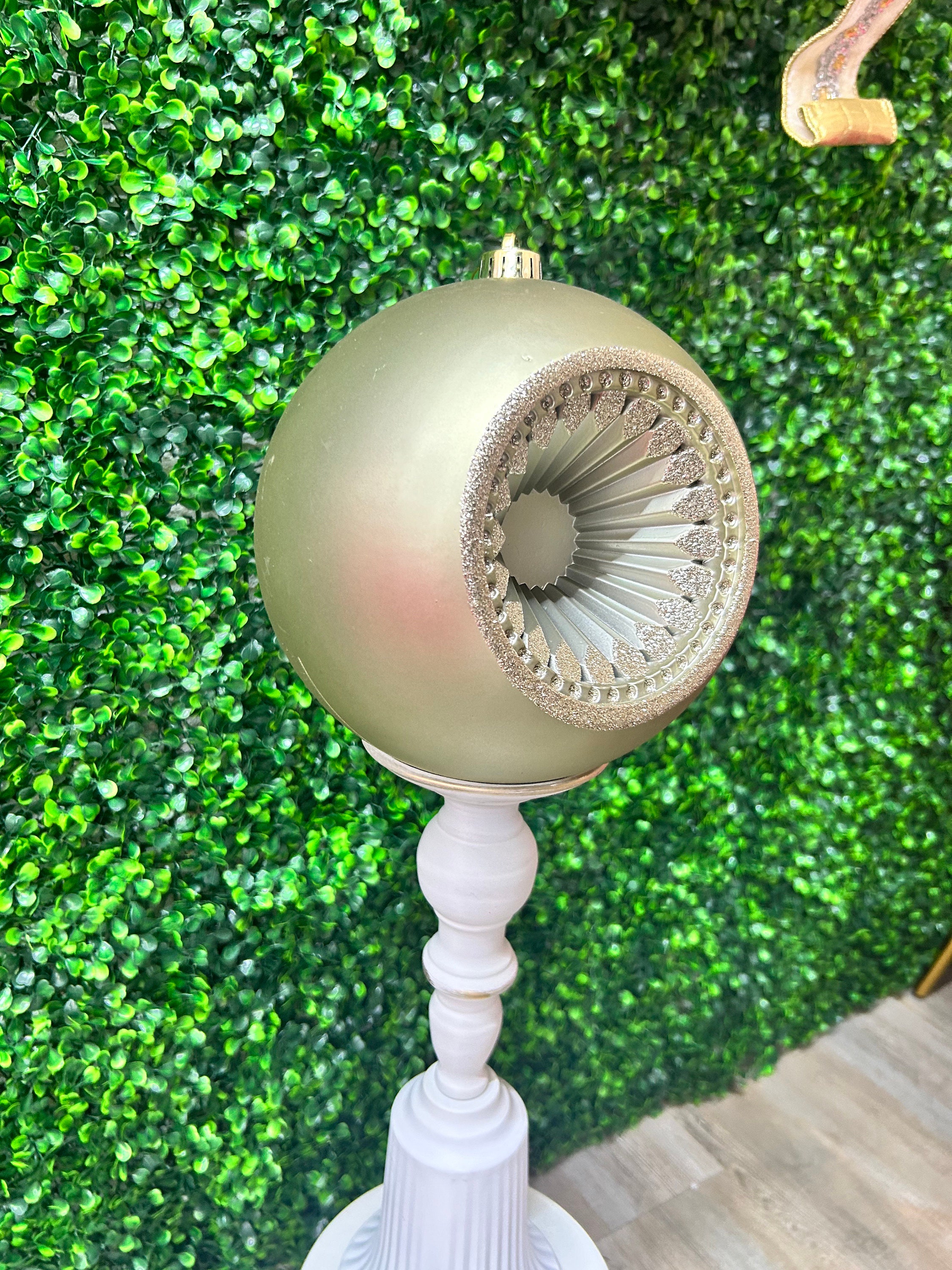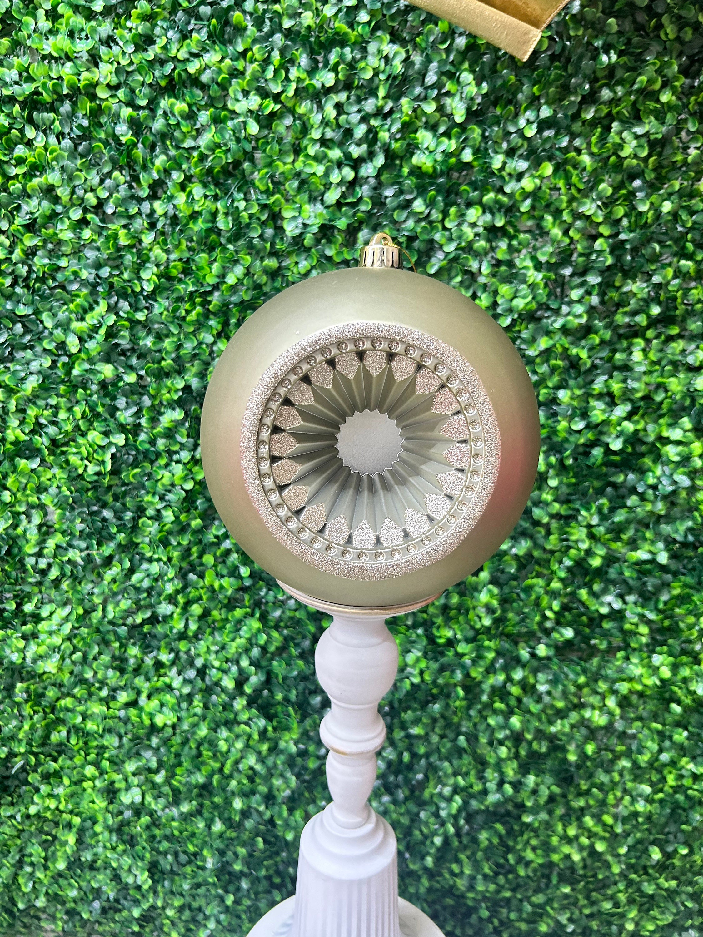 8 Inch Champagne and Gold Shatterproof Flat Open Front Ornament