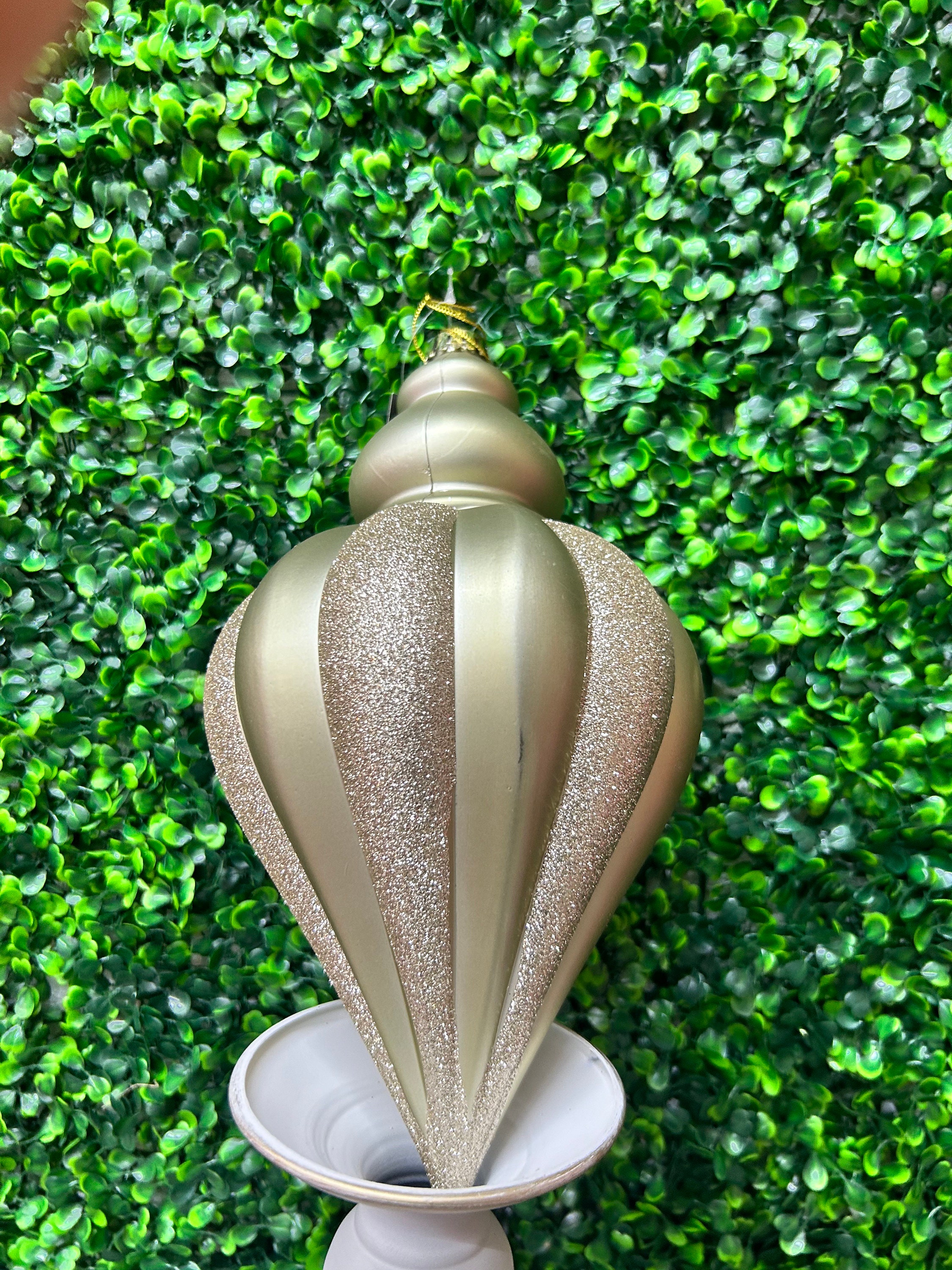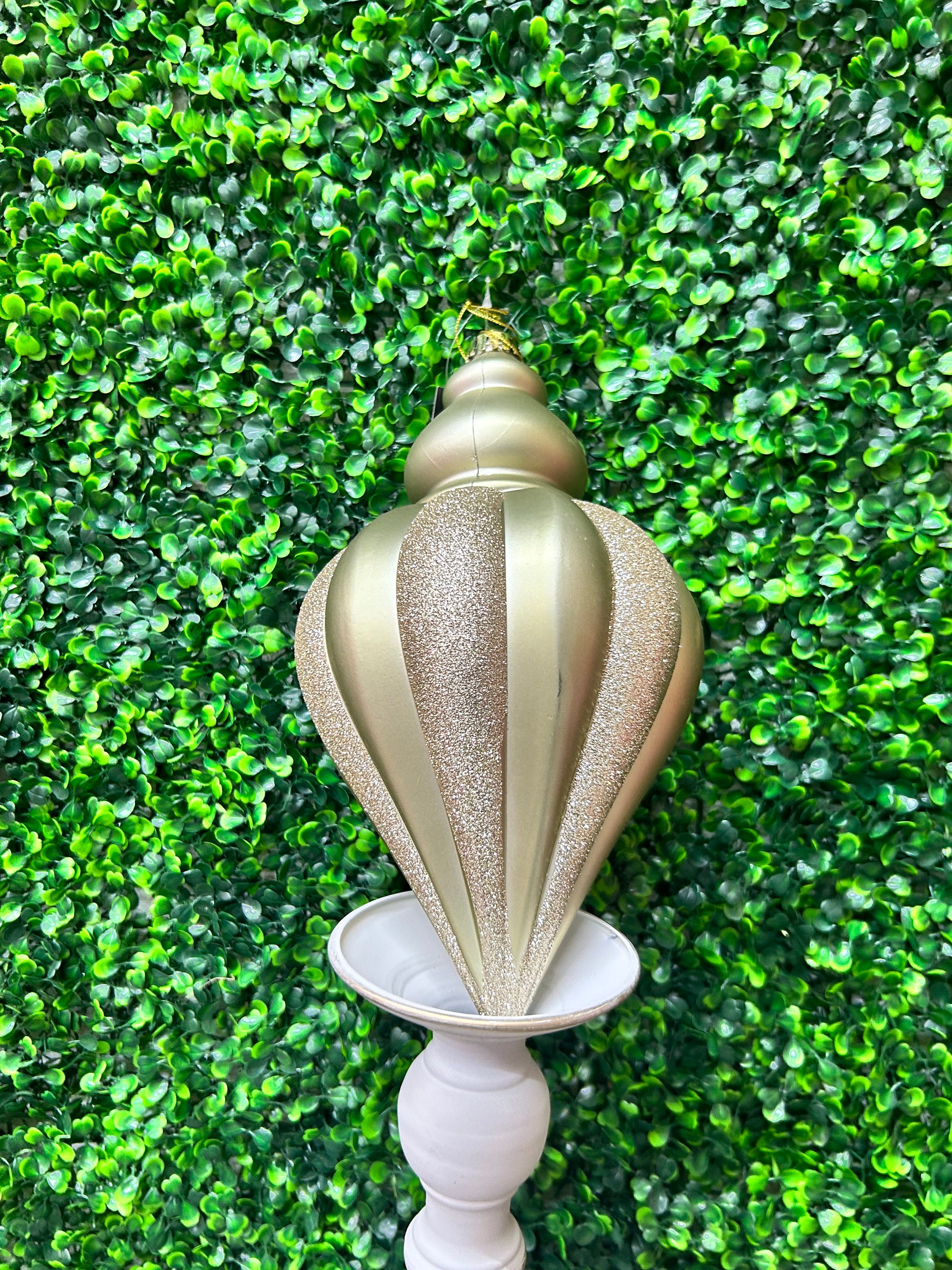 12 Inch Champagne and Gold Glitter Striped Shatterproof Teardrop Finial