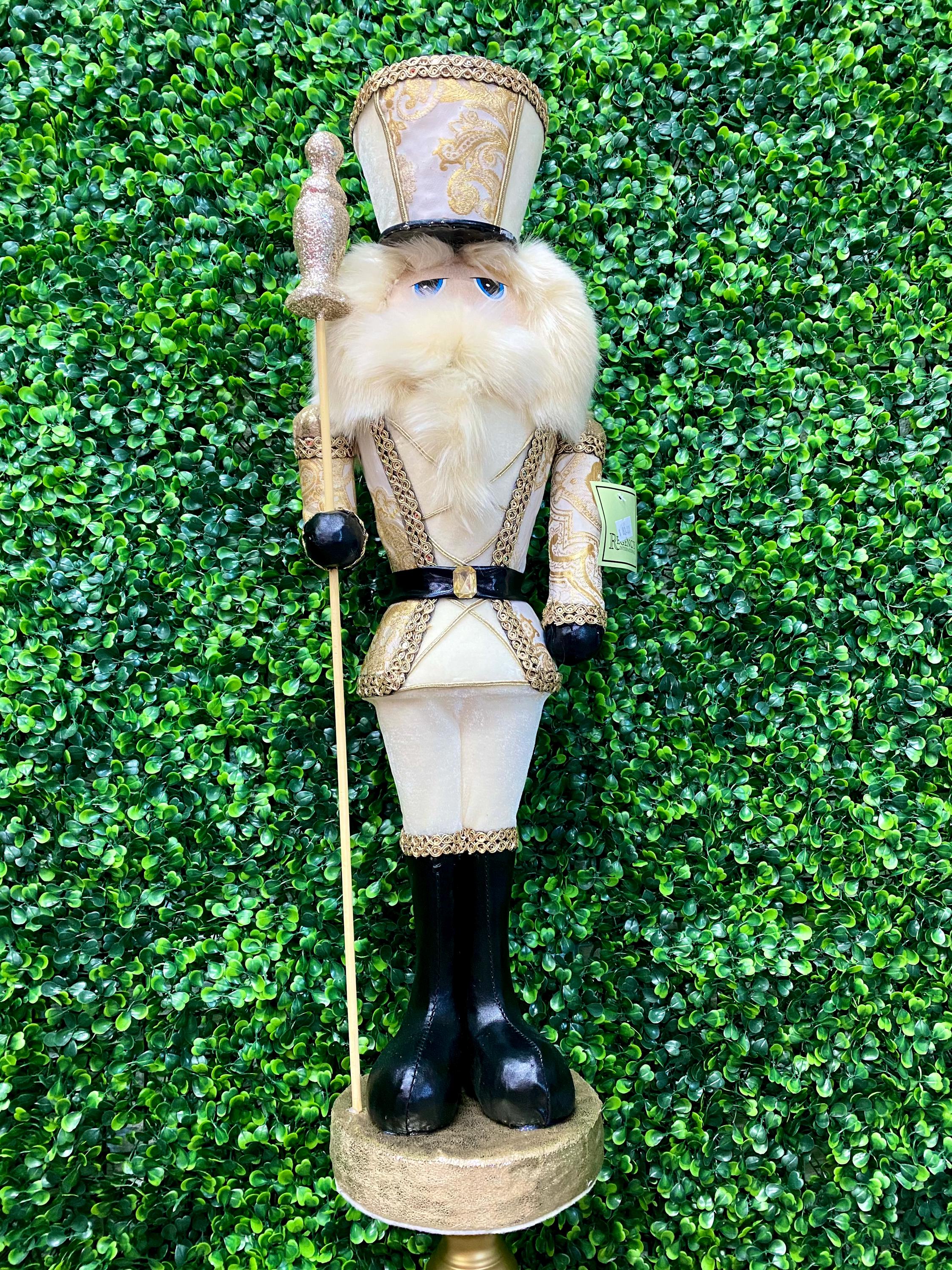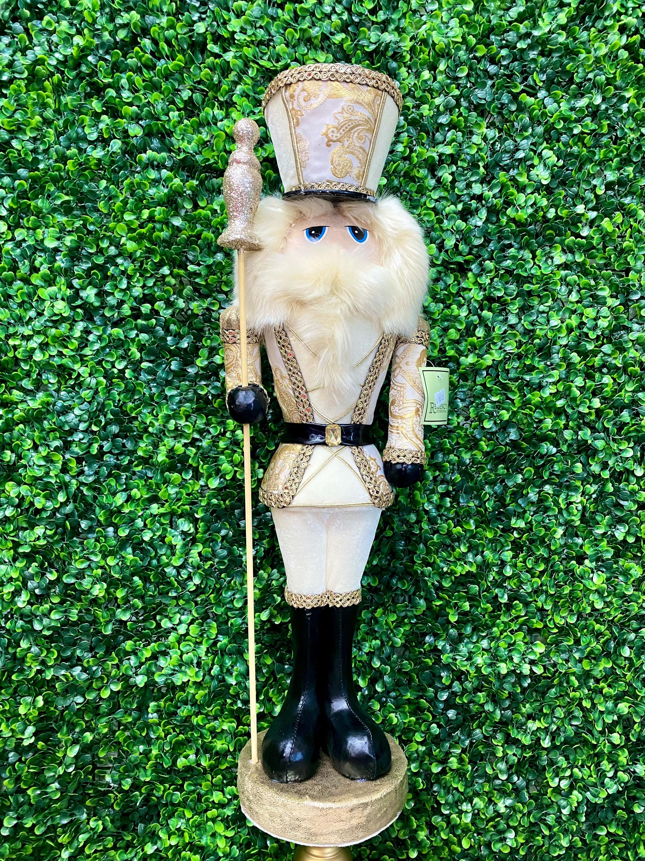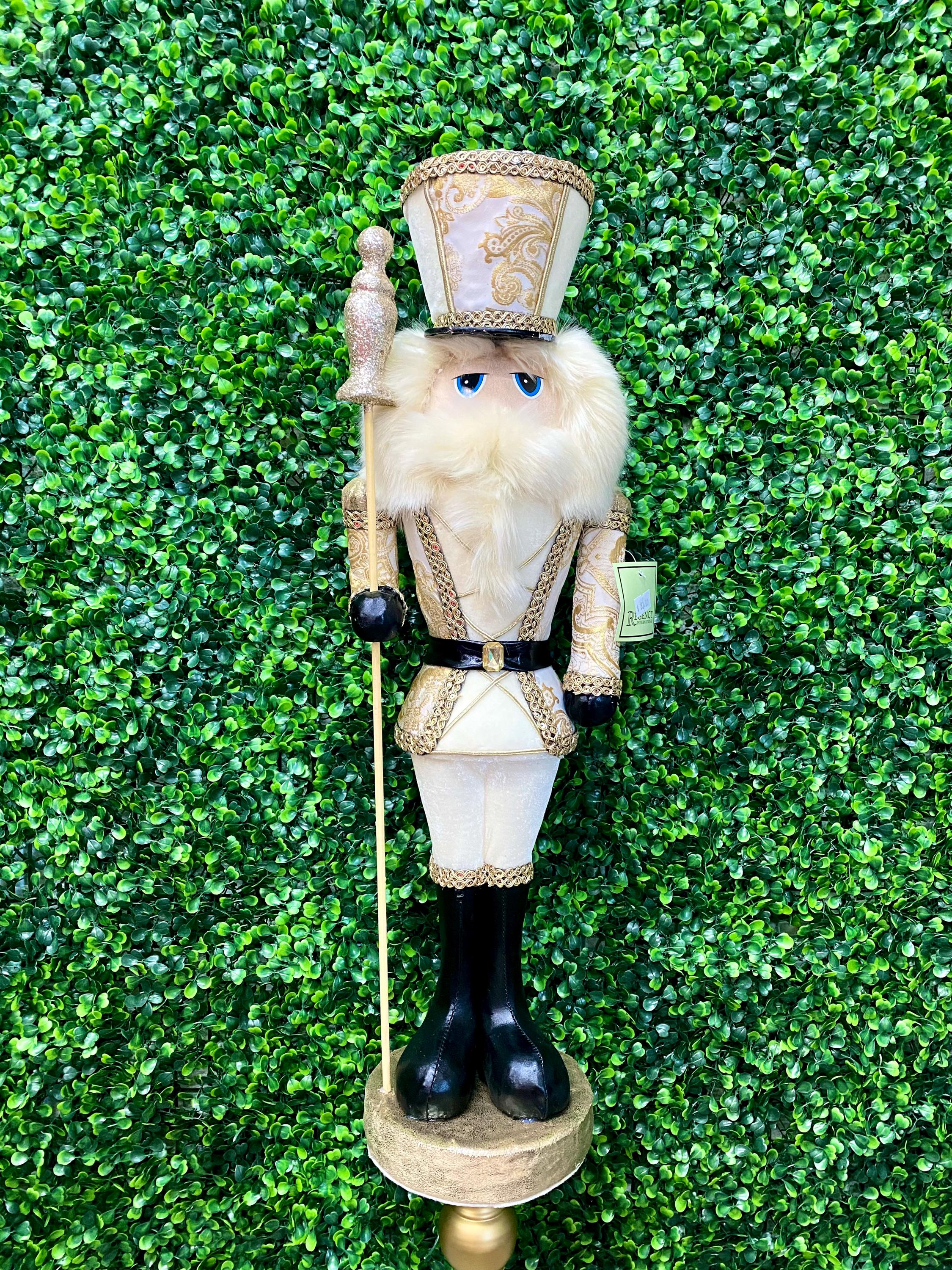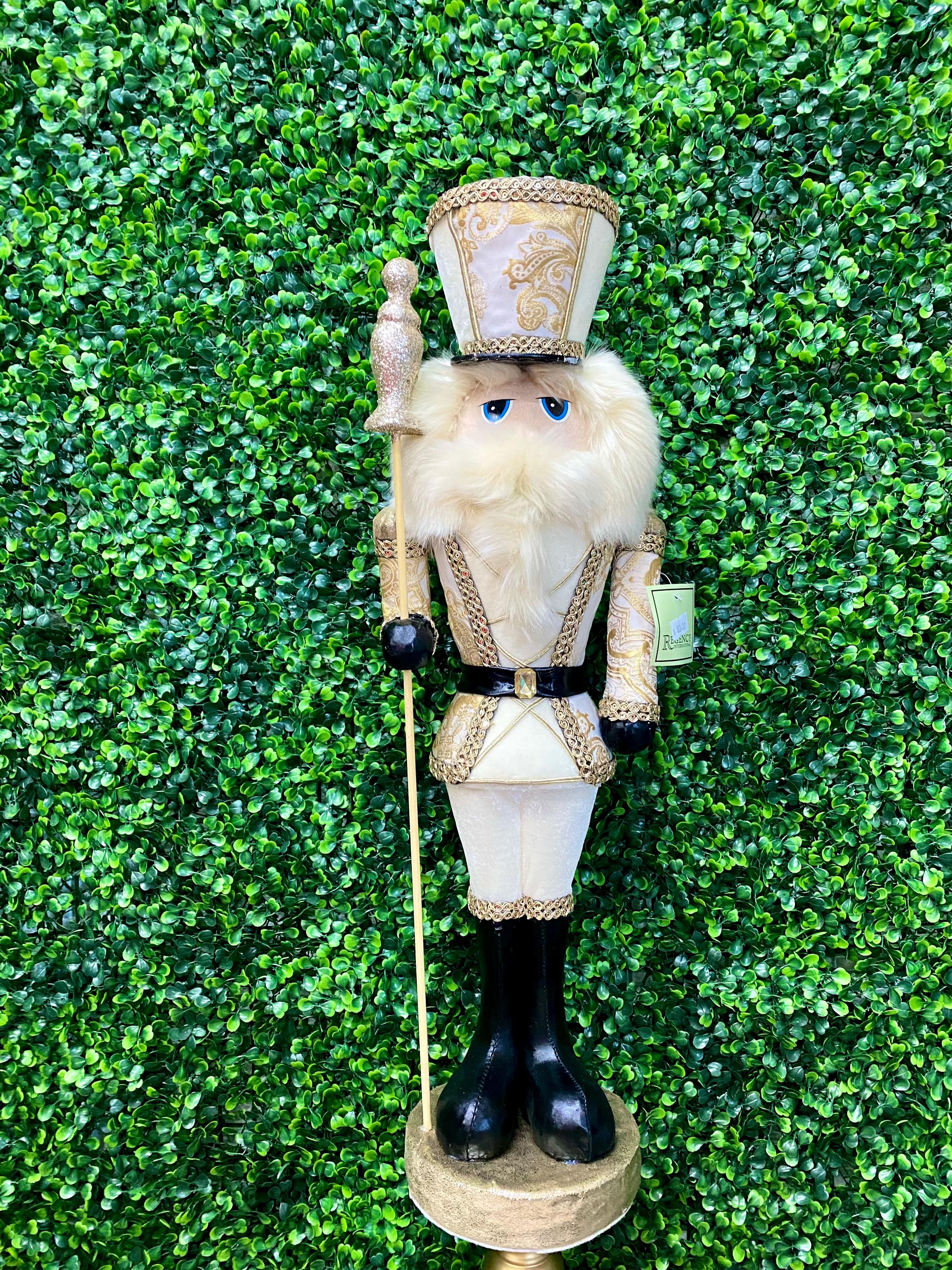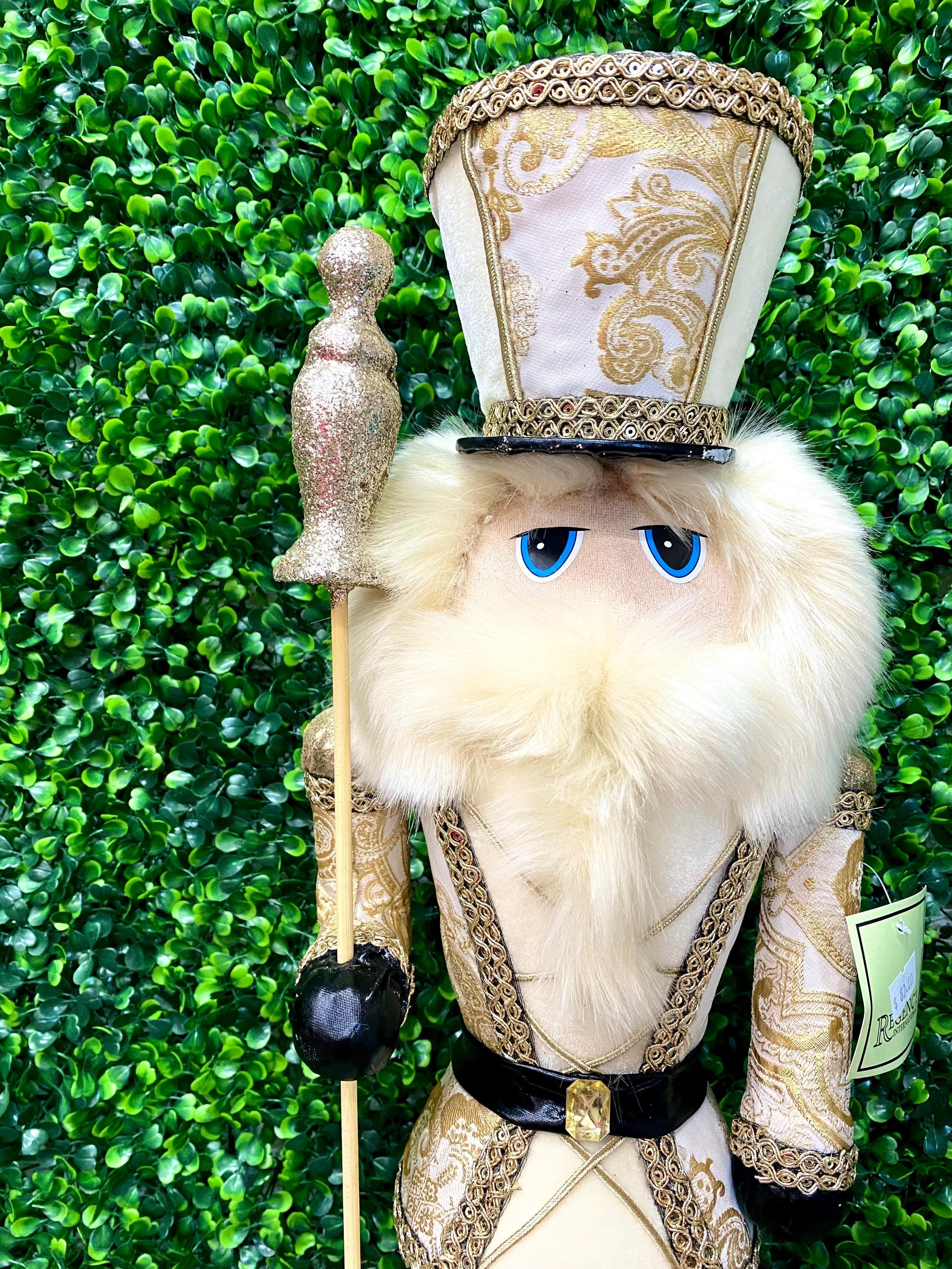 24 inch Standing Fabric Royal Nutcracker - Ivory and Champagne