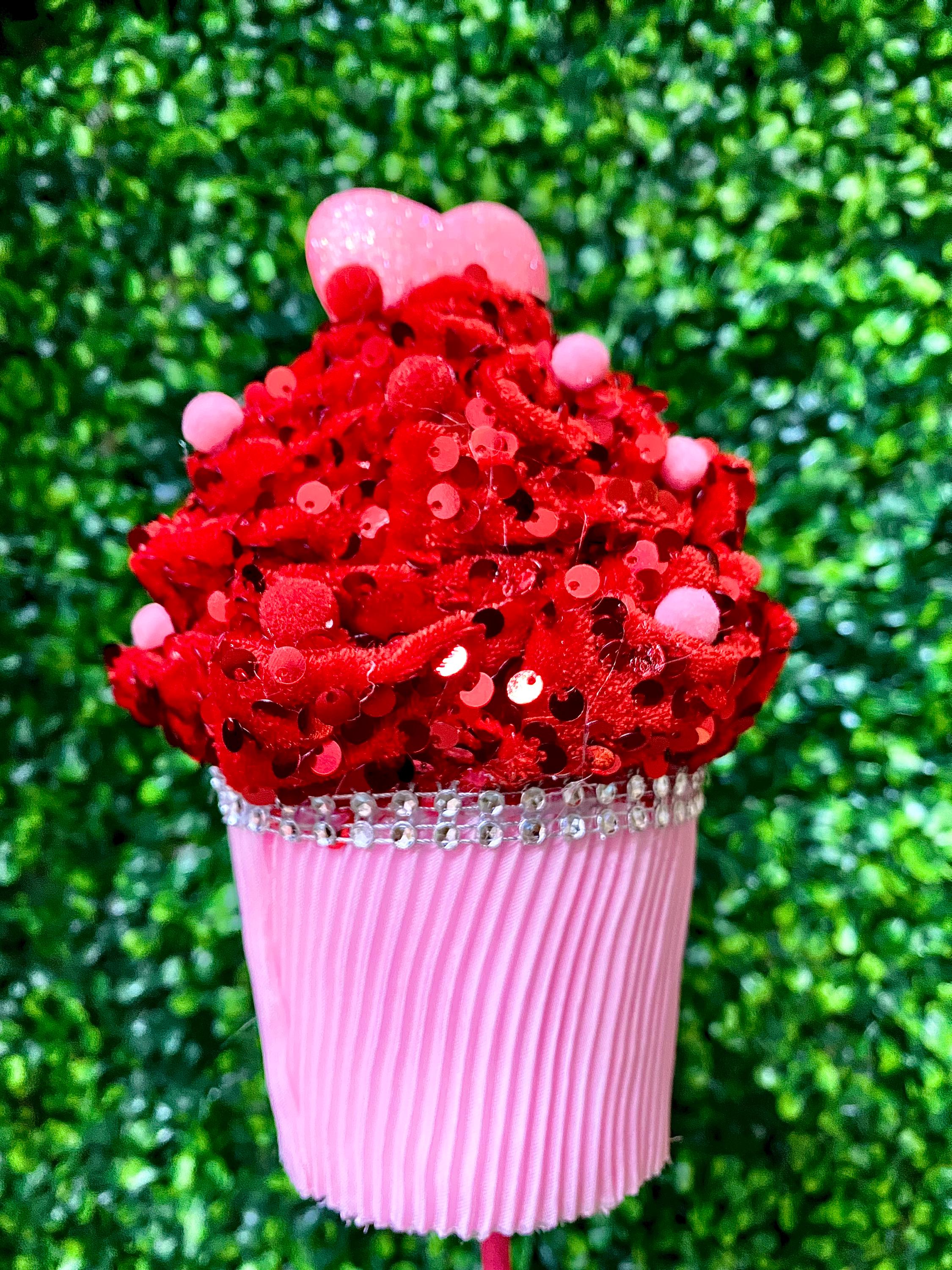 Red and Pink Heart Cupcake Pick - H20 x DIA5 inches