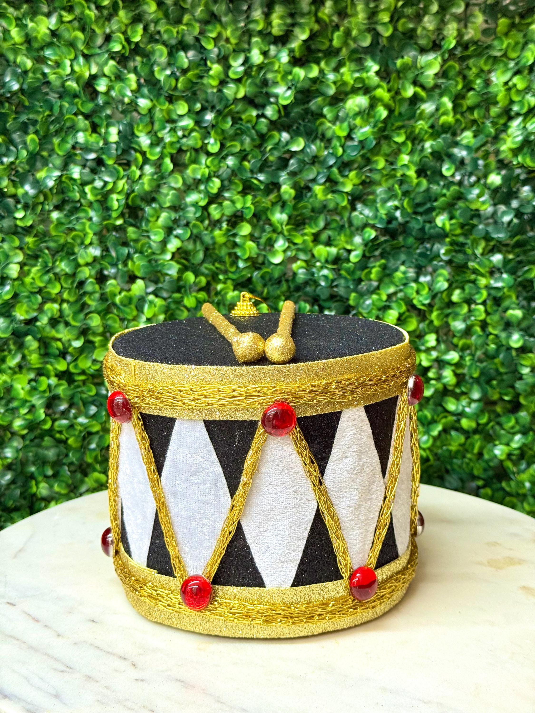 Black White & Gold Foam Glitter Drum - 5in x 6in