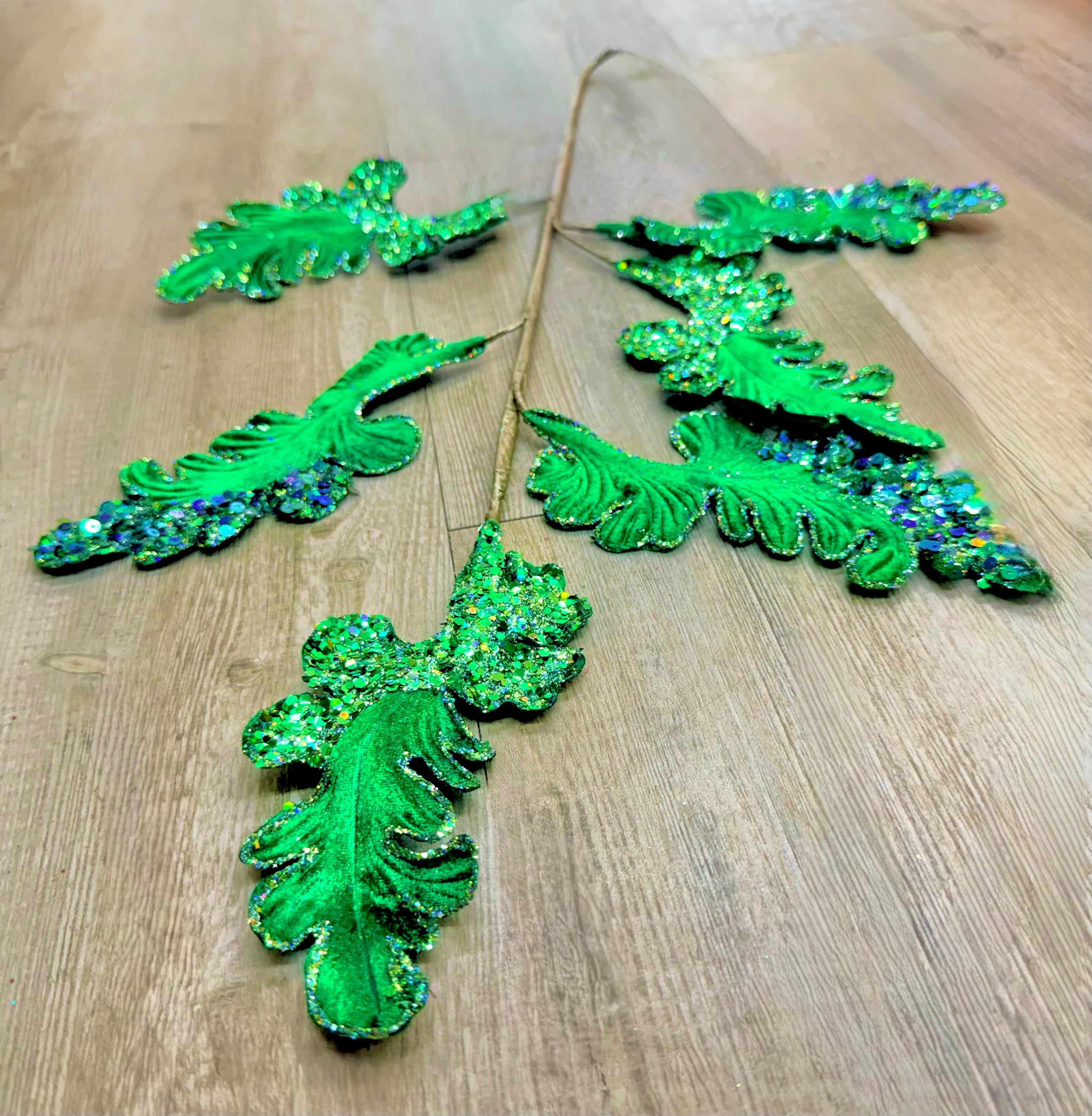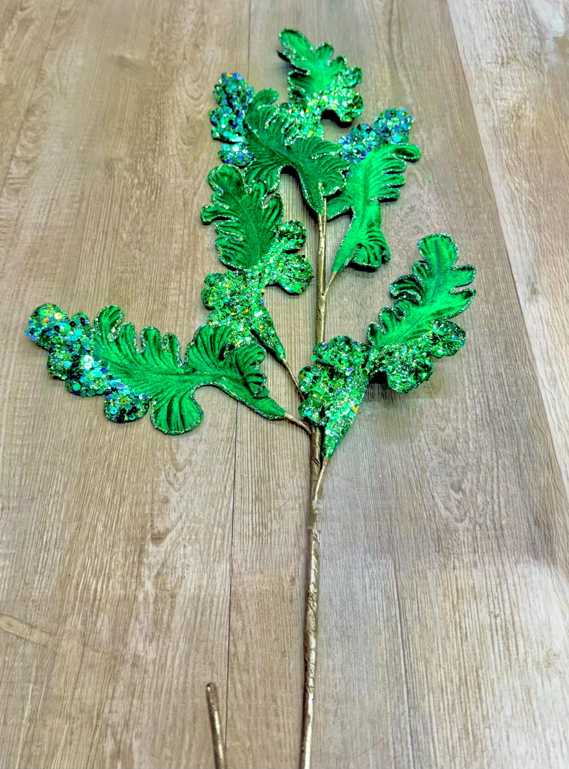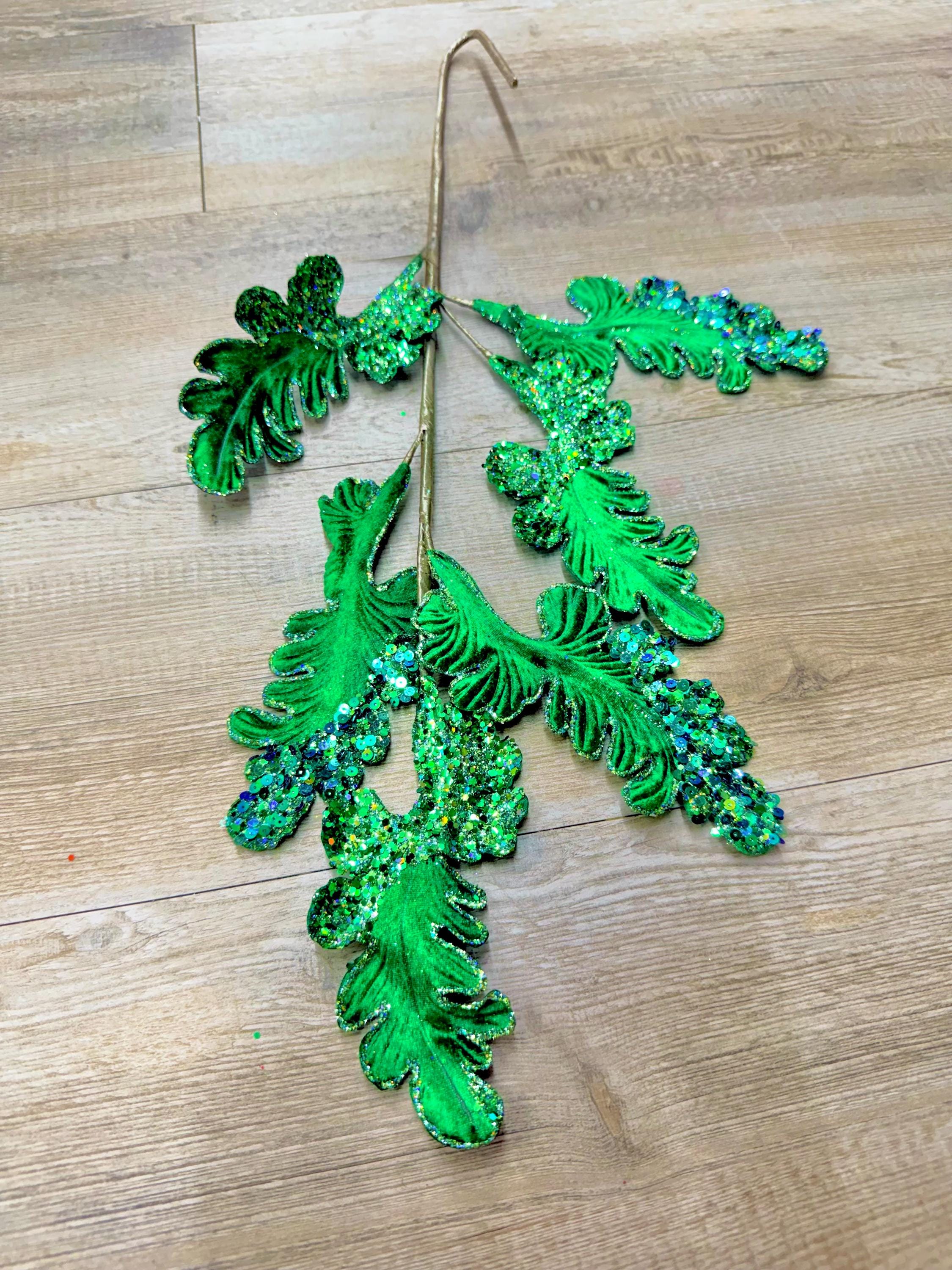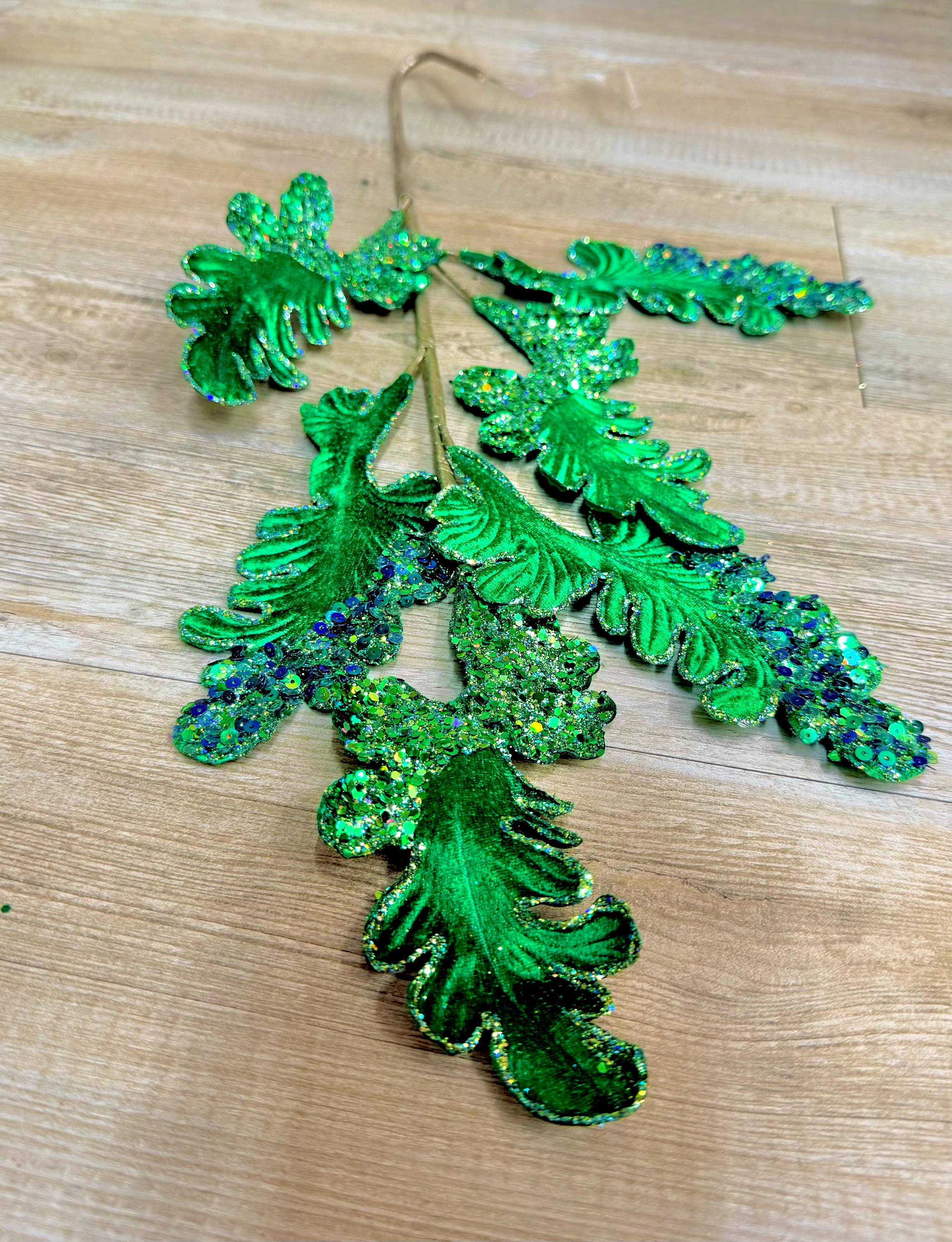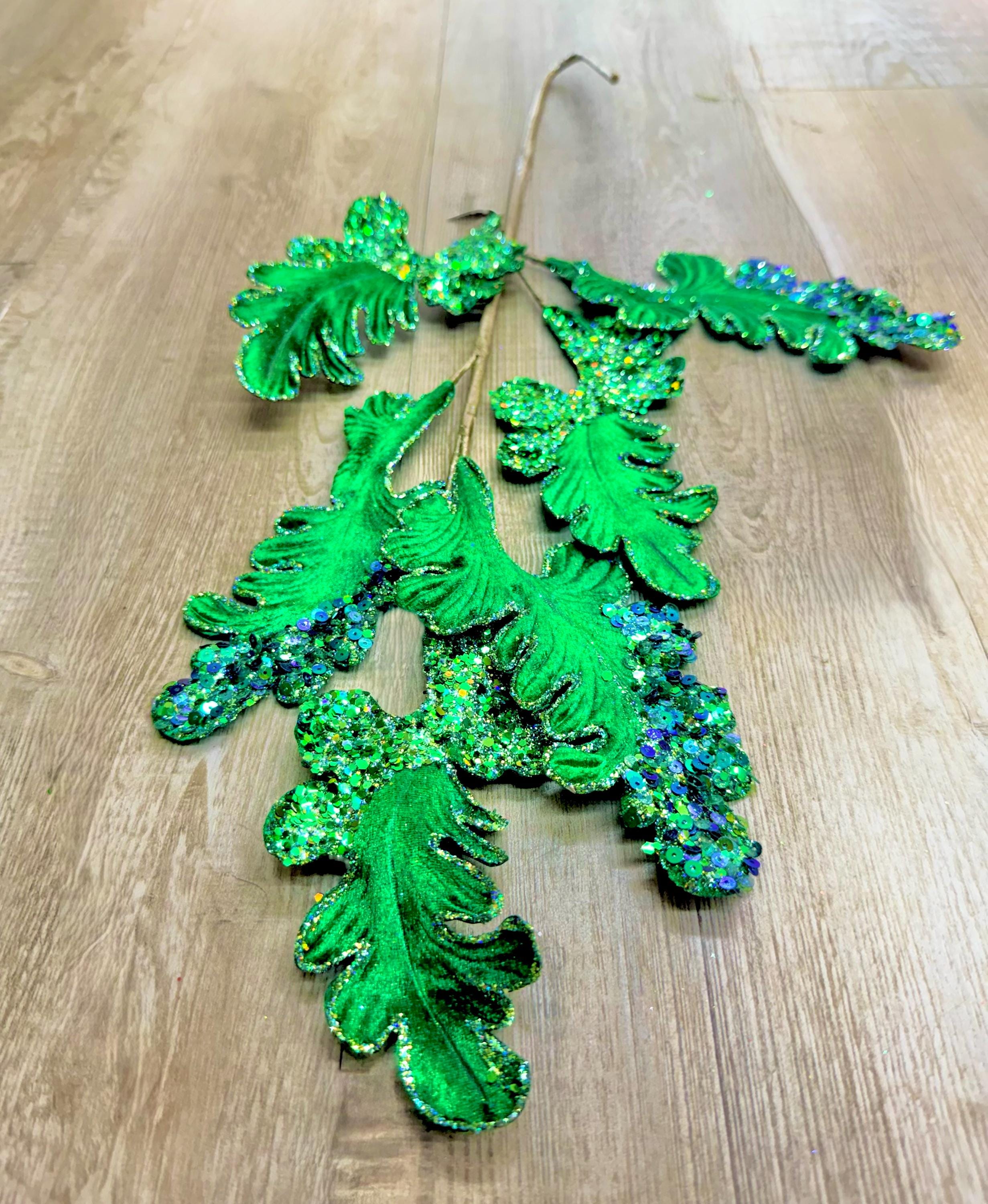 Emerald Green Velvet Acanthus Leaf - 28 inch