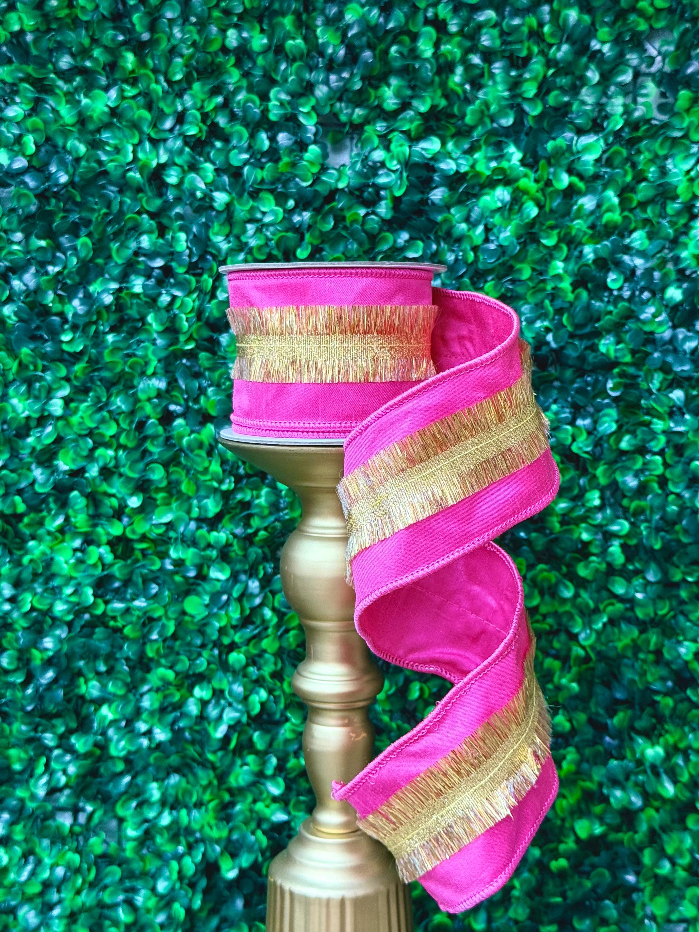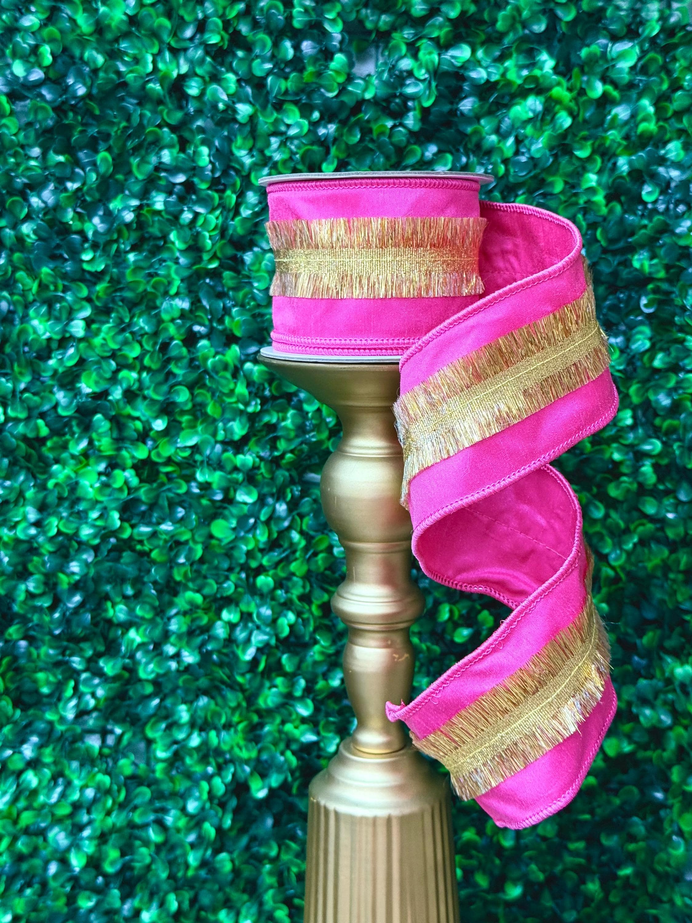 Pink Ribbon with Gold Tinsel -2.5 inch - 10 yards - Wired