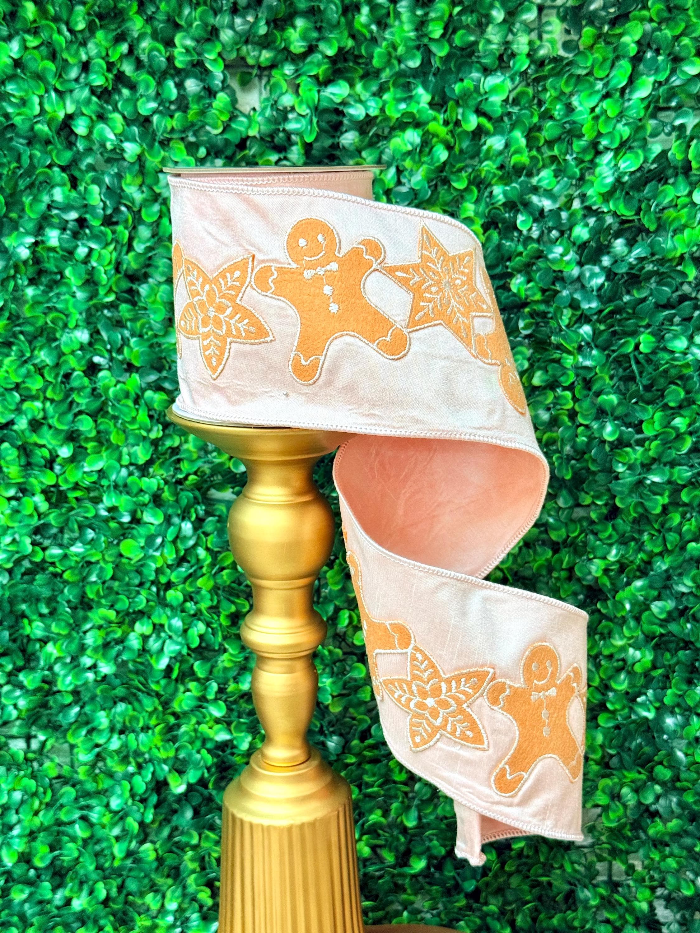 Happy Cookies Gingerbread Christmas Ribbon~ 4 inch ~ 5 yards ~ Wired ~ Farrisilk