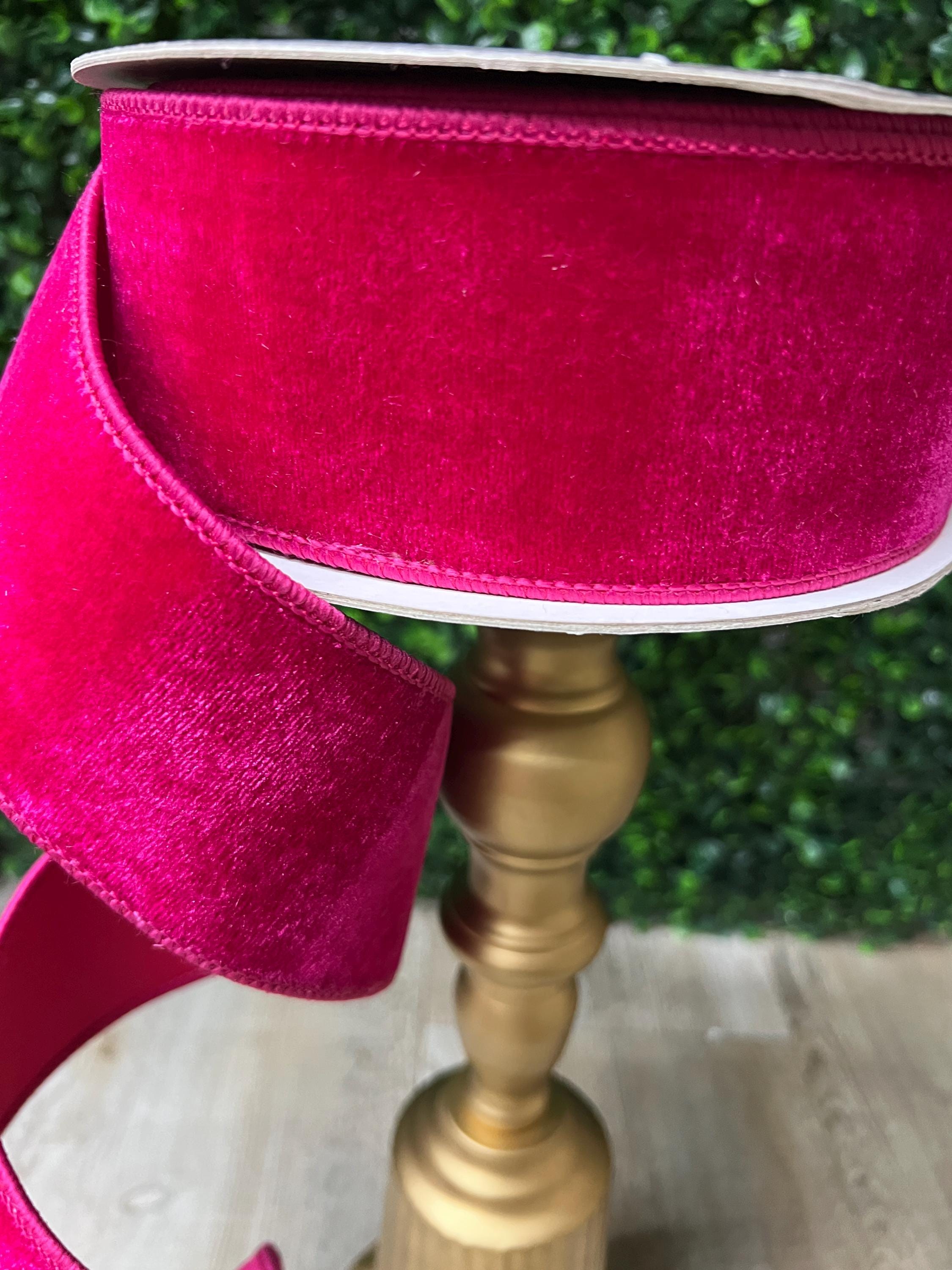 2.5 Inch Hot Pink Velvet Ribbon ~ 10 Yards ~ Wired