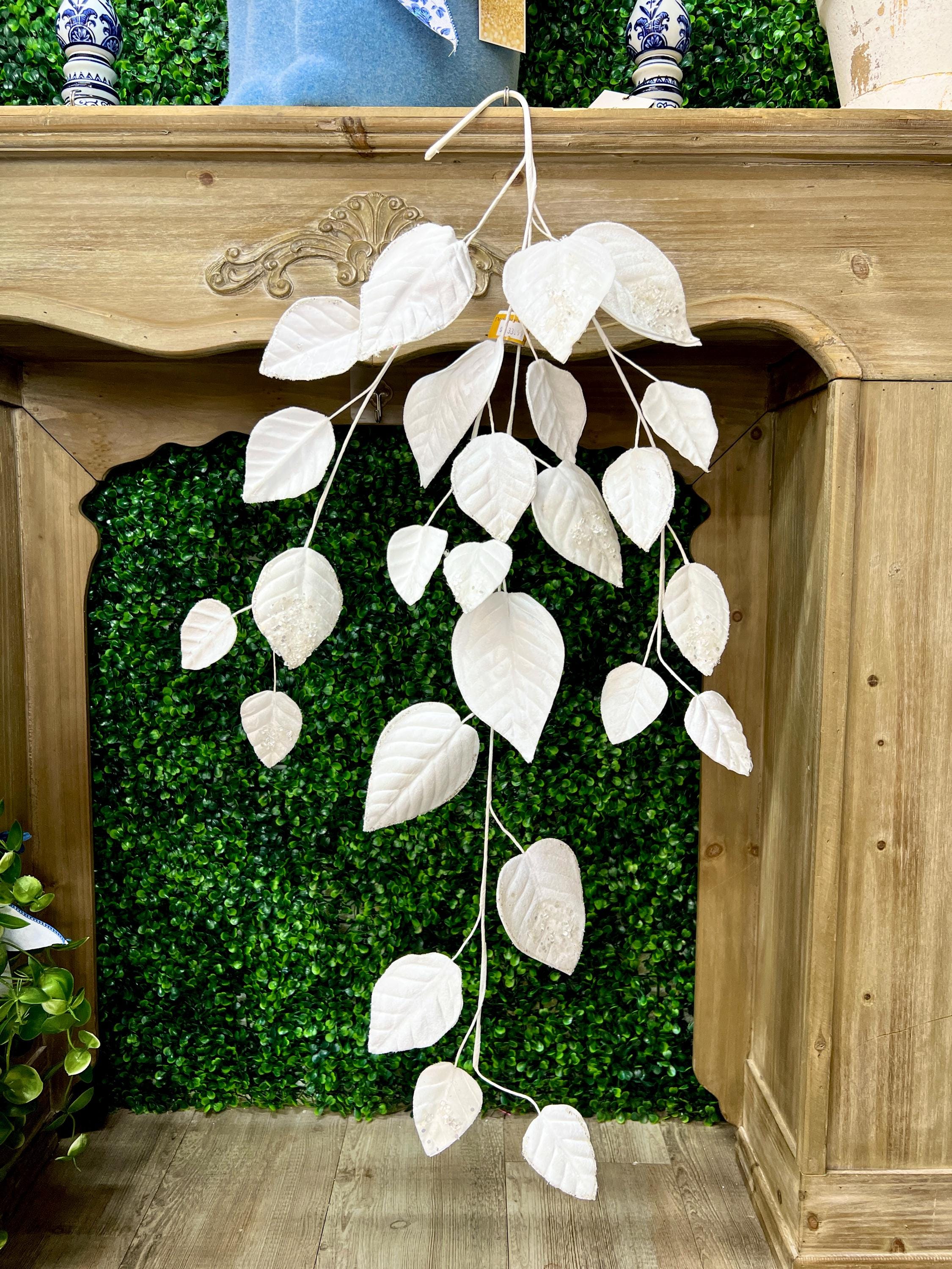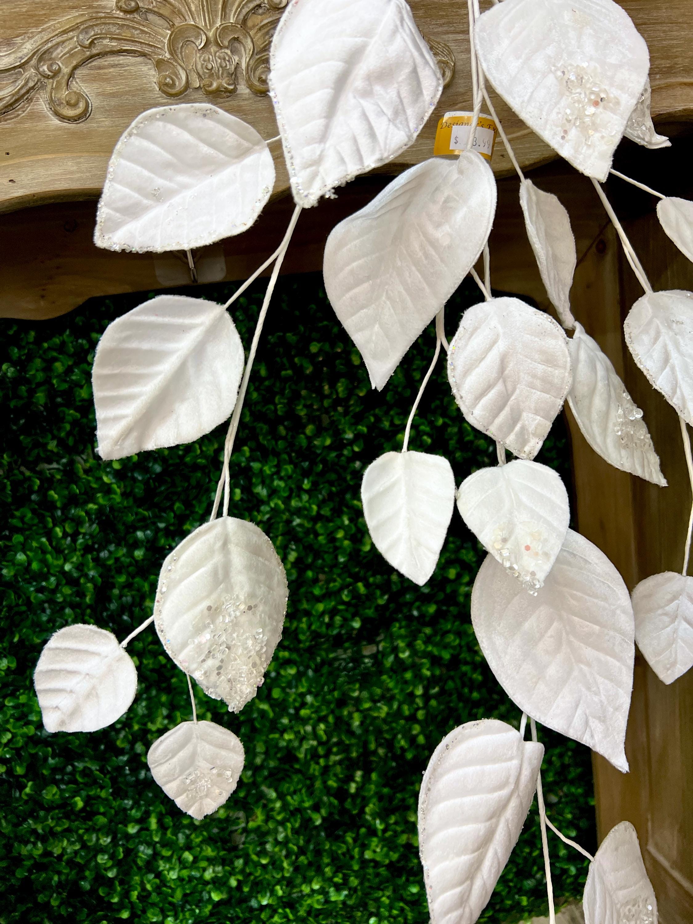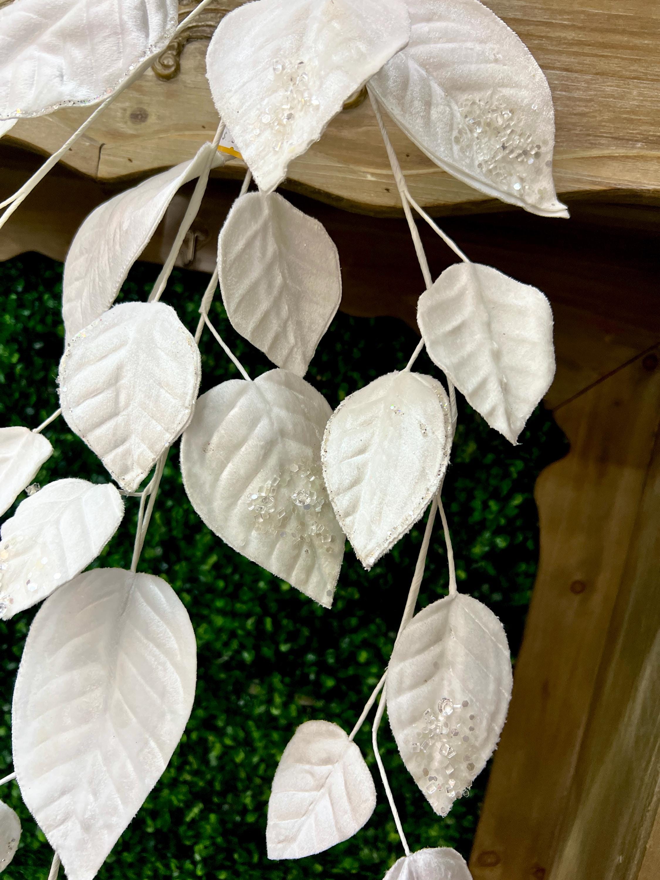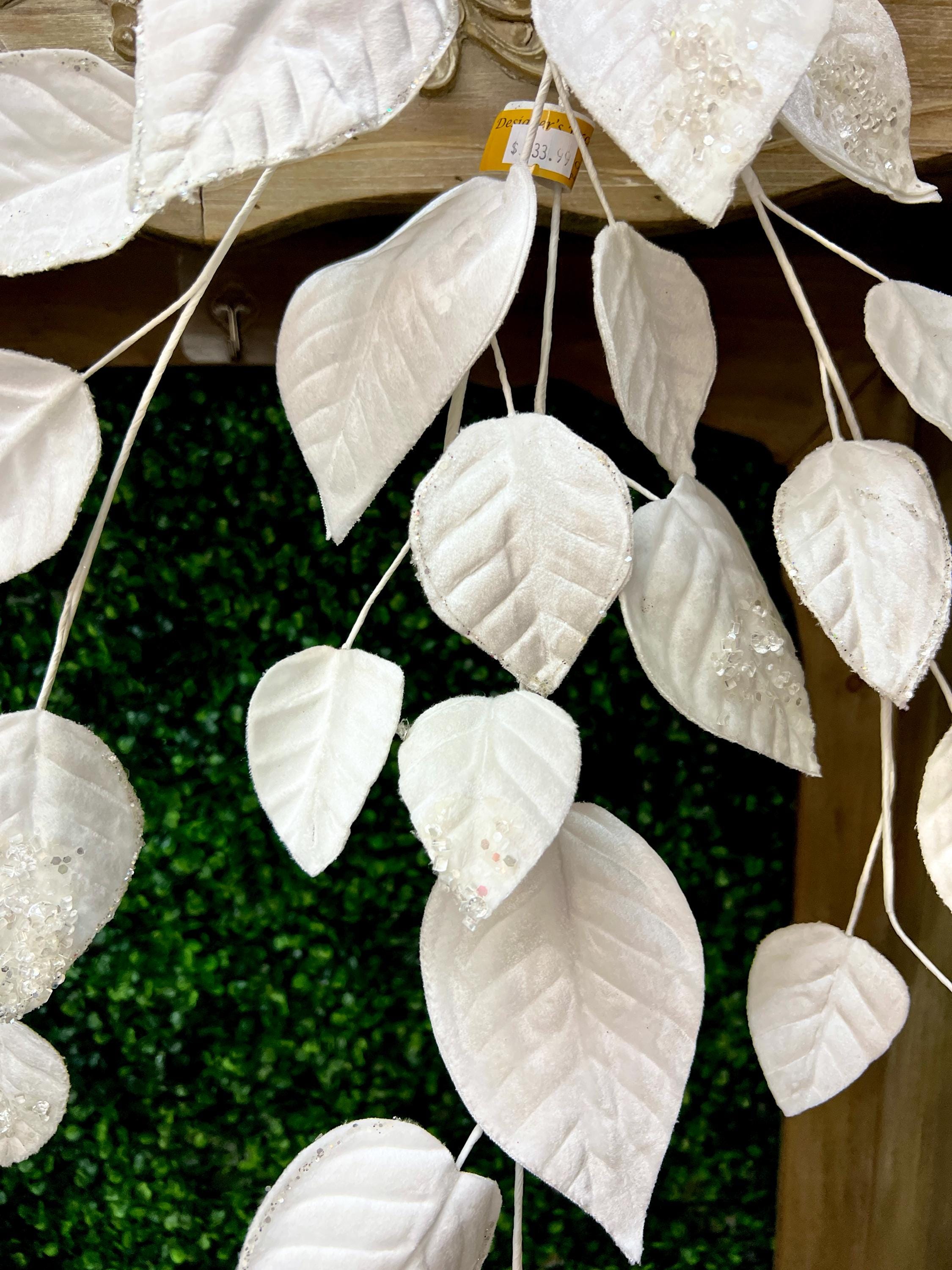 White Glitter Velvet and Lacquered Leaf Bush ~ 39 in x 15 in