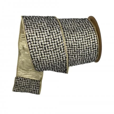 4 inch Black Gold Tweed Ribbon with Gold Backing ~ 10 yards ~ Wired