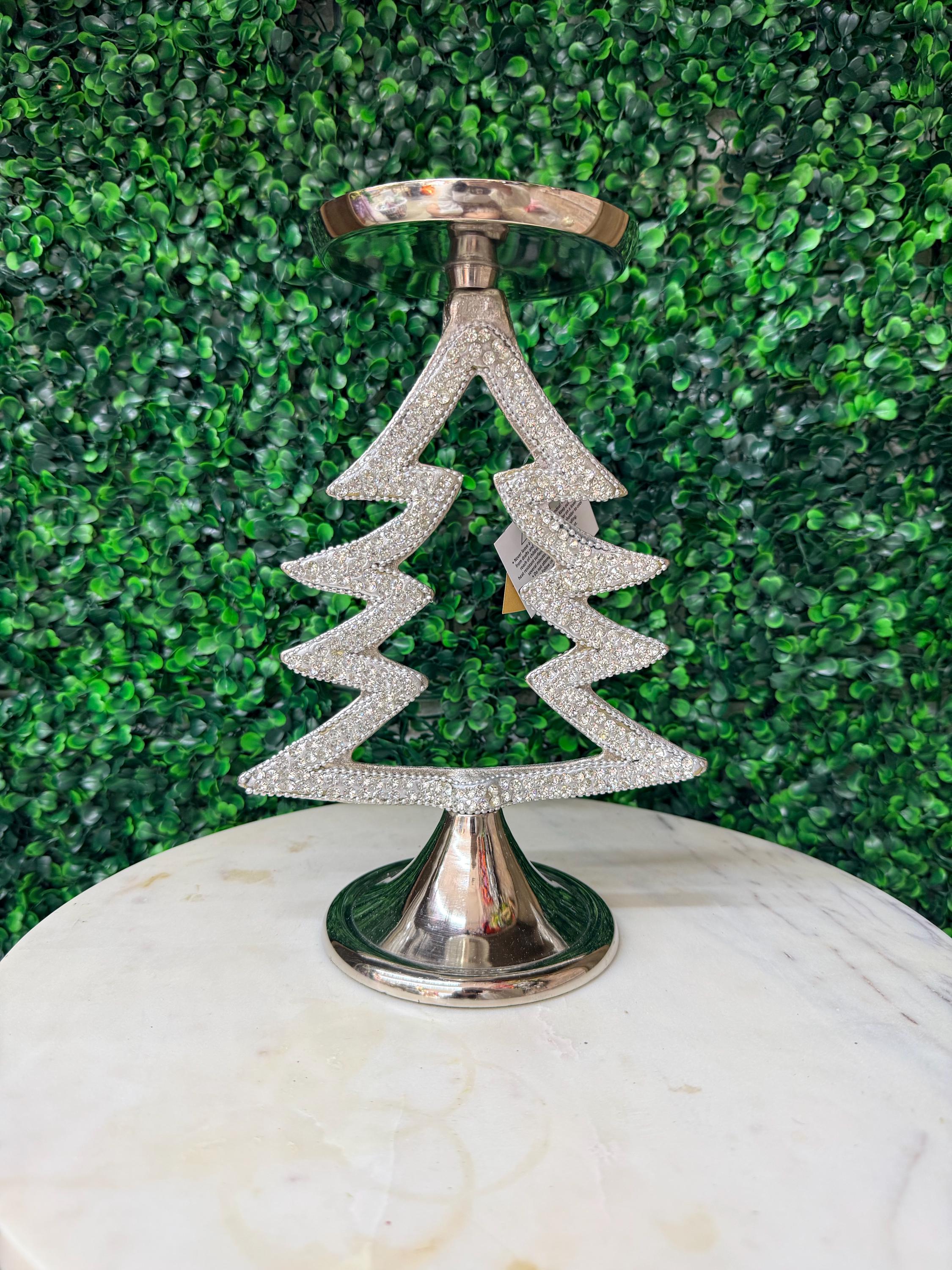 Silver and Crystal Jewel Tree Candleholder ~ 10.25 inch