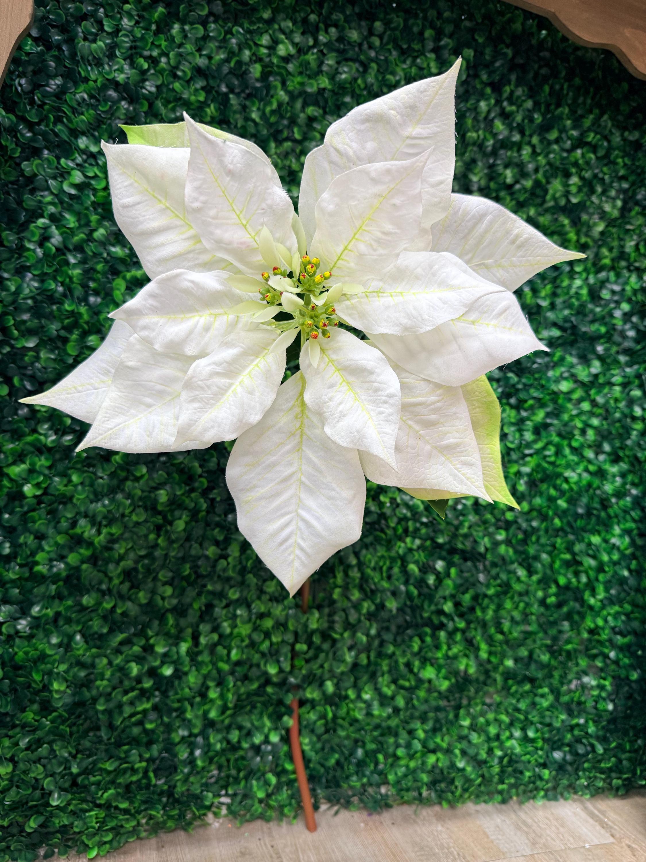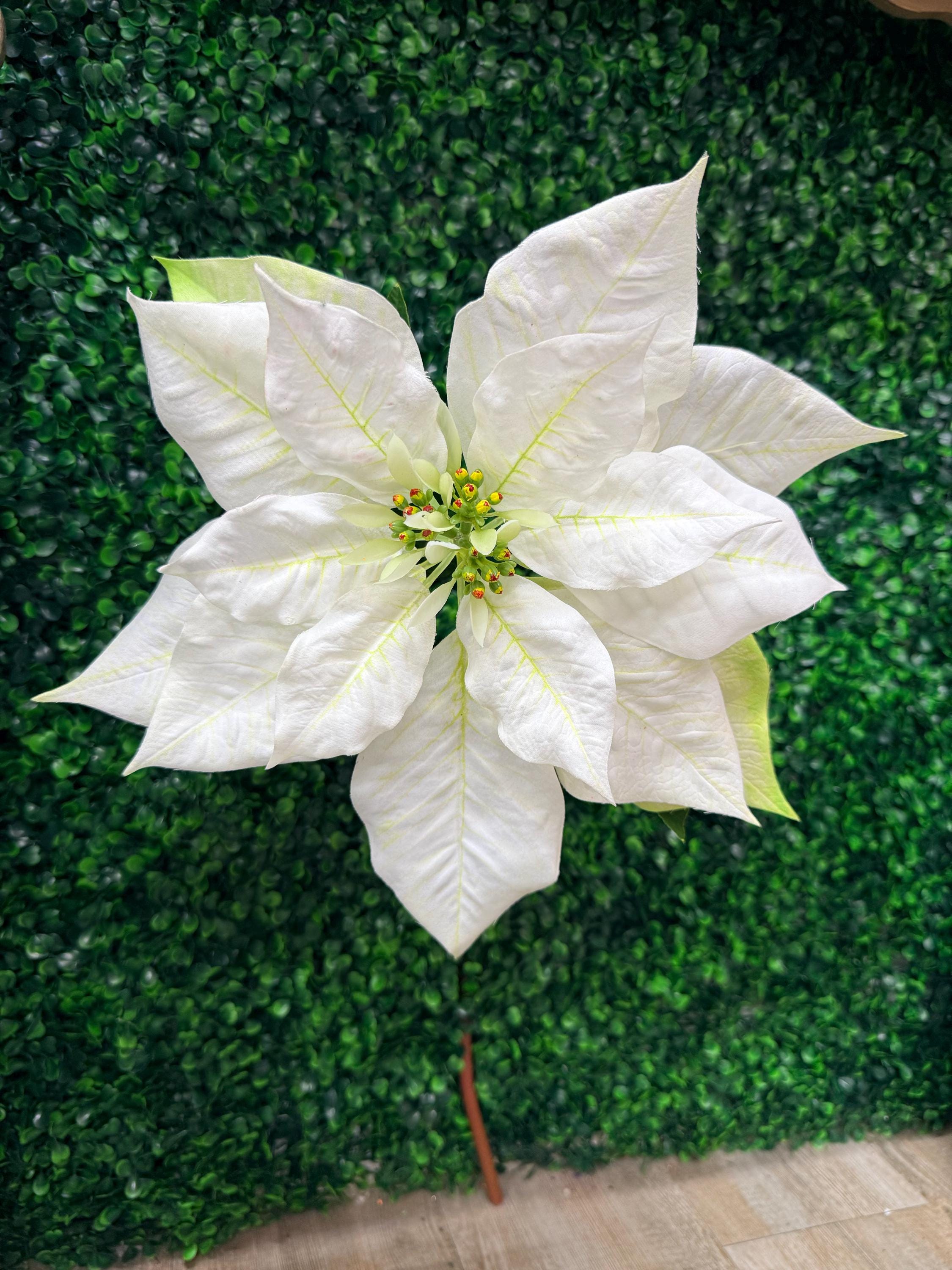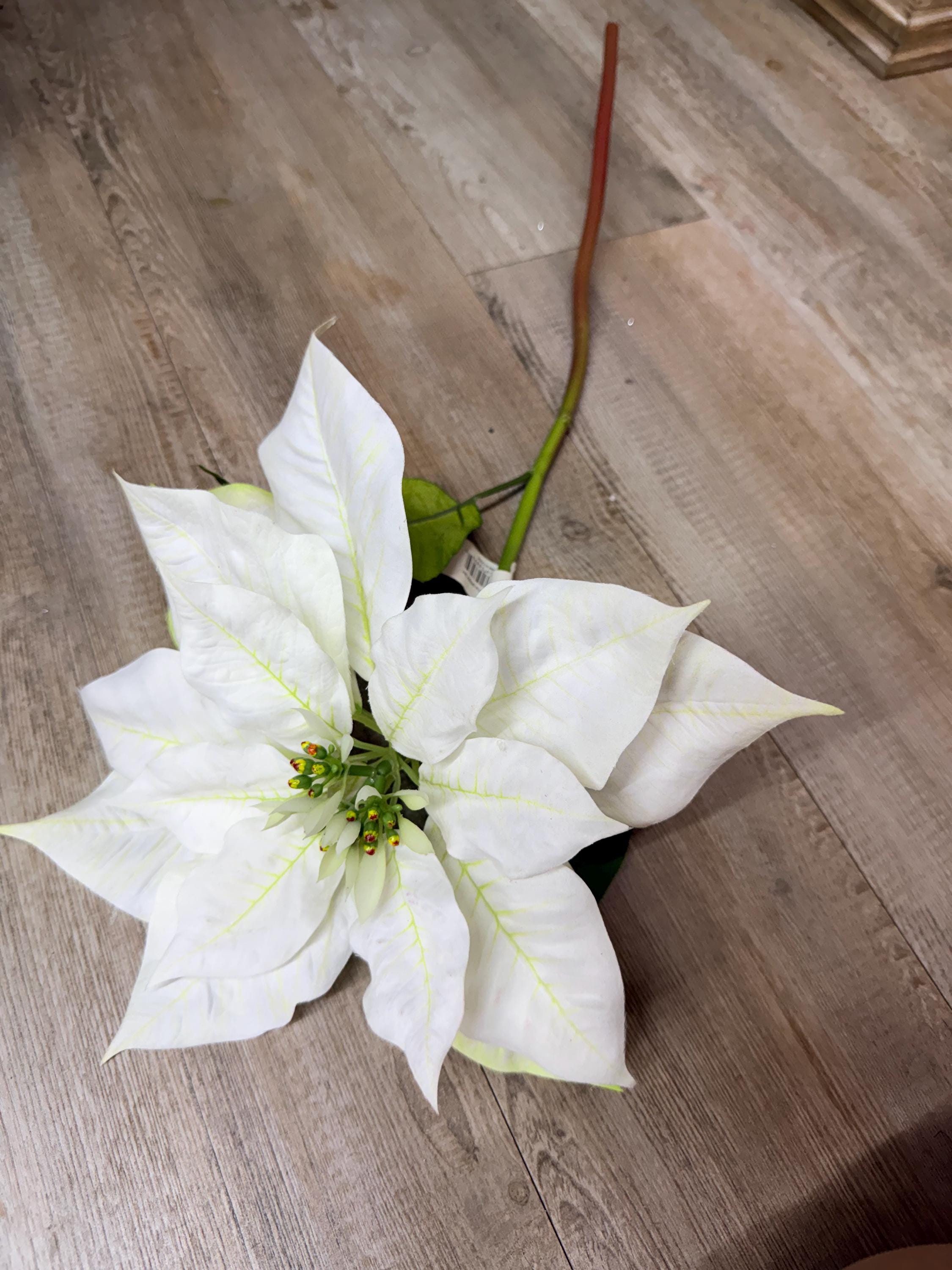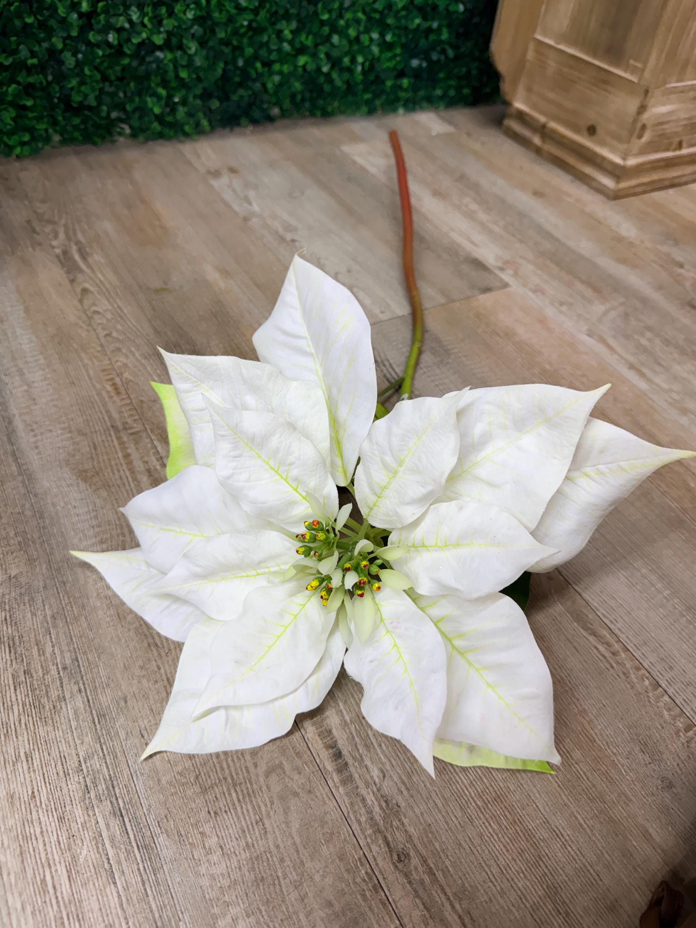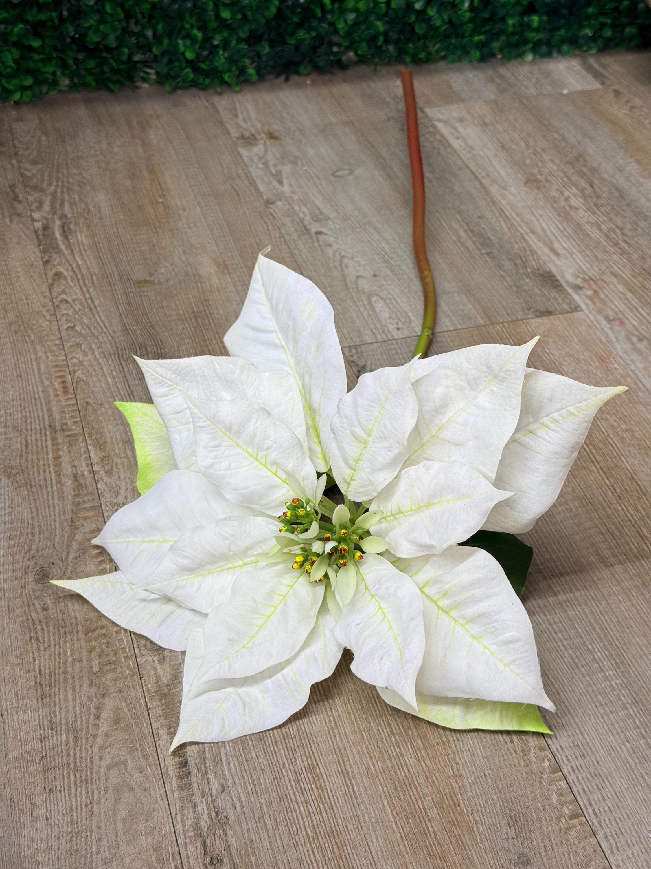 White Real Touch Poinsettia Stem ~ 25in - 12in flower diameter