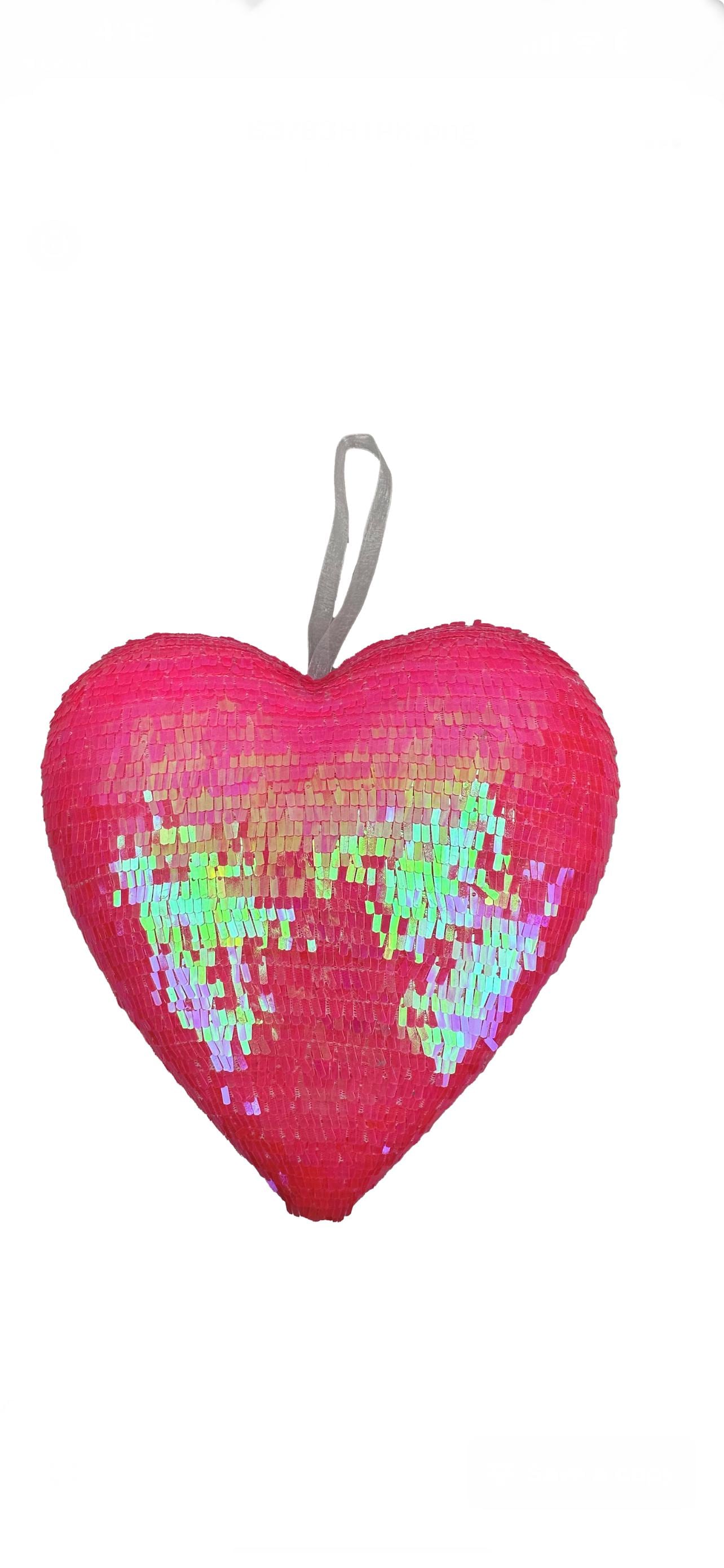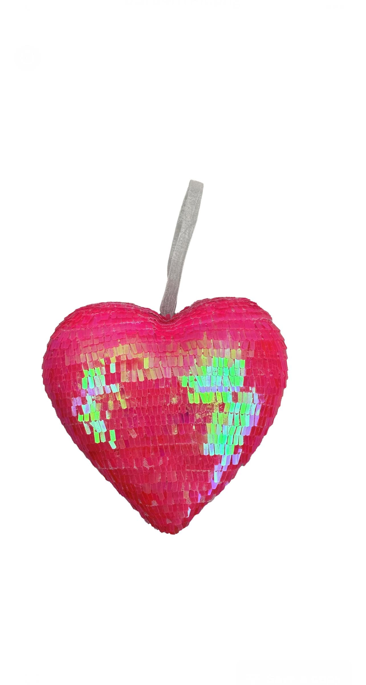 Hot Pink Iridescent Sequin Heart - 9in x 9in
