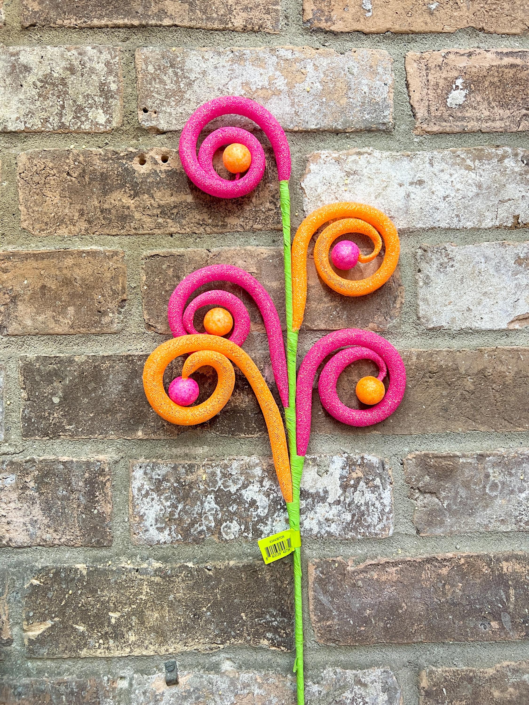 Hot Pink and Orange Curl Ball Spray - 27 inch
