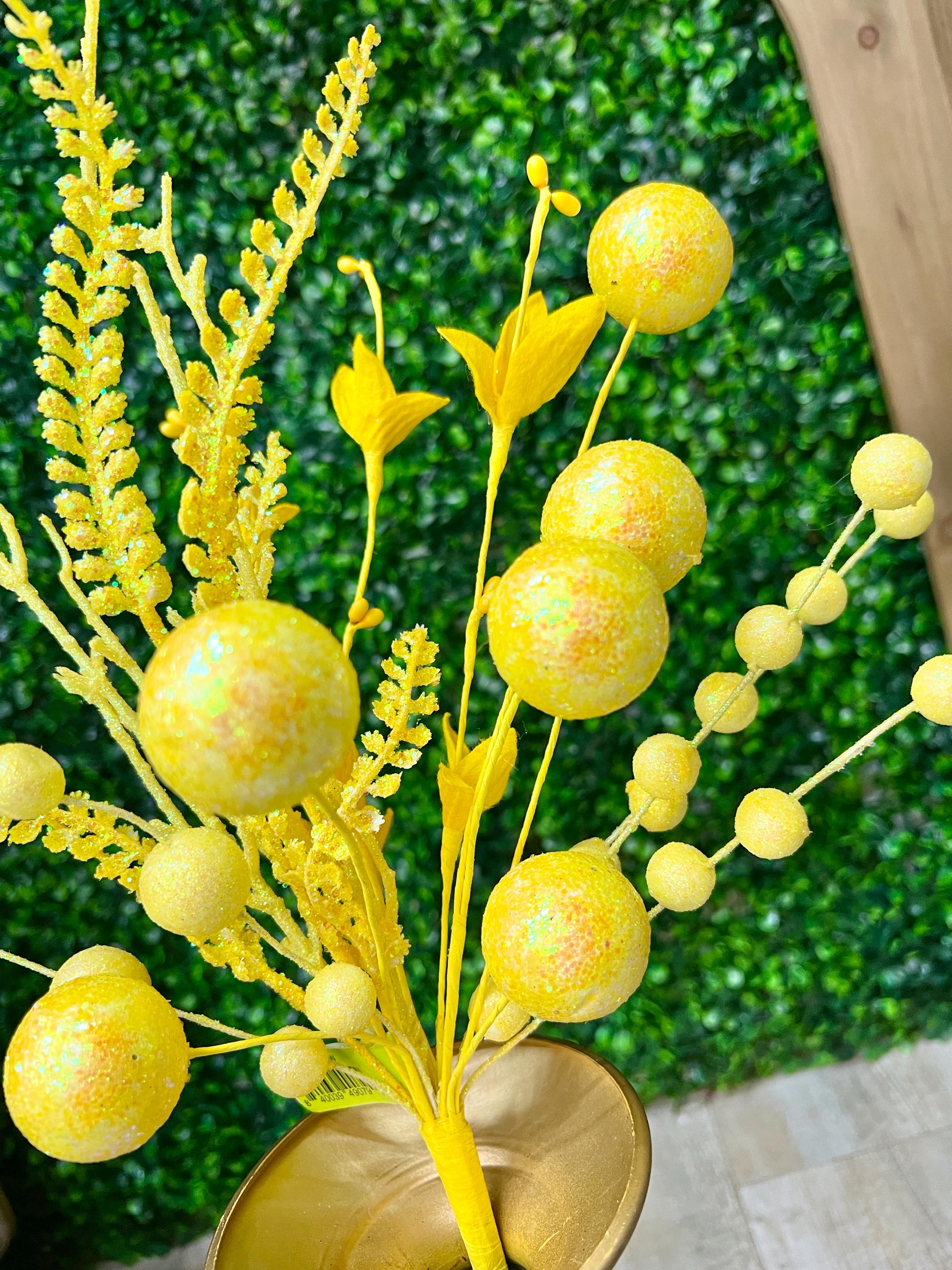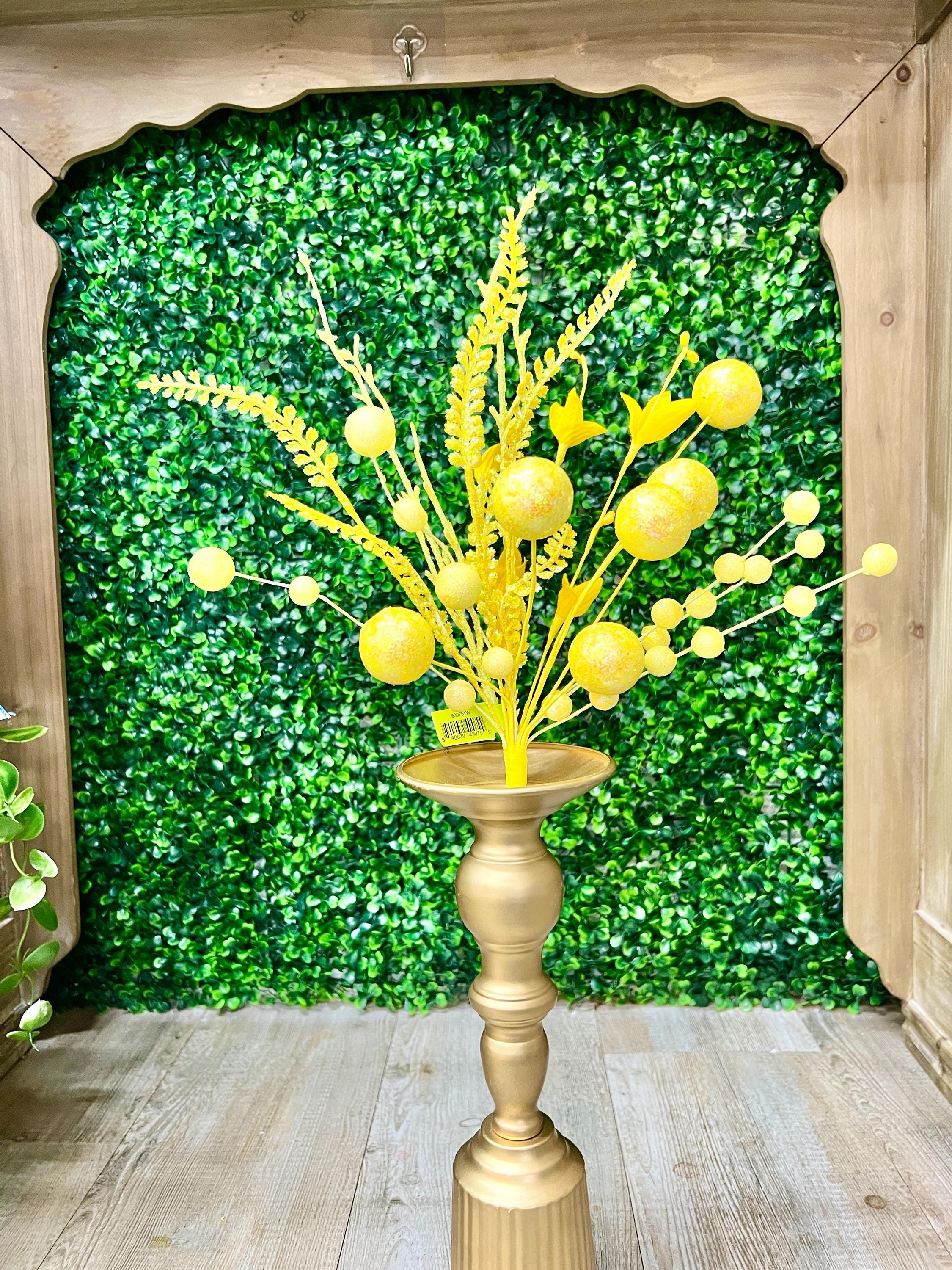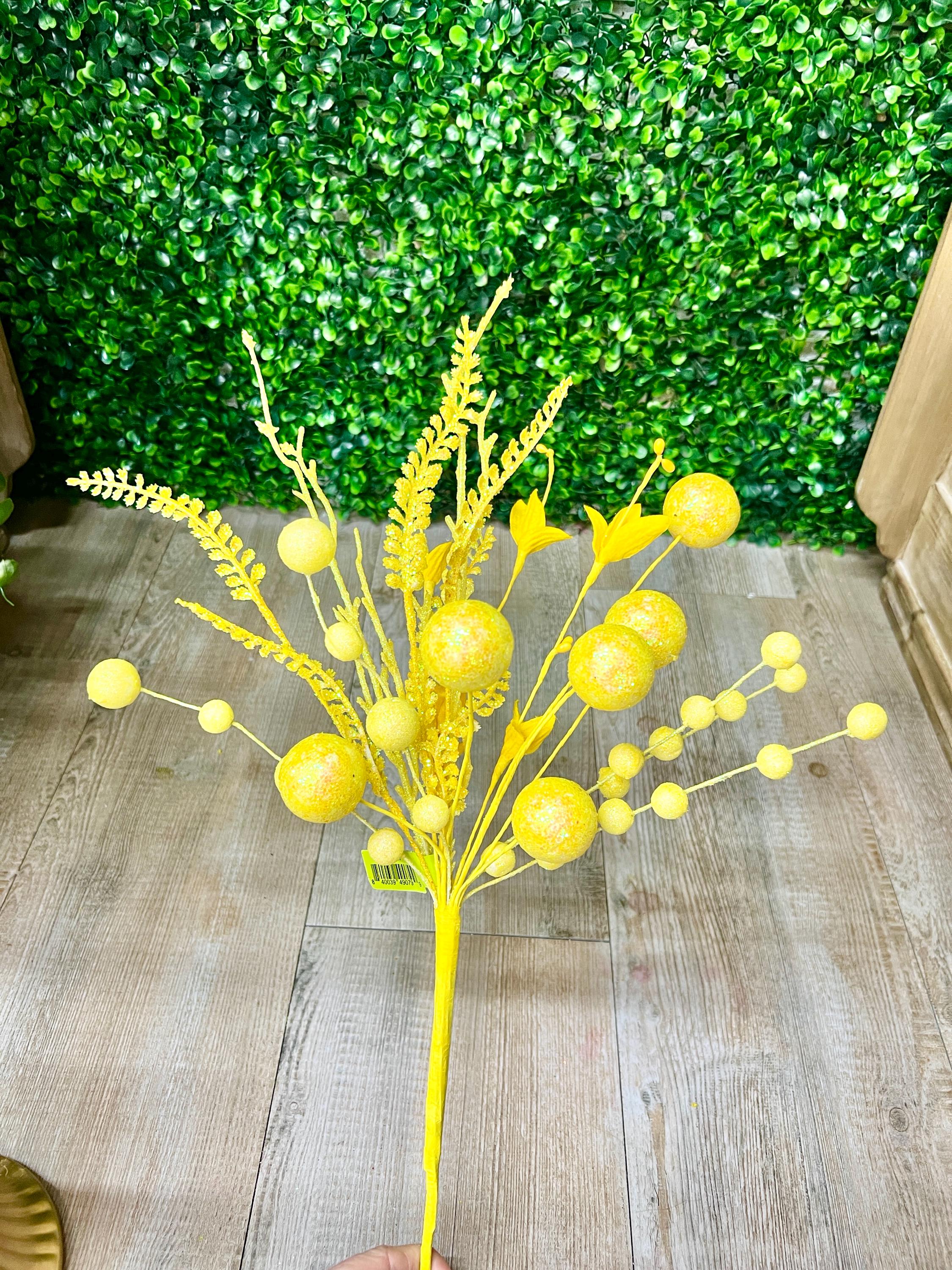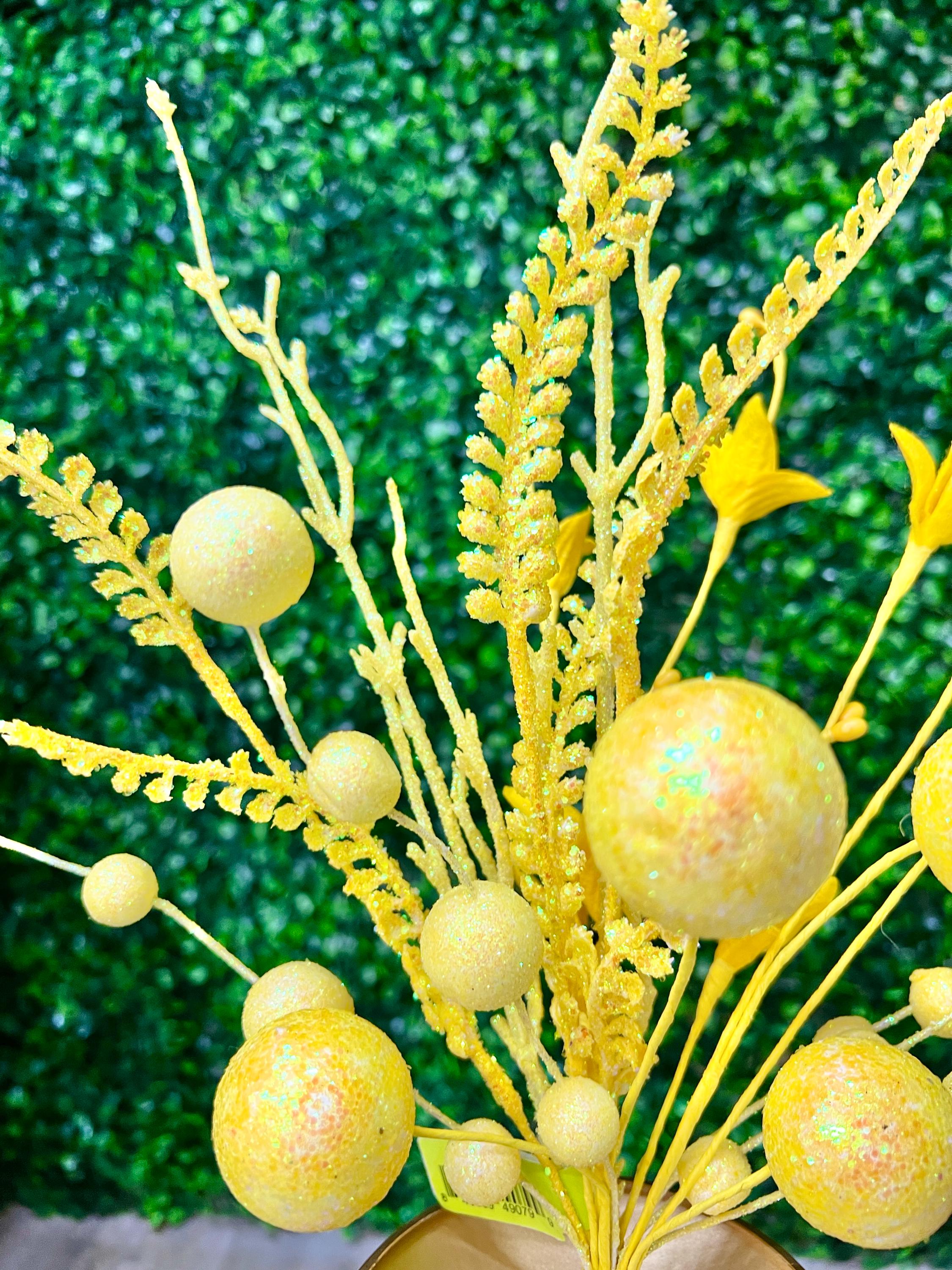 Yellow Glitter Ball Filler Bush - 21 inch