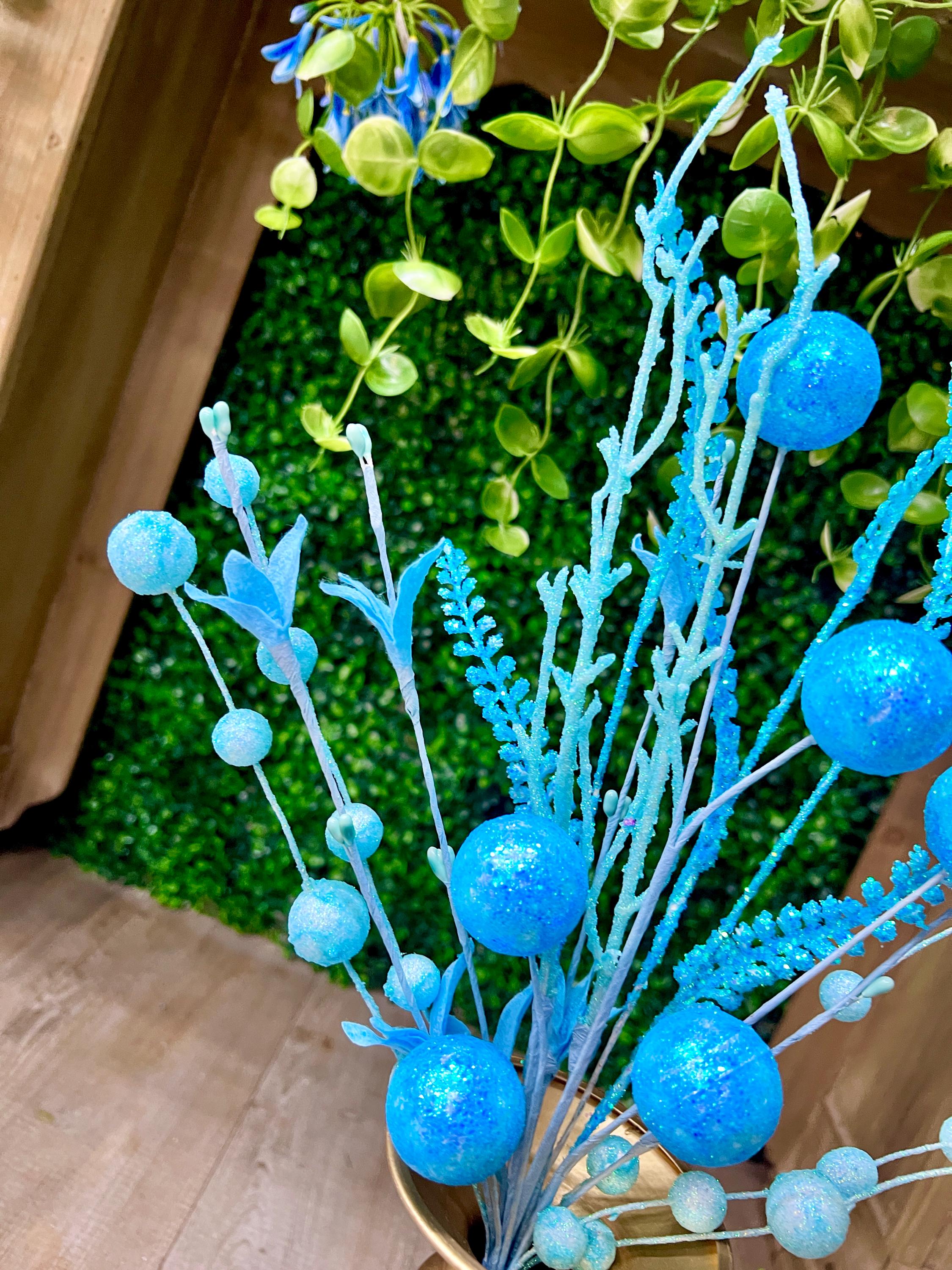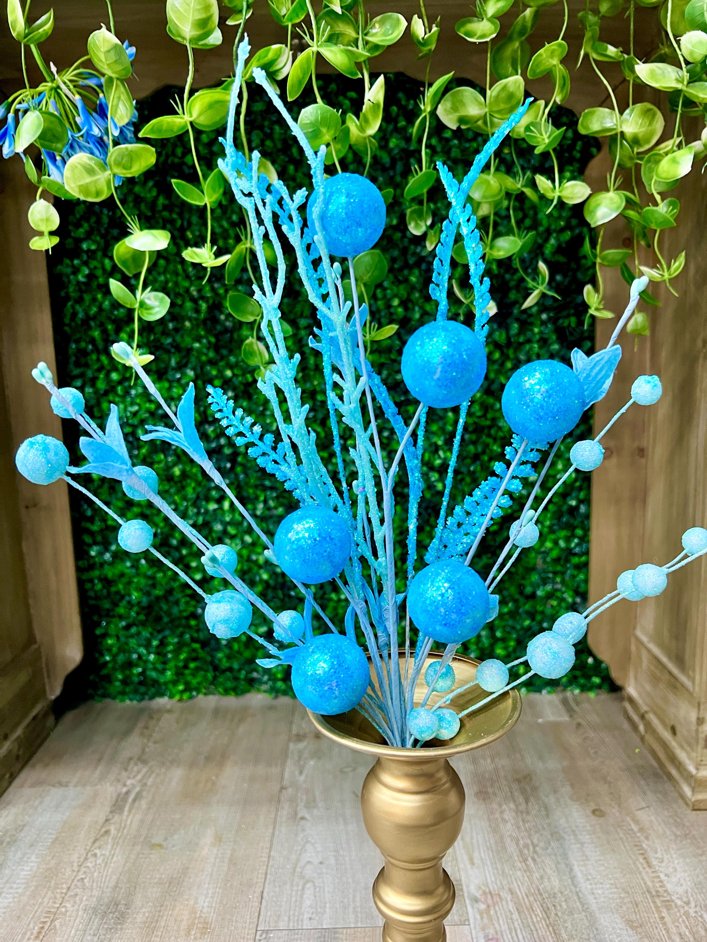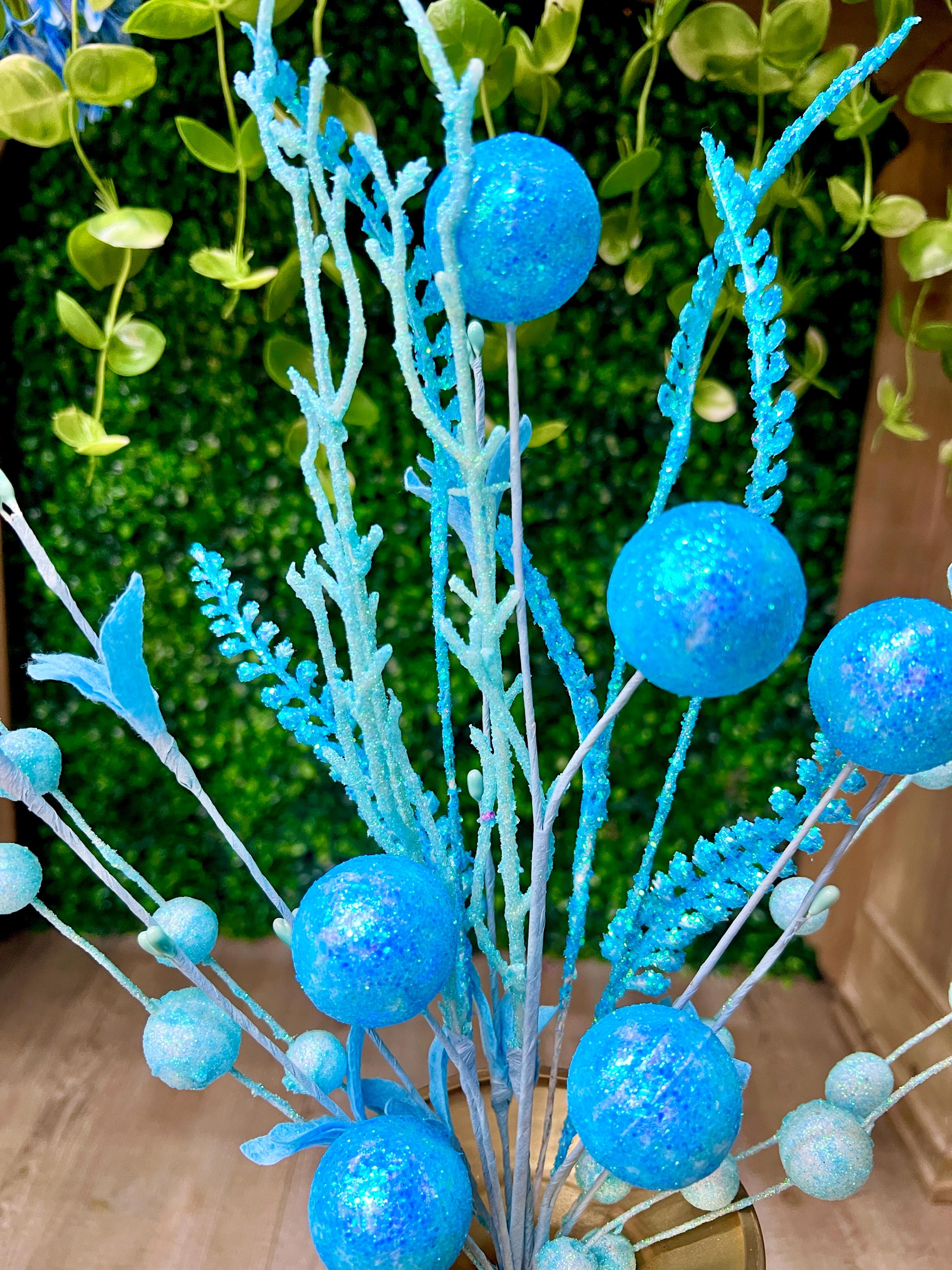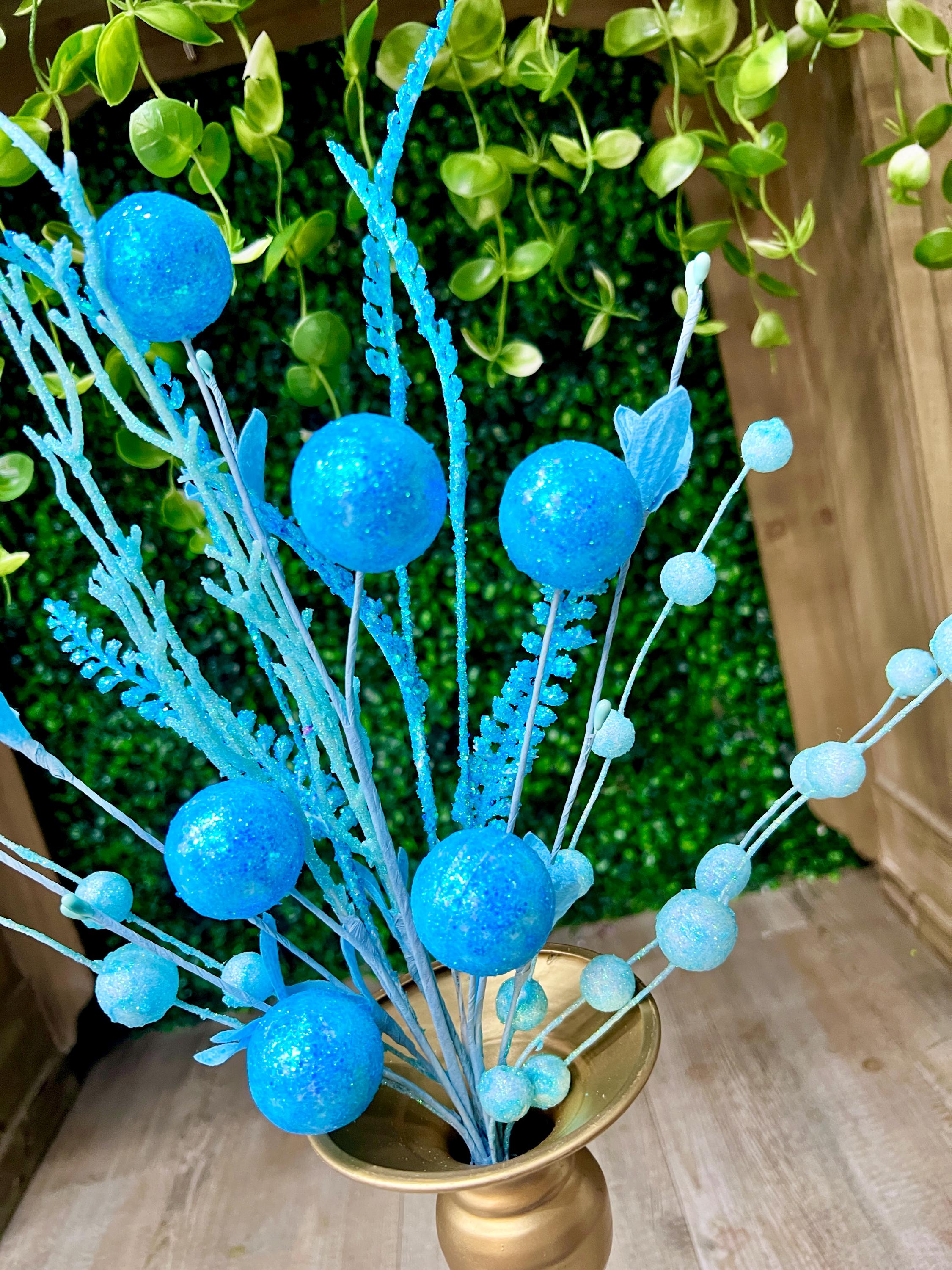 Turquoise Blue Glitter Ball Filler Bush - 21 inch