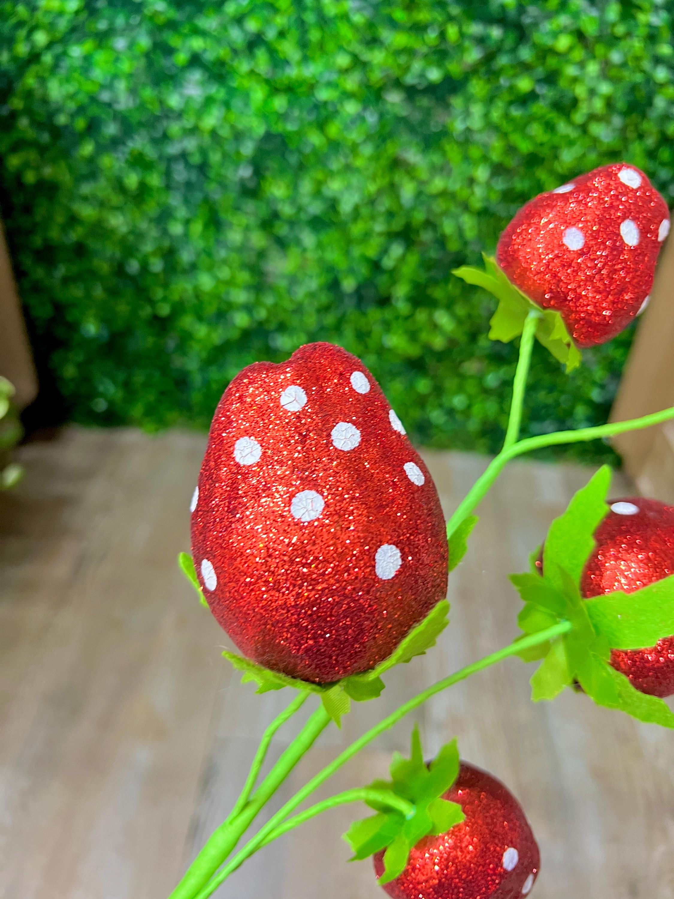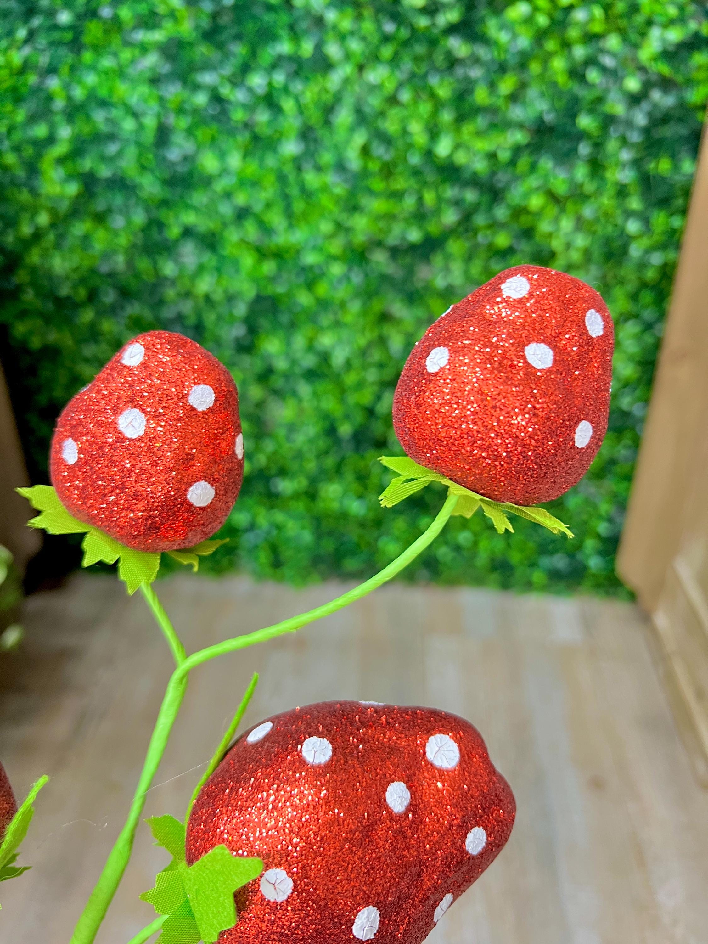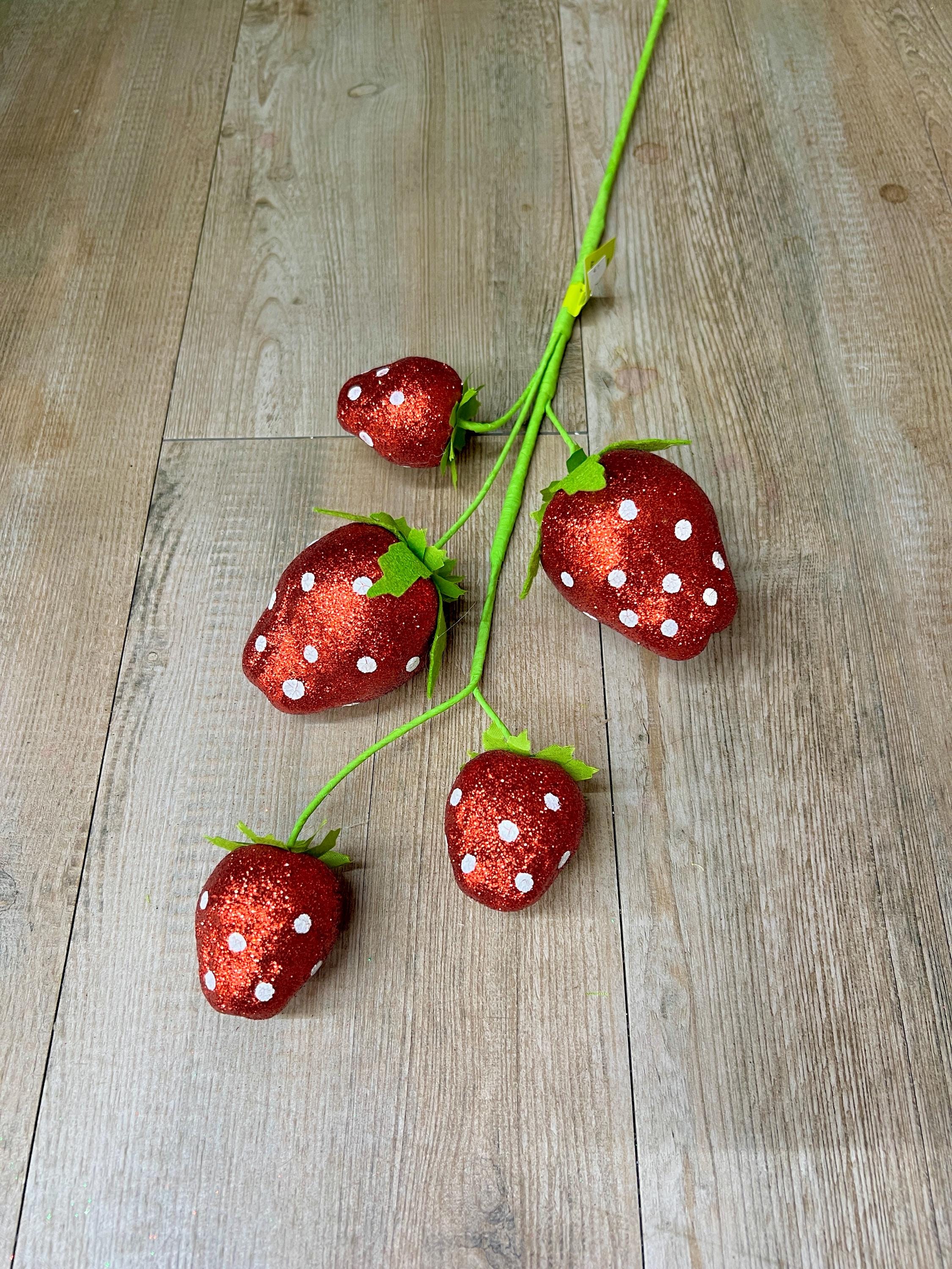 Red Sequin Polkadot Strawberry Pick ~ 5 Berries ~ 22 Inch