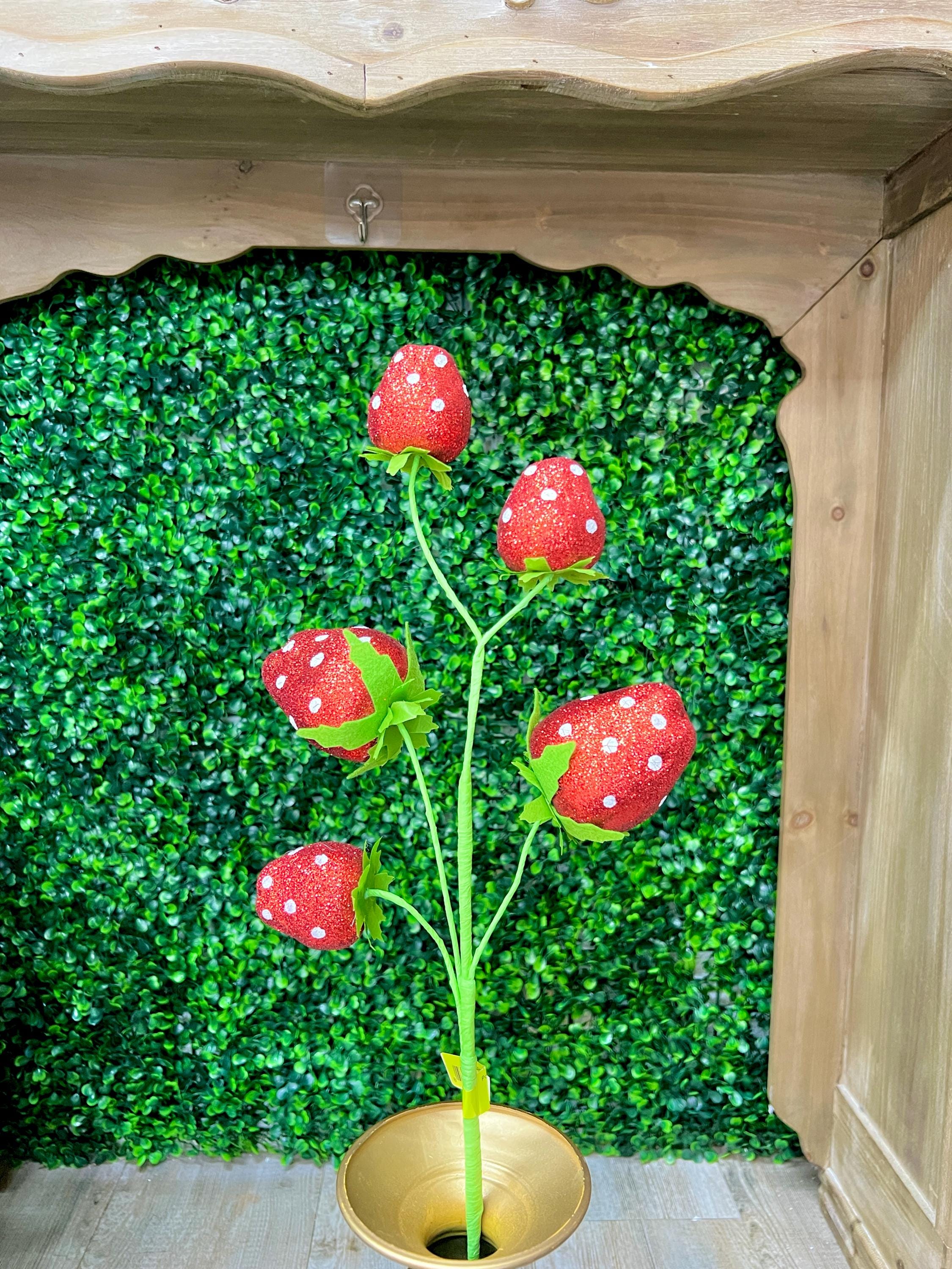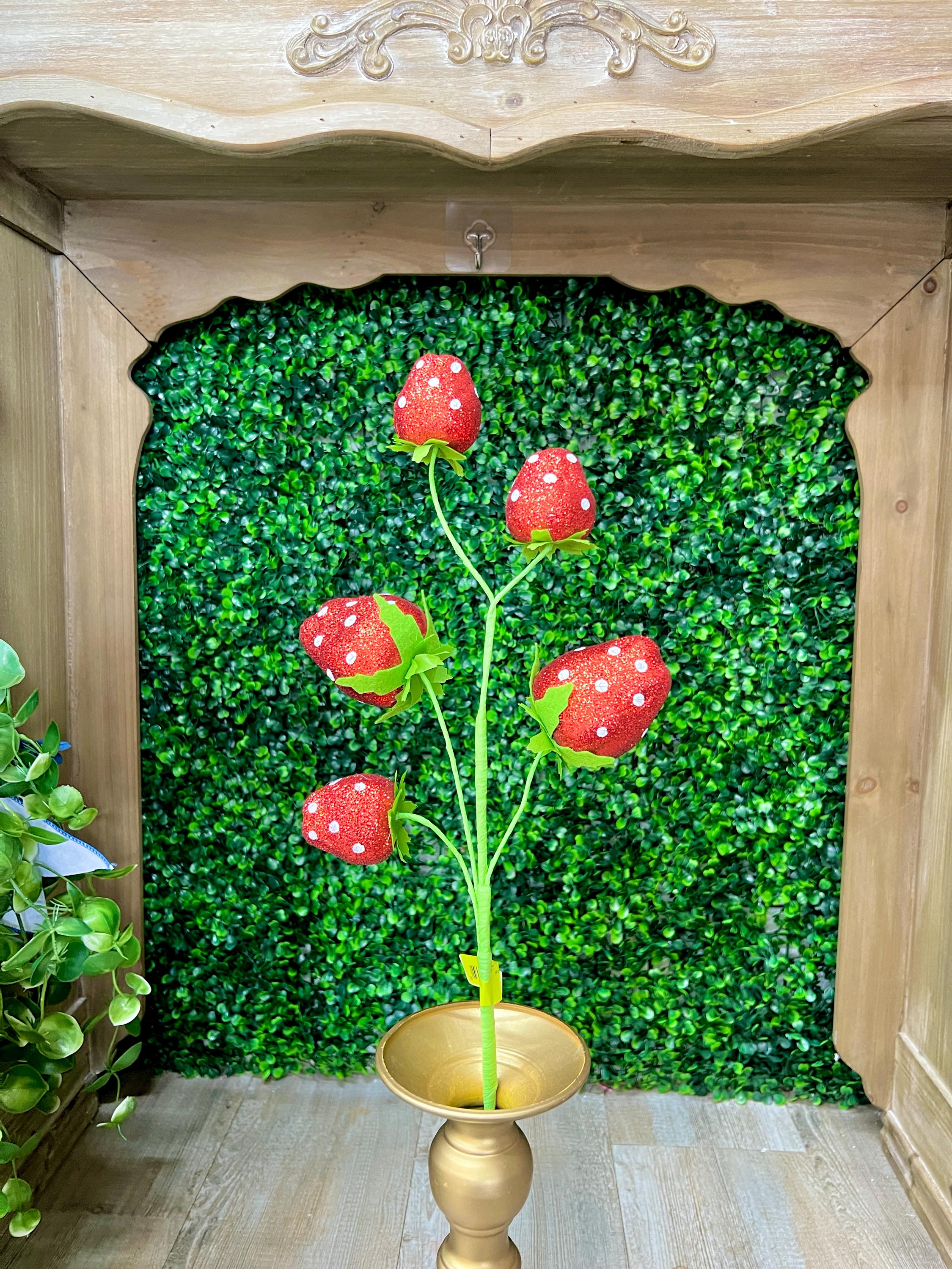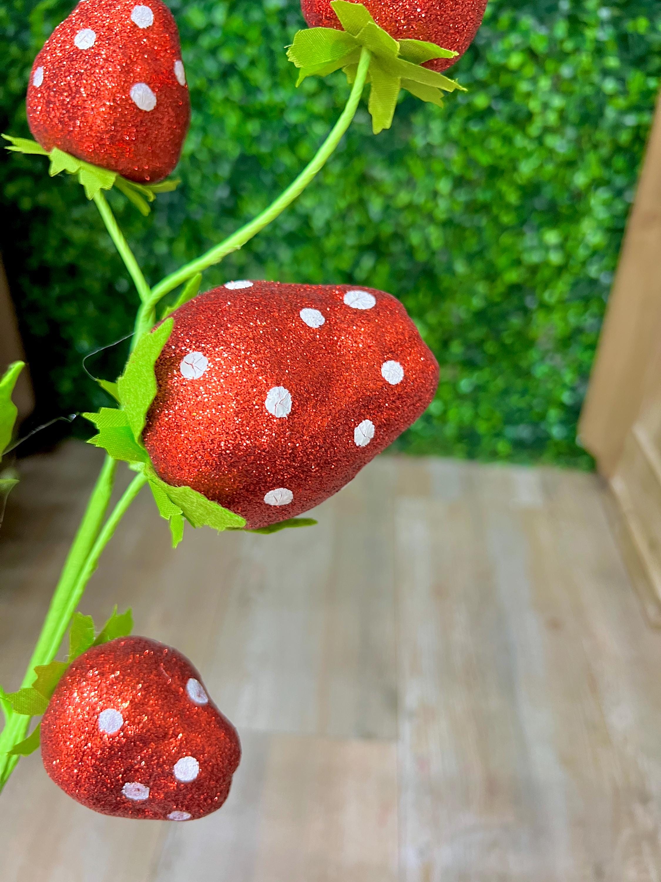 Red Sequin Polkadot Strawberry Pick ~ 5 Berries ~ 22 Inch