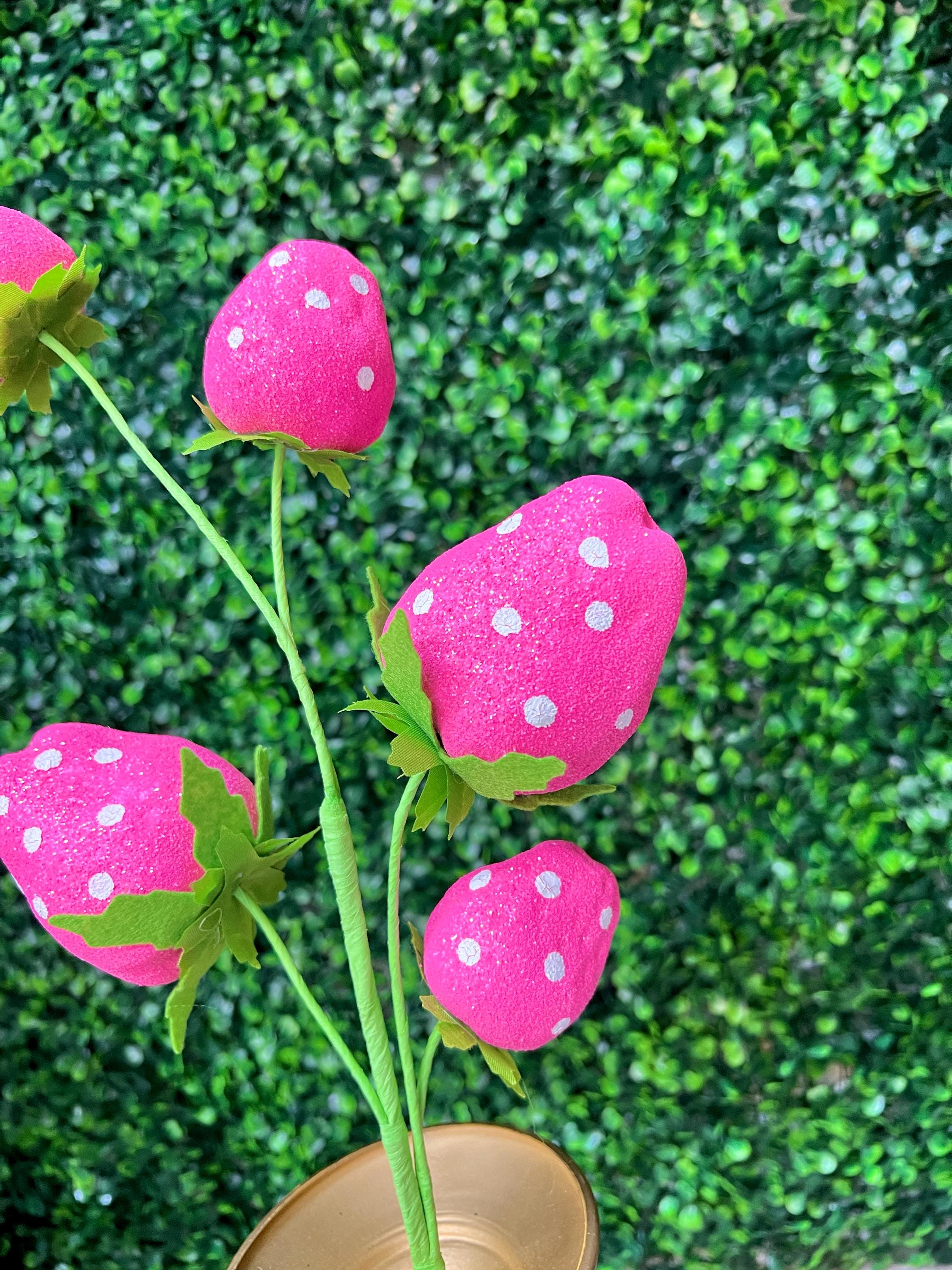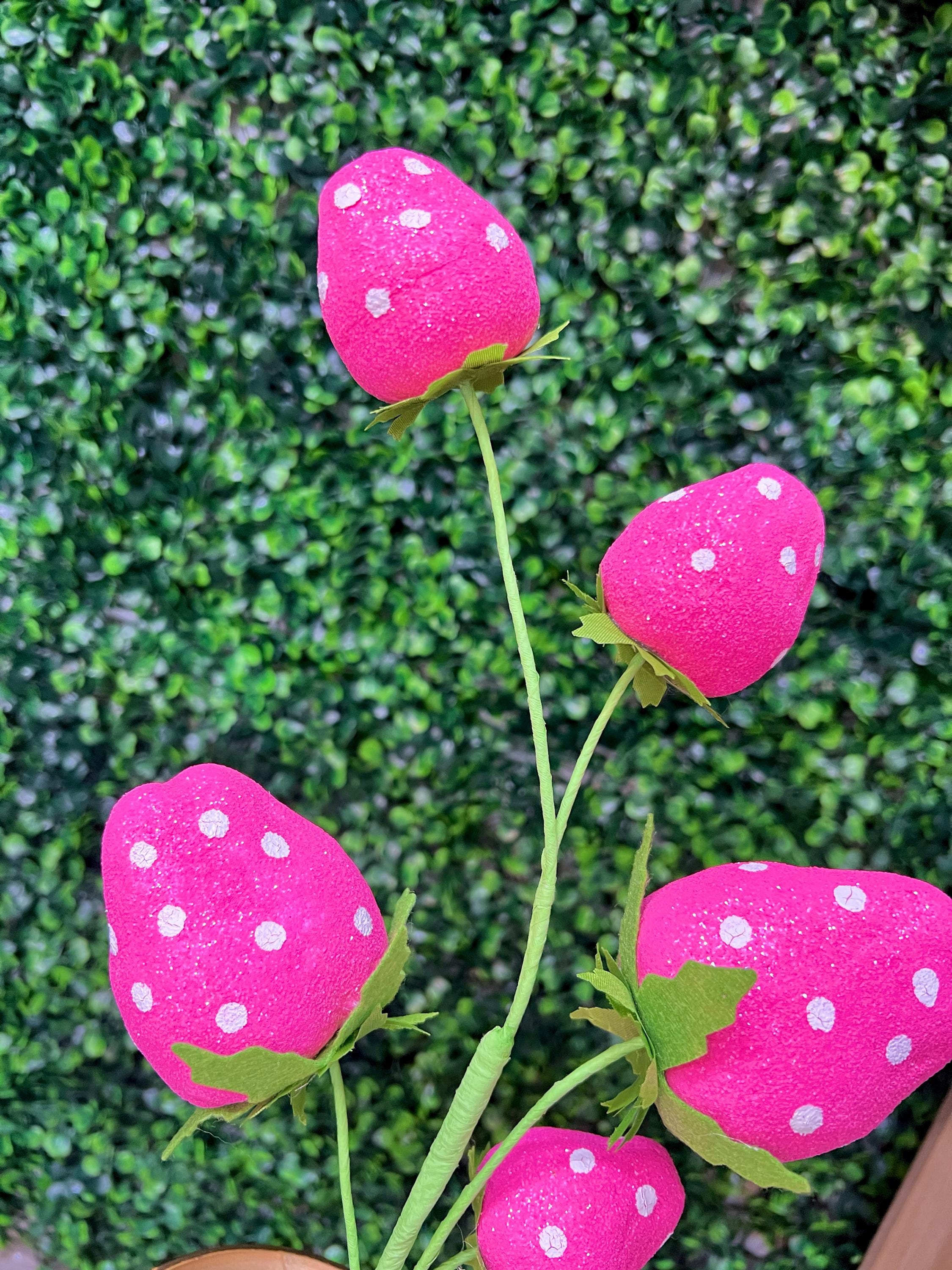 Pink Sequin Polkadot Strawberry Pick ~ 5 Berries ~ 22 Inch