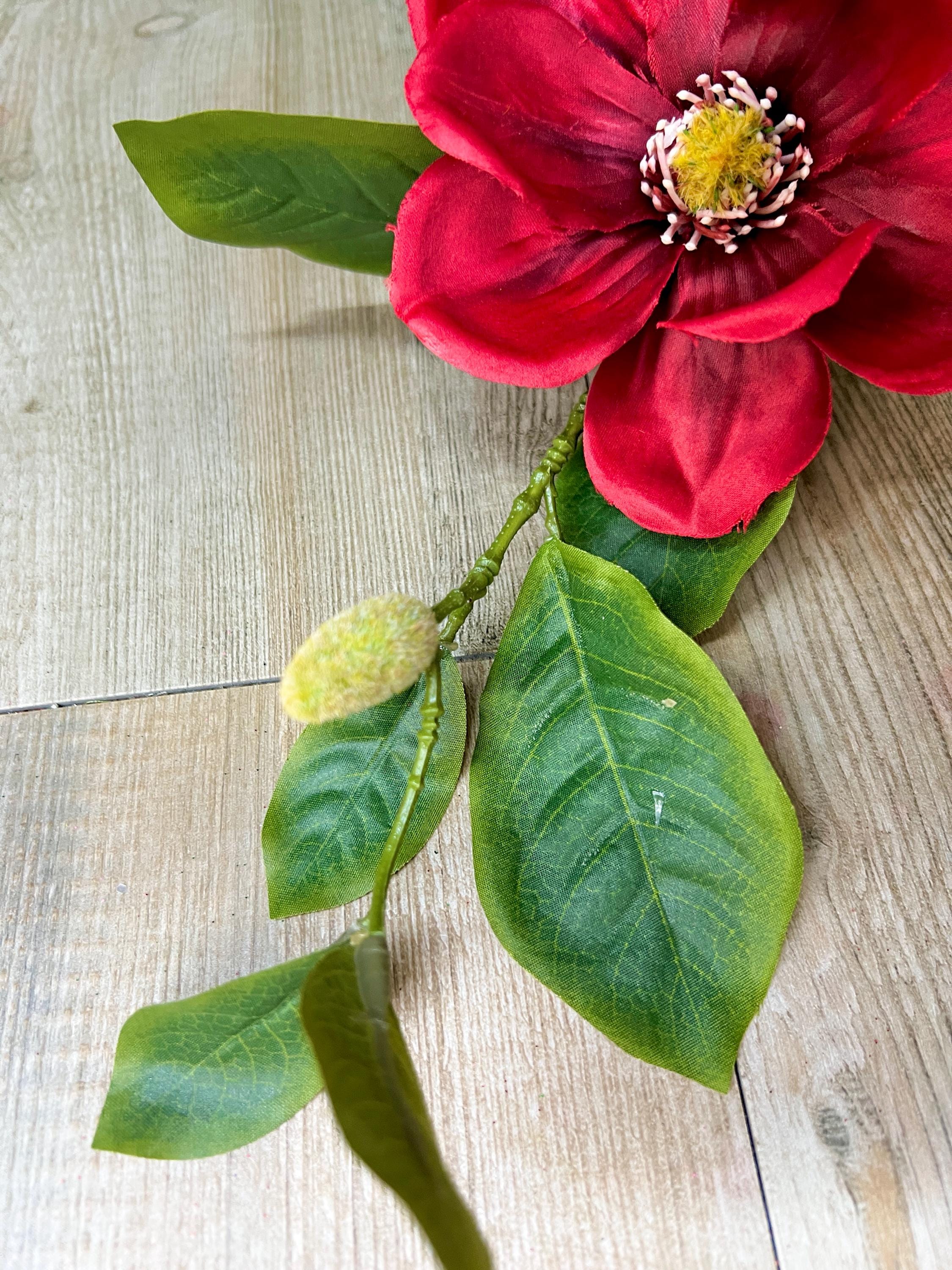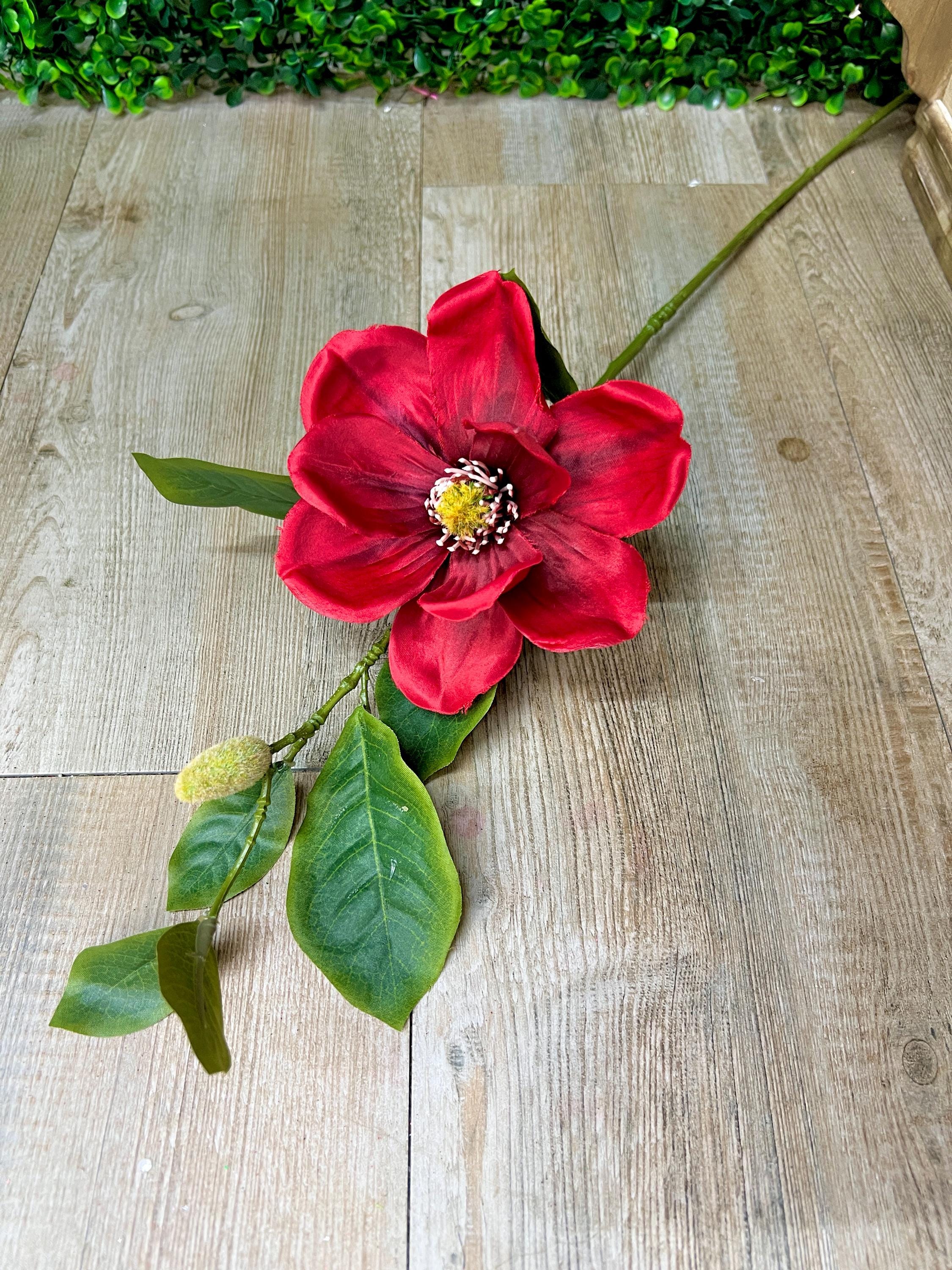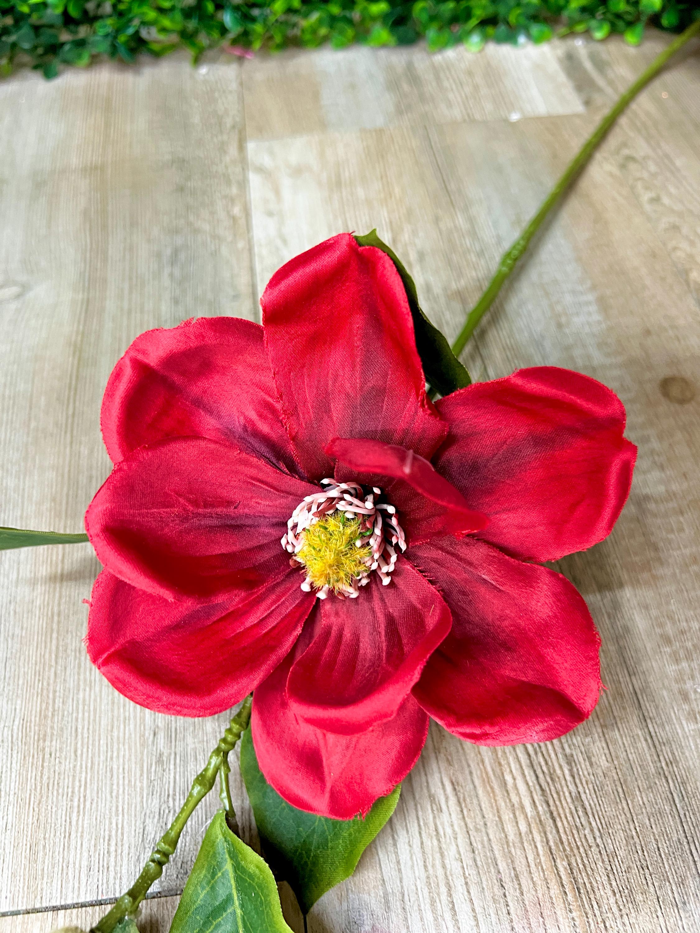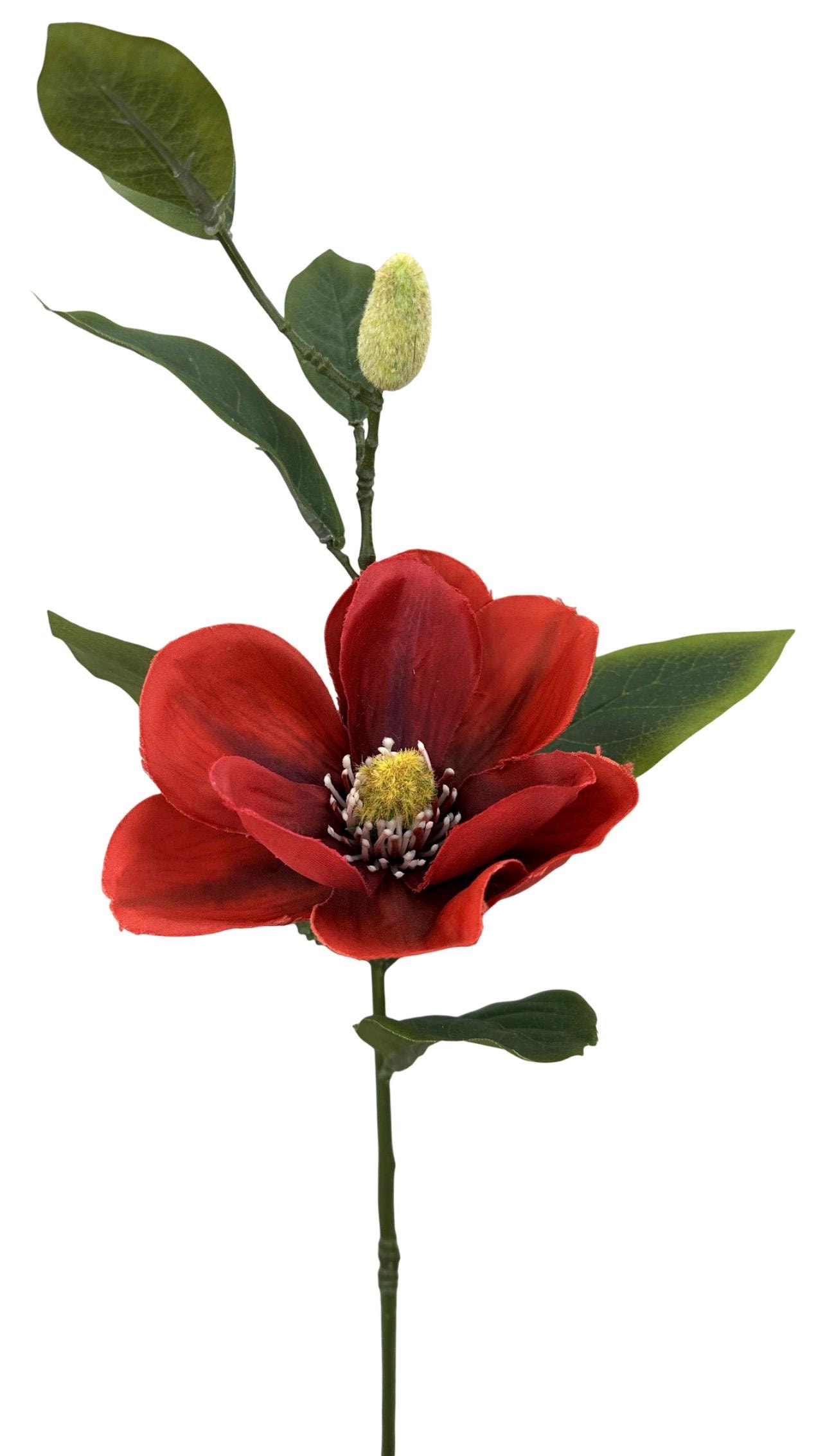 Red Magnolia & Bud Stem ~ 25 inch