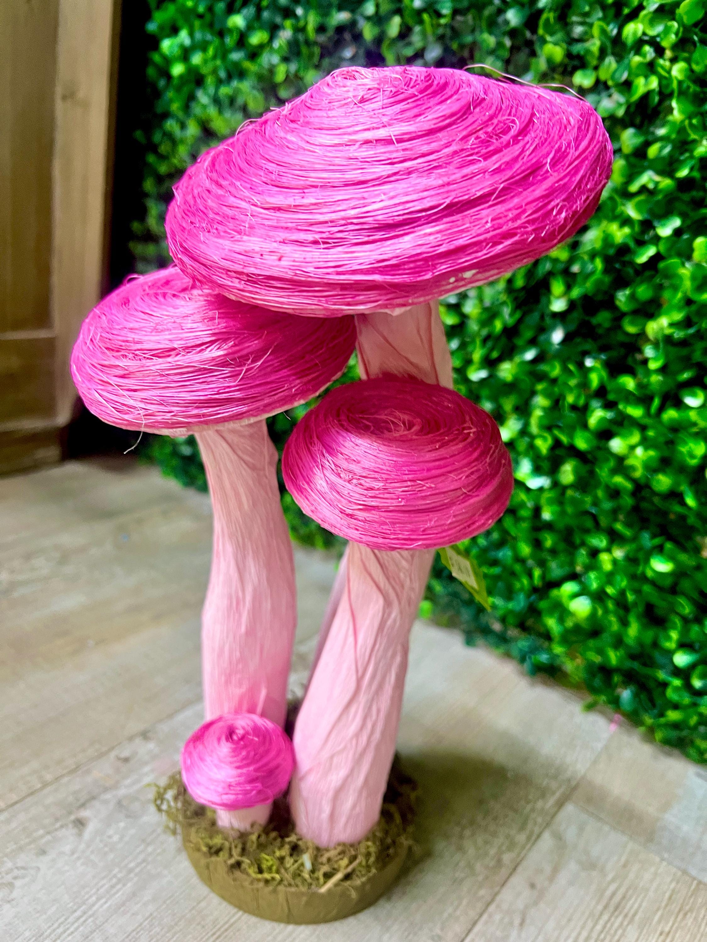 Pink Sisal Mushroom Decor ~ Mushroom Wreath Attachment ~ 13 inch