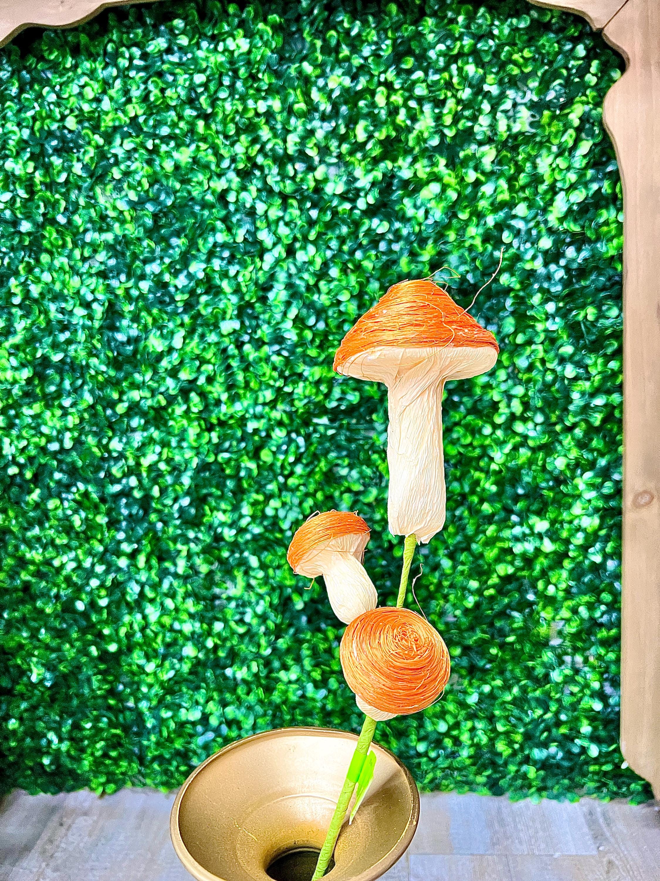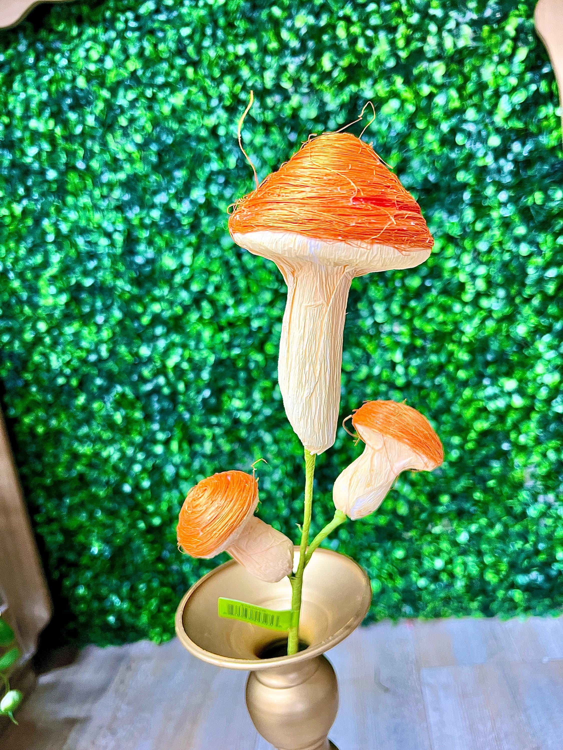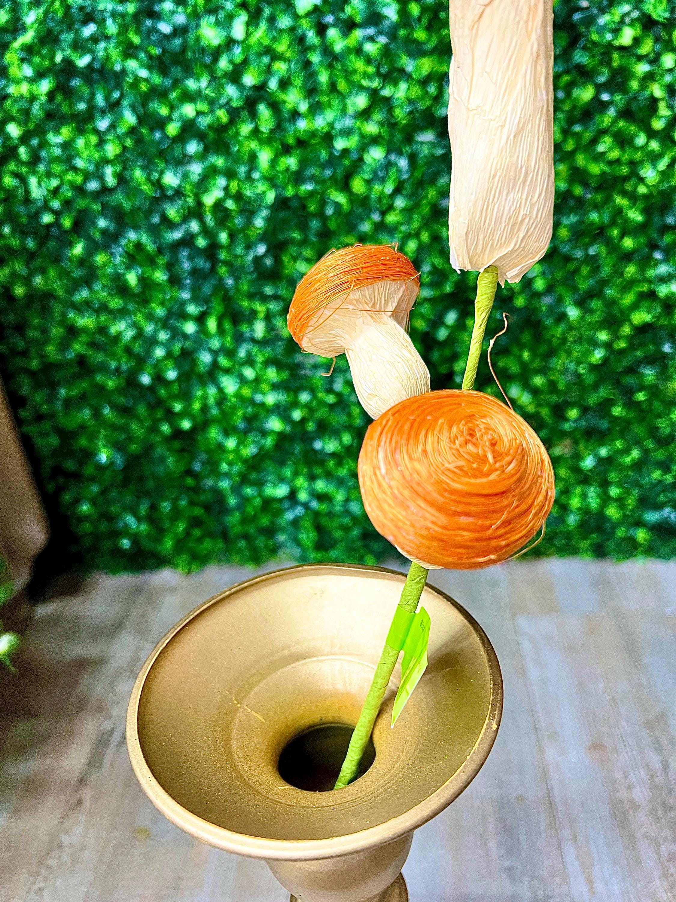 Orange Sisal Mushroom Pick ~ 3 mushrooms ~ 14 inch