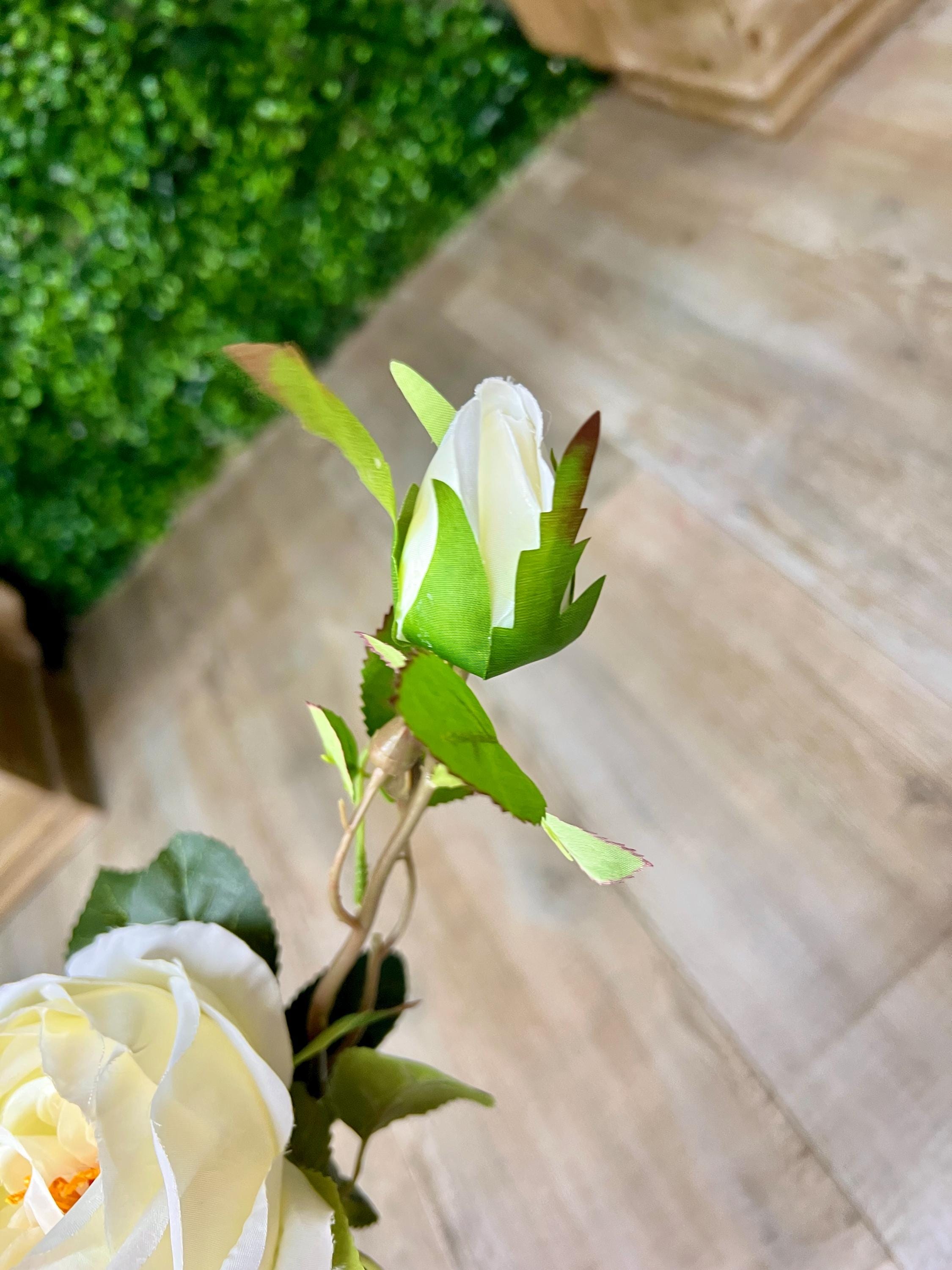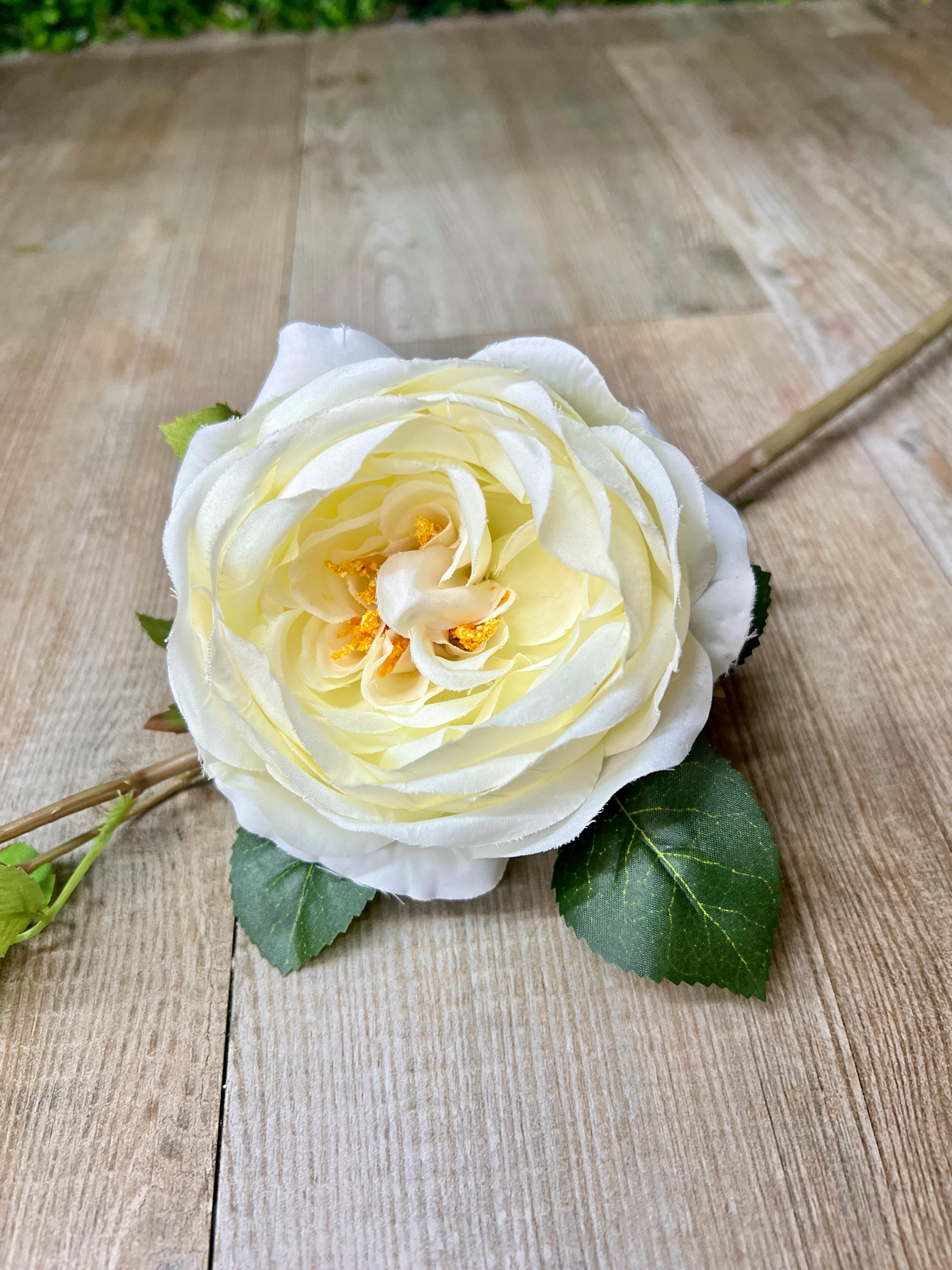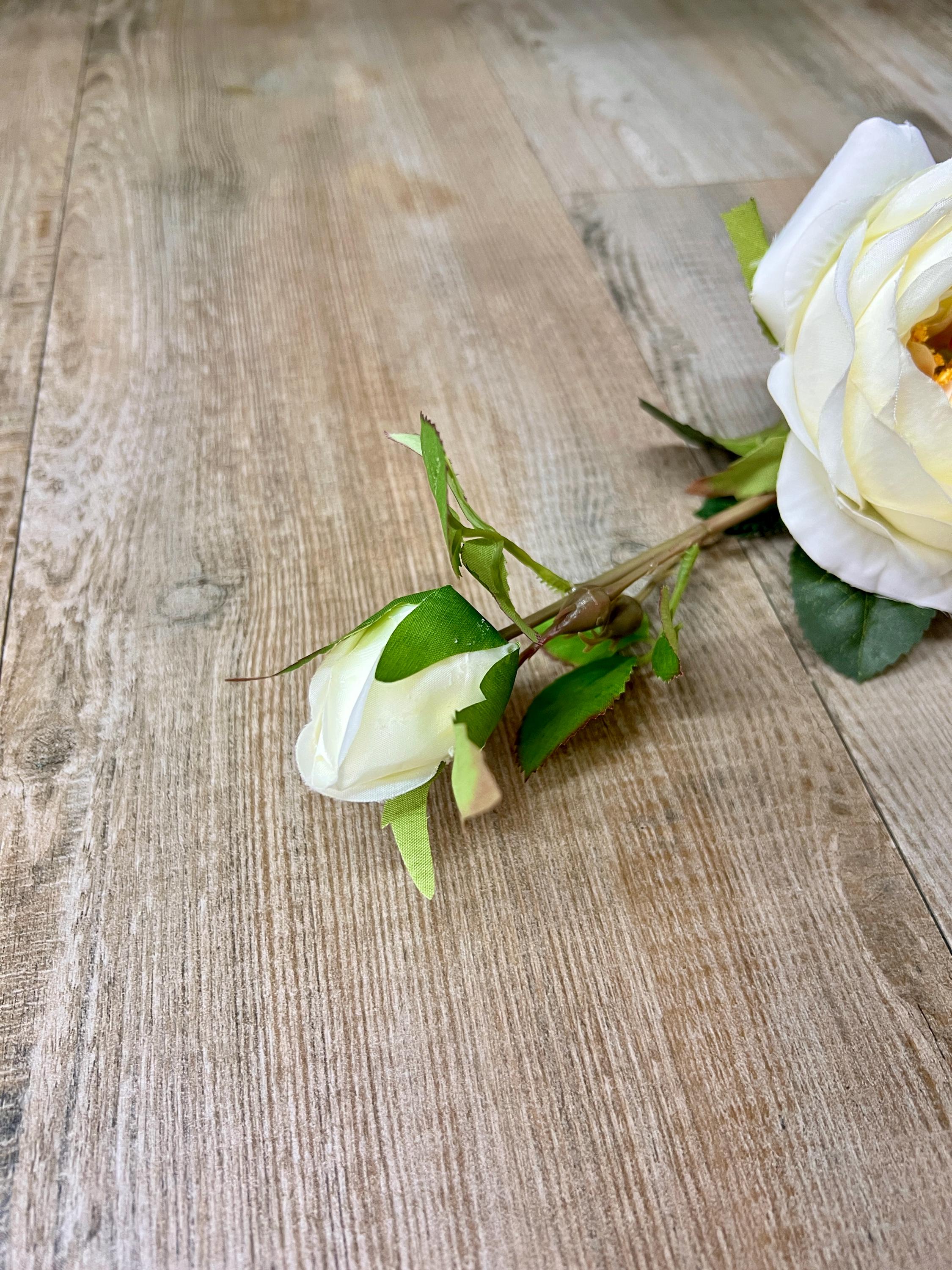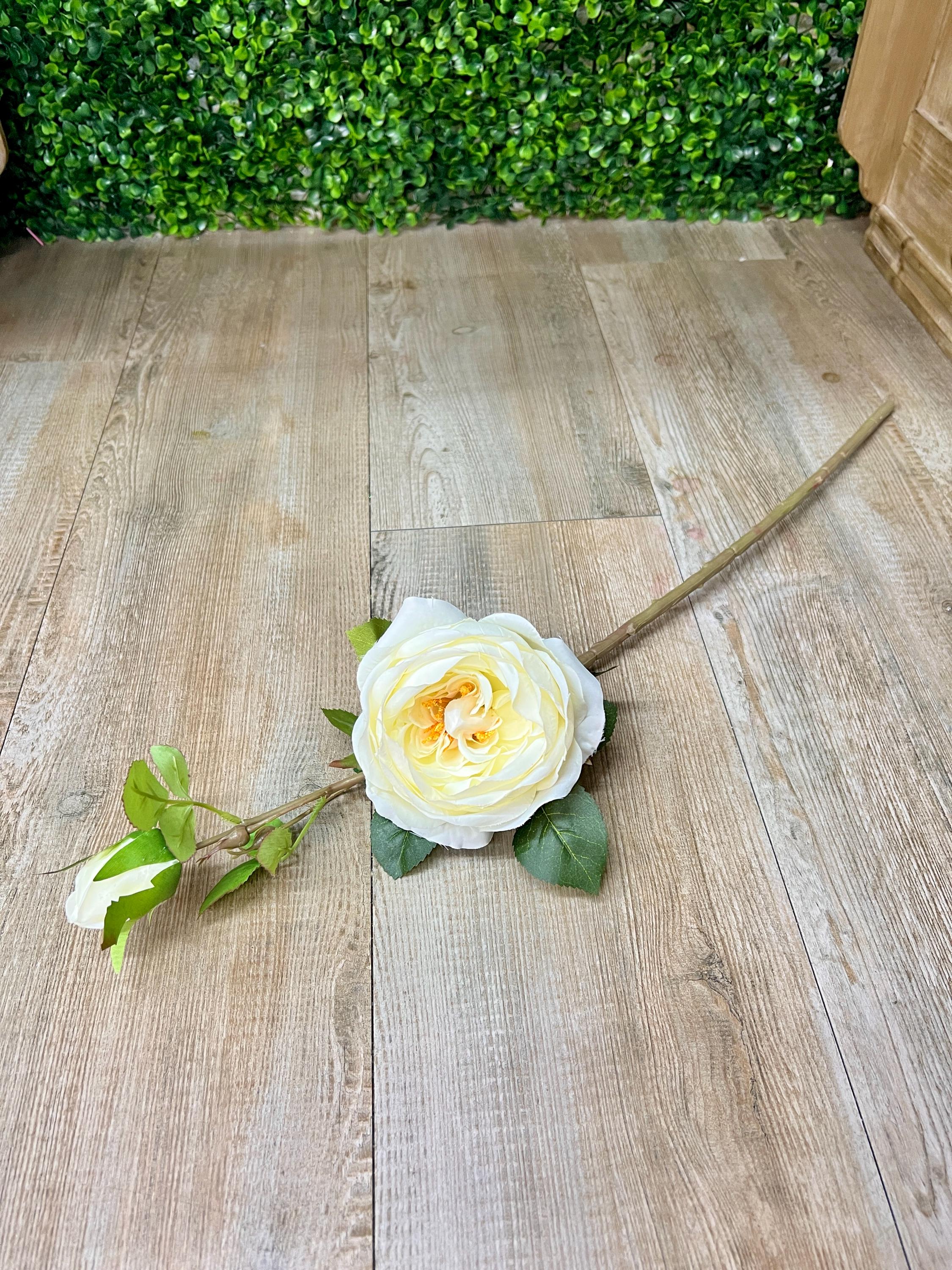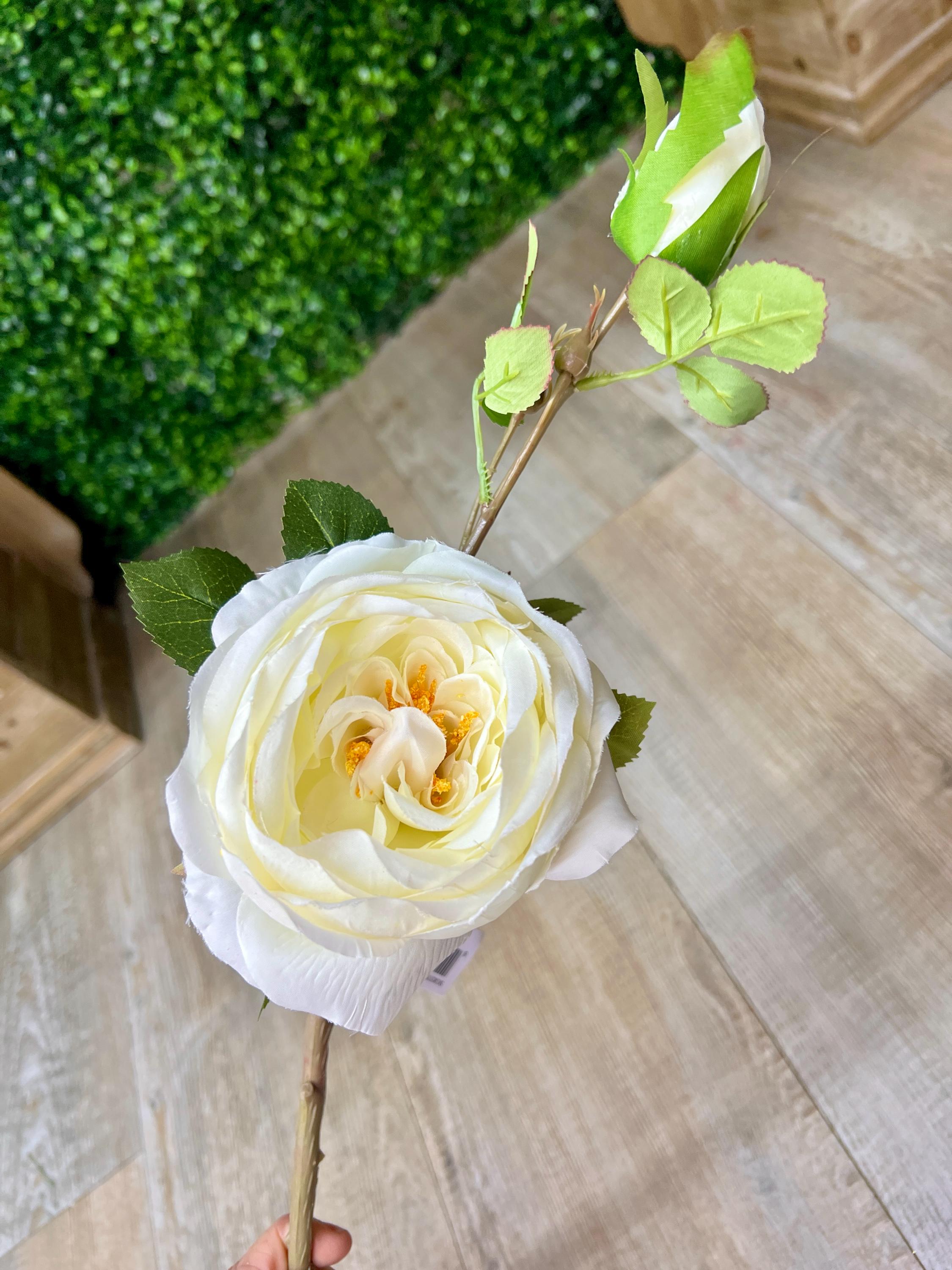 White Cabbage Rose w/ Bud Spray - 24 inches