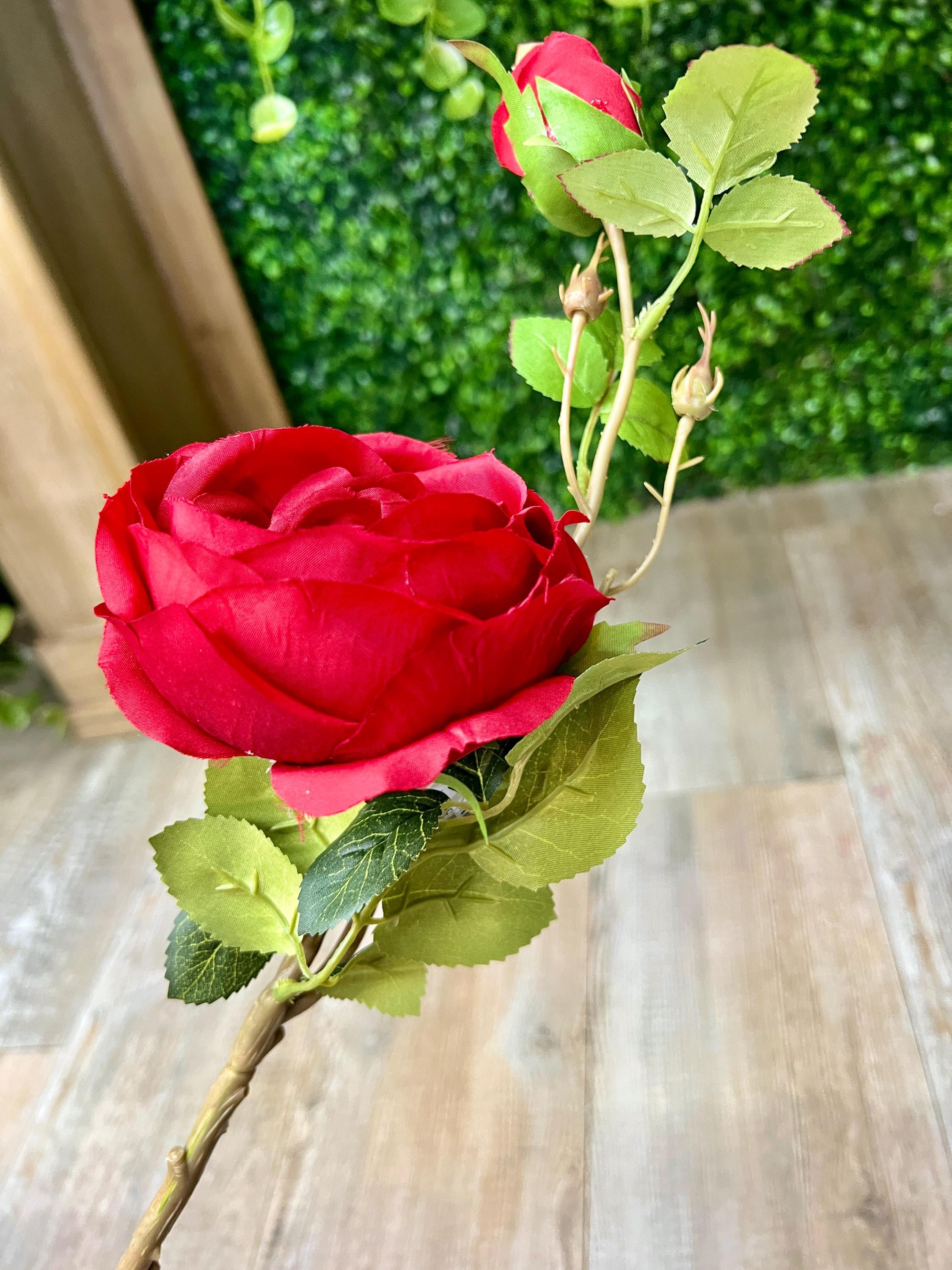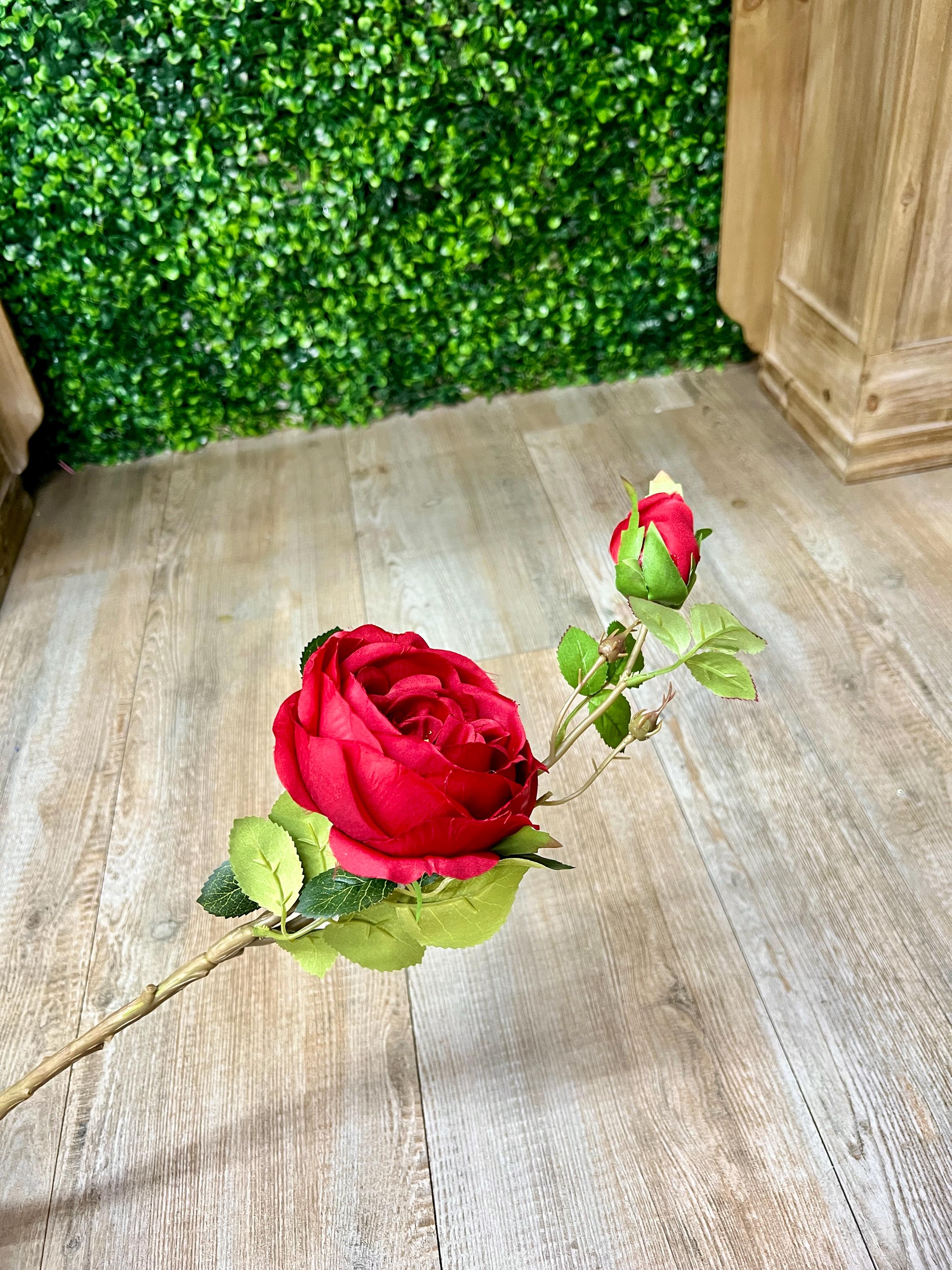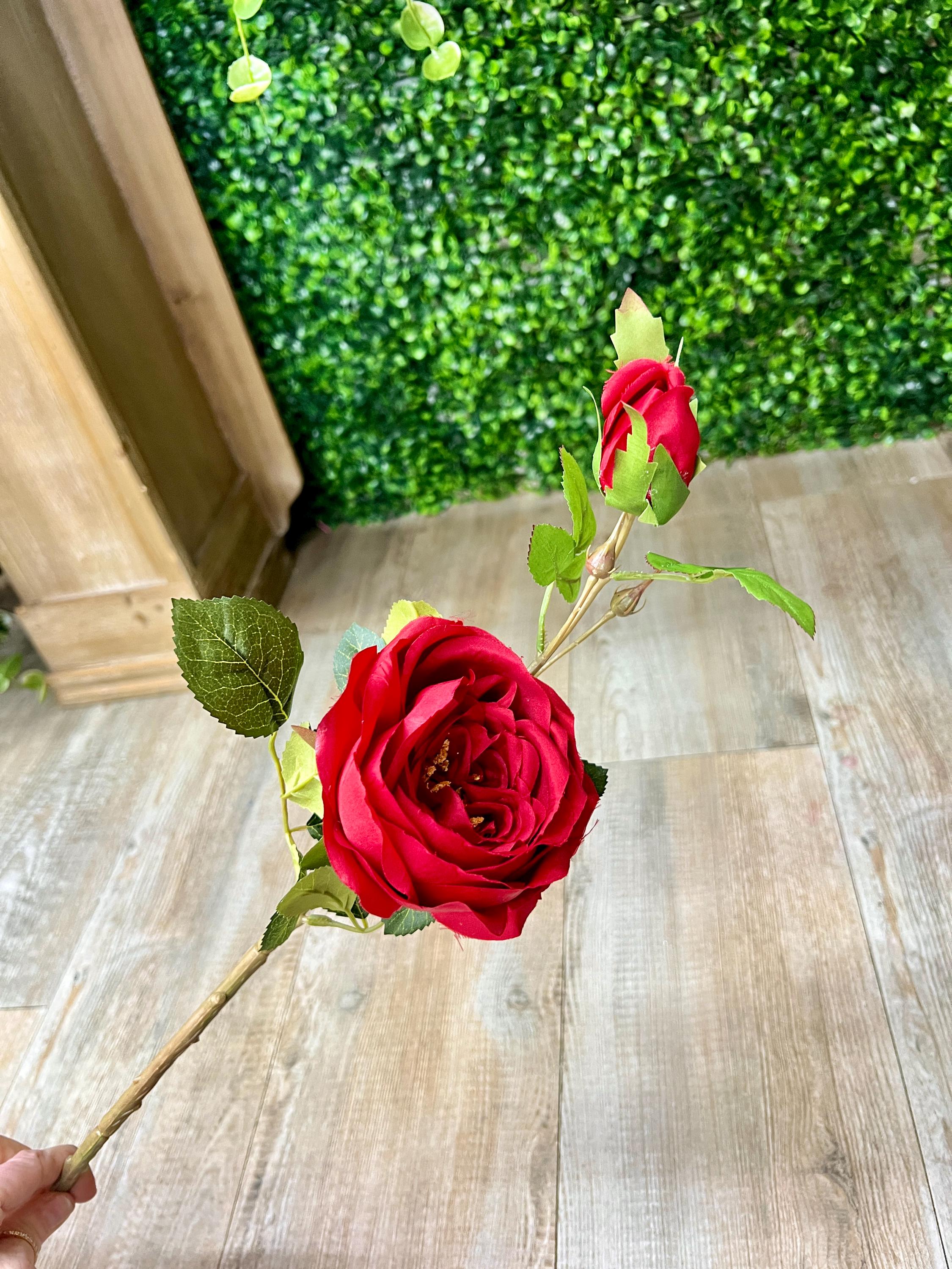 Red Cabbage Rose w/ Bud Spray - 24 inches