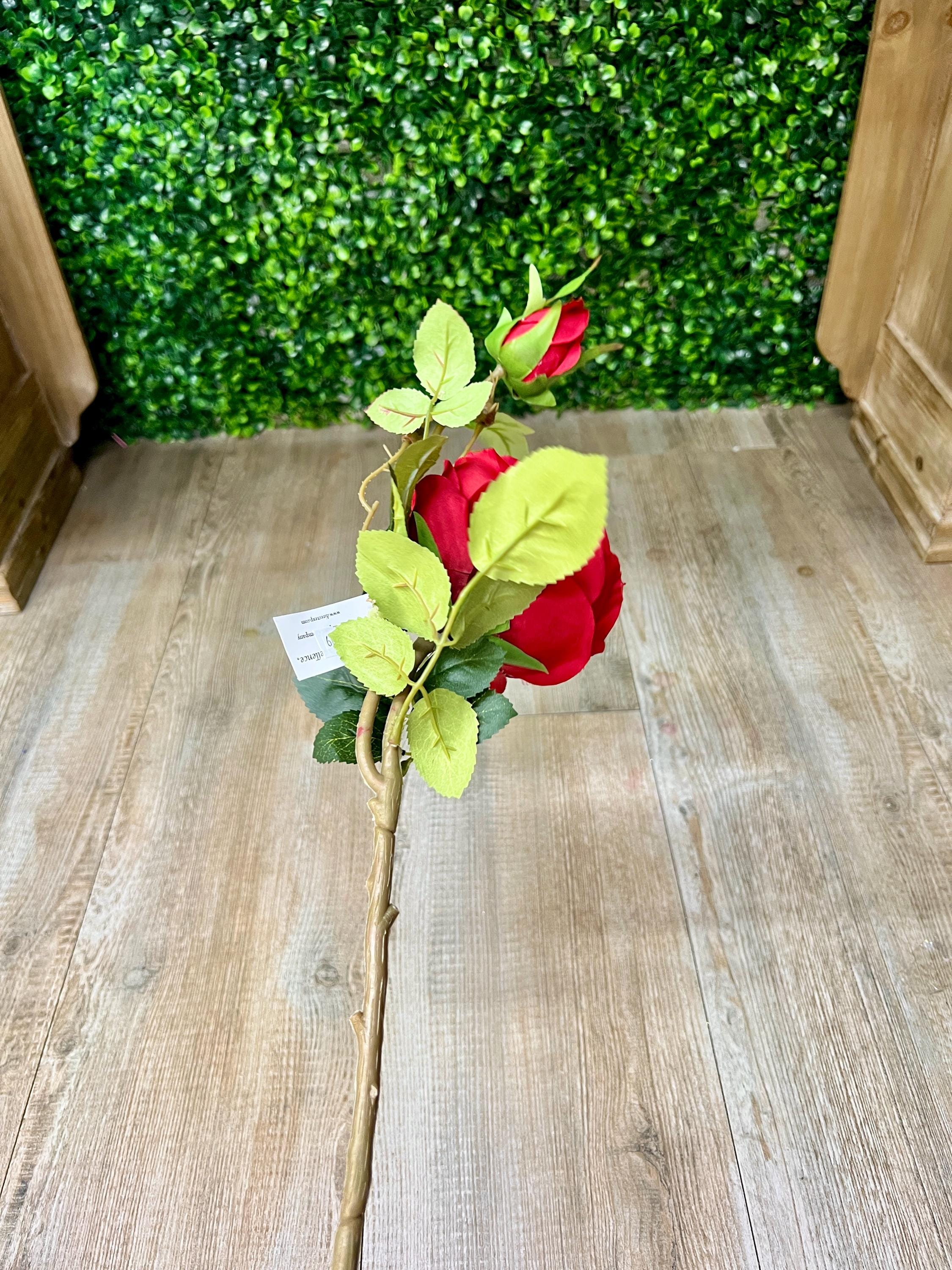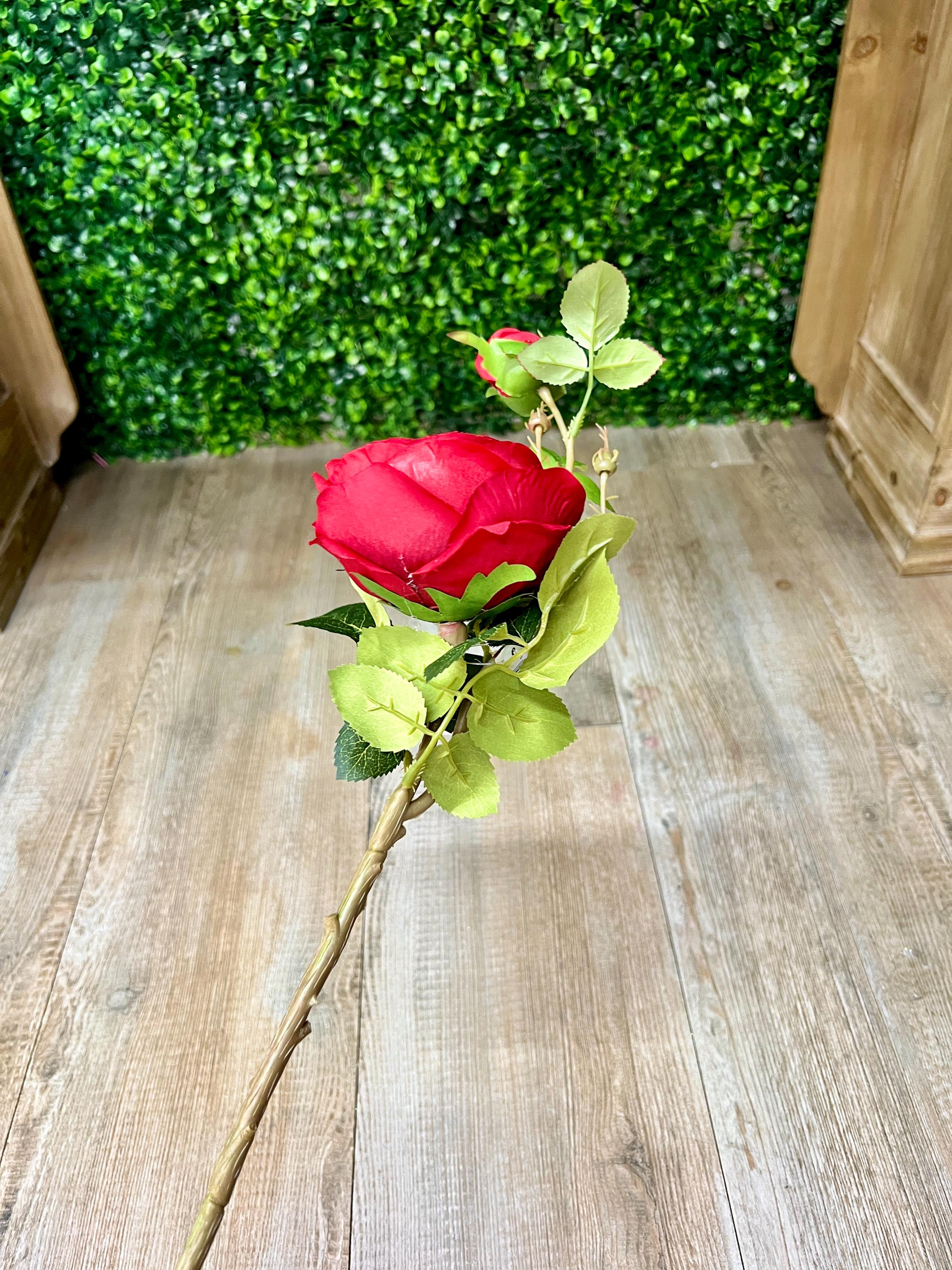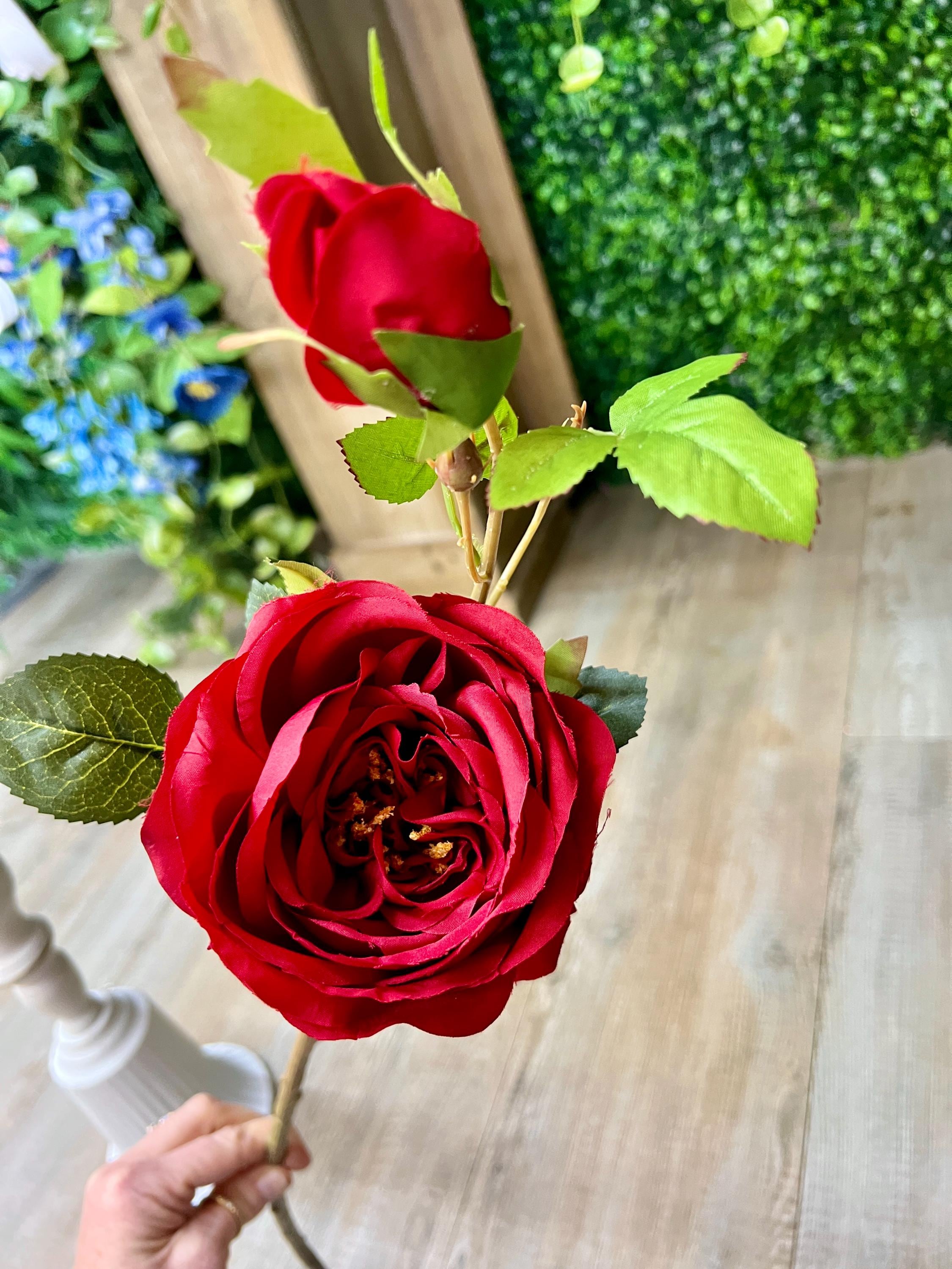Red Cabbage Rose w/ Bud Spray - 24 inches