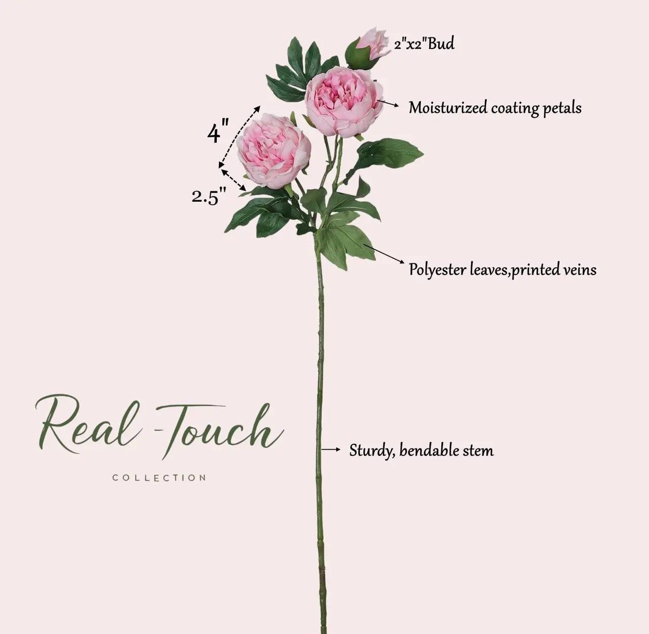 Pink Real Touch Peony Spray ~ 32 Inch ~ Ultra Lifelike
