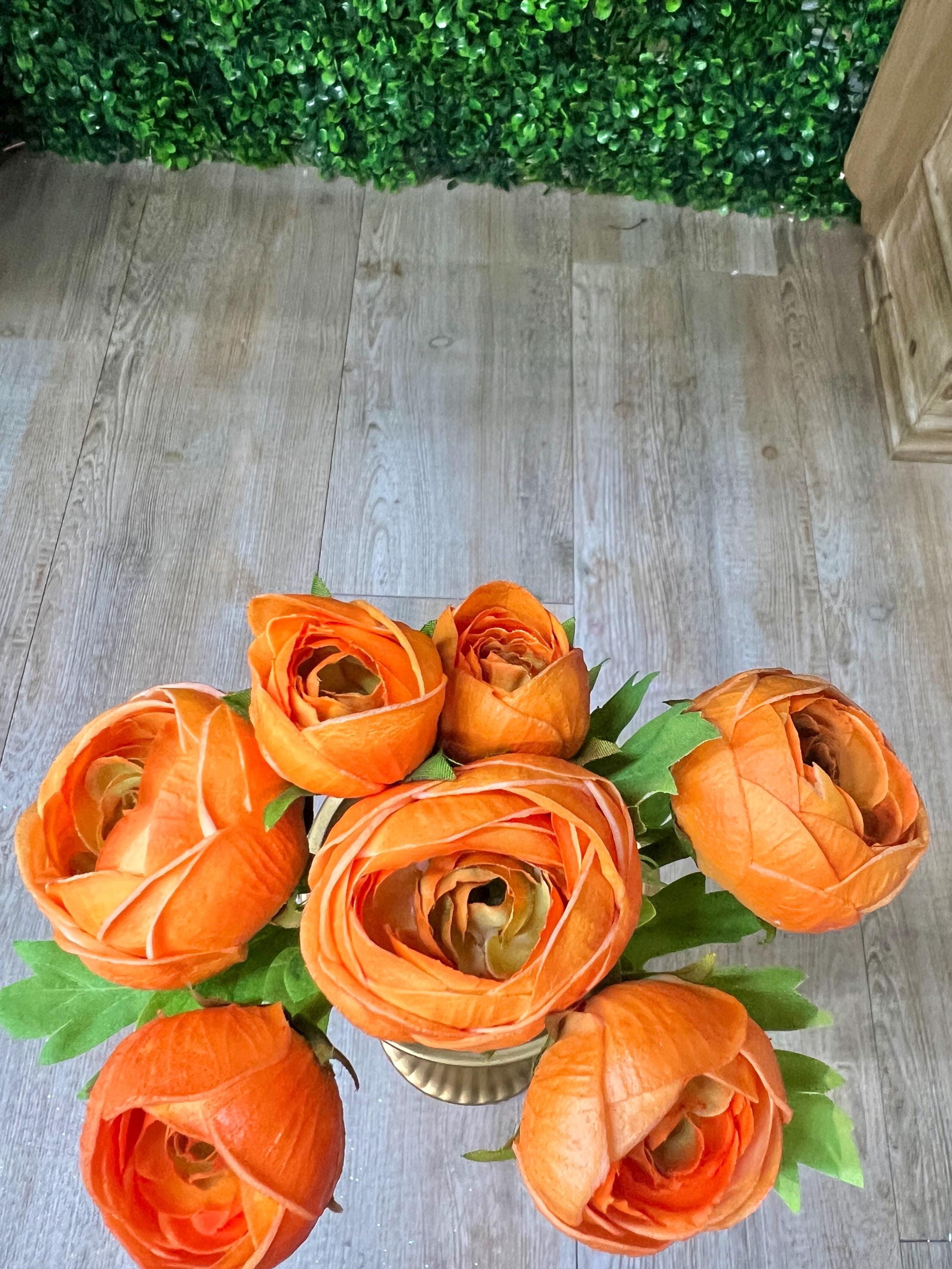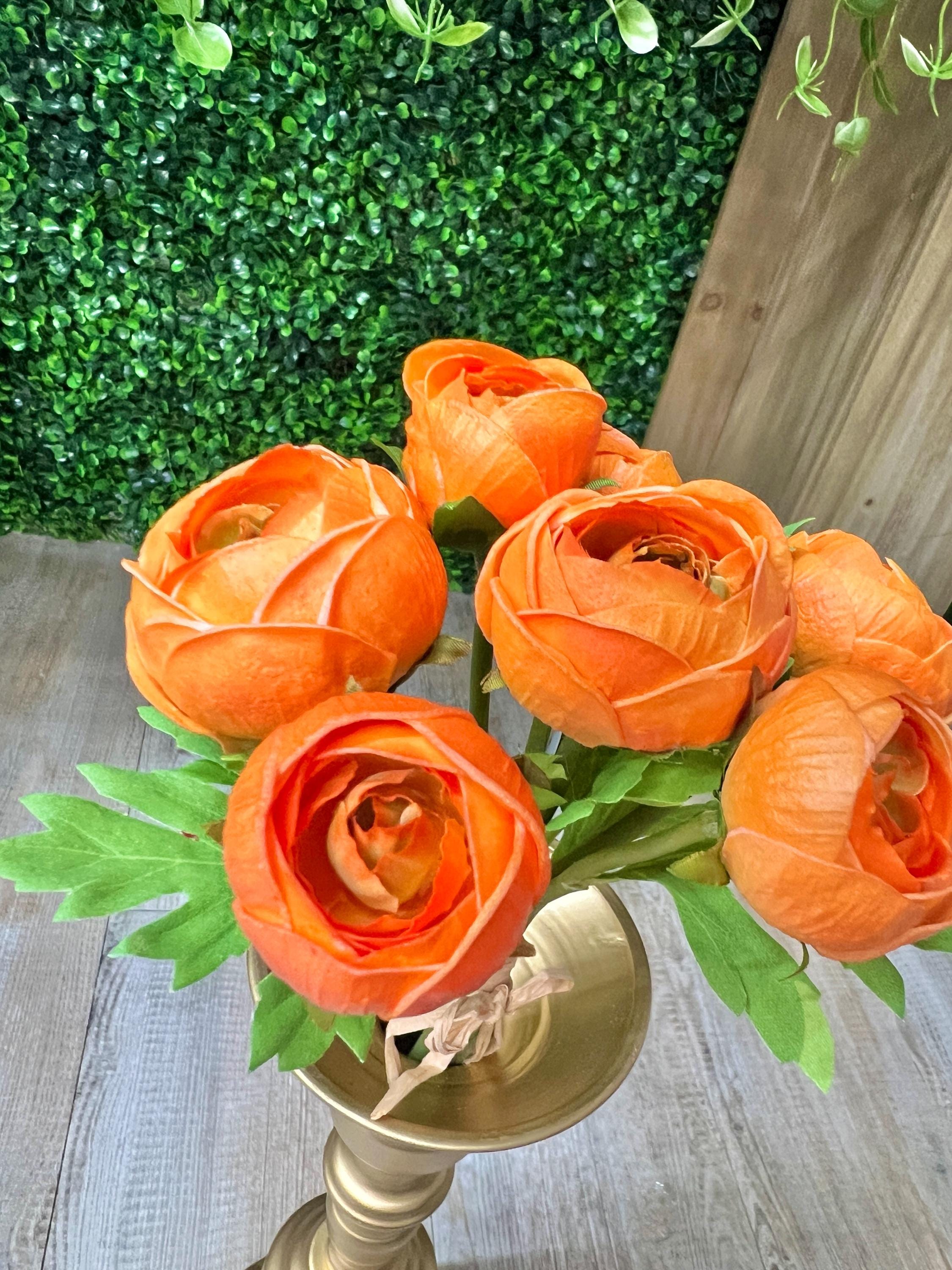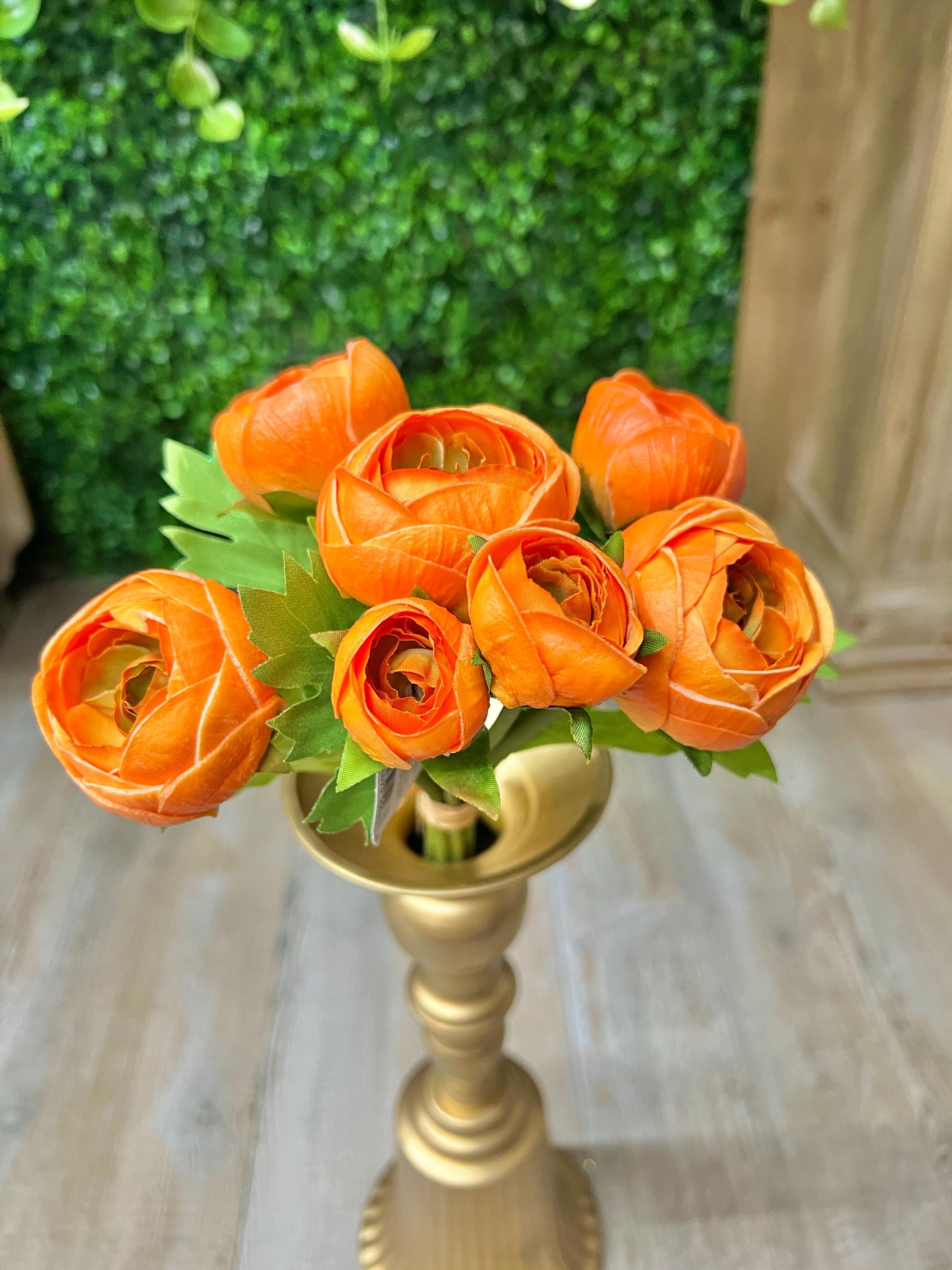 11 inch Soft Touch Ranunculus Bundle ~ Orange
