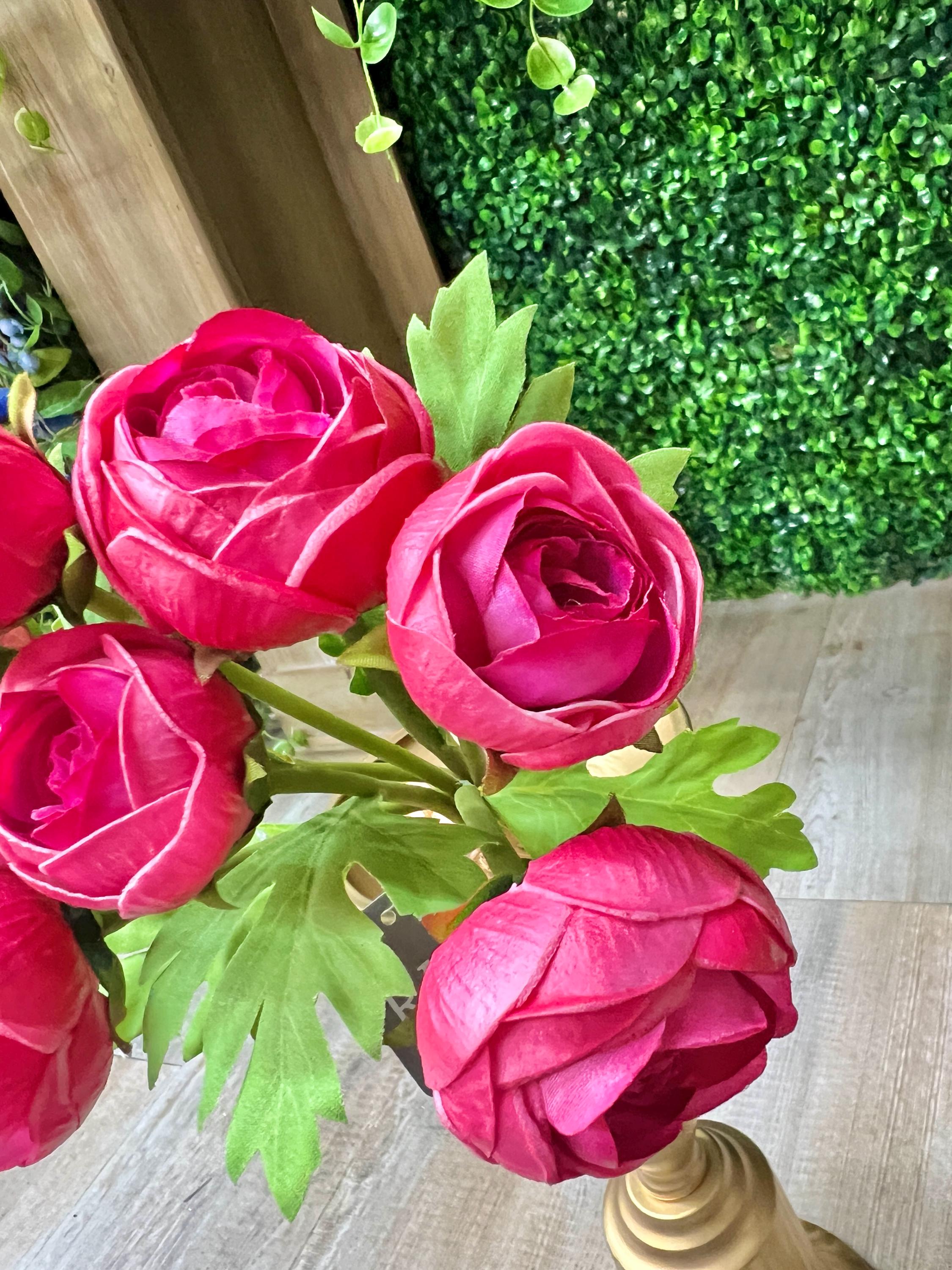 11 inch Soft Touch Ranunculus Bundle ~ Hot Pink