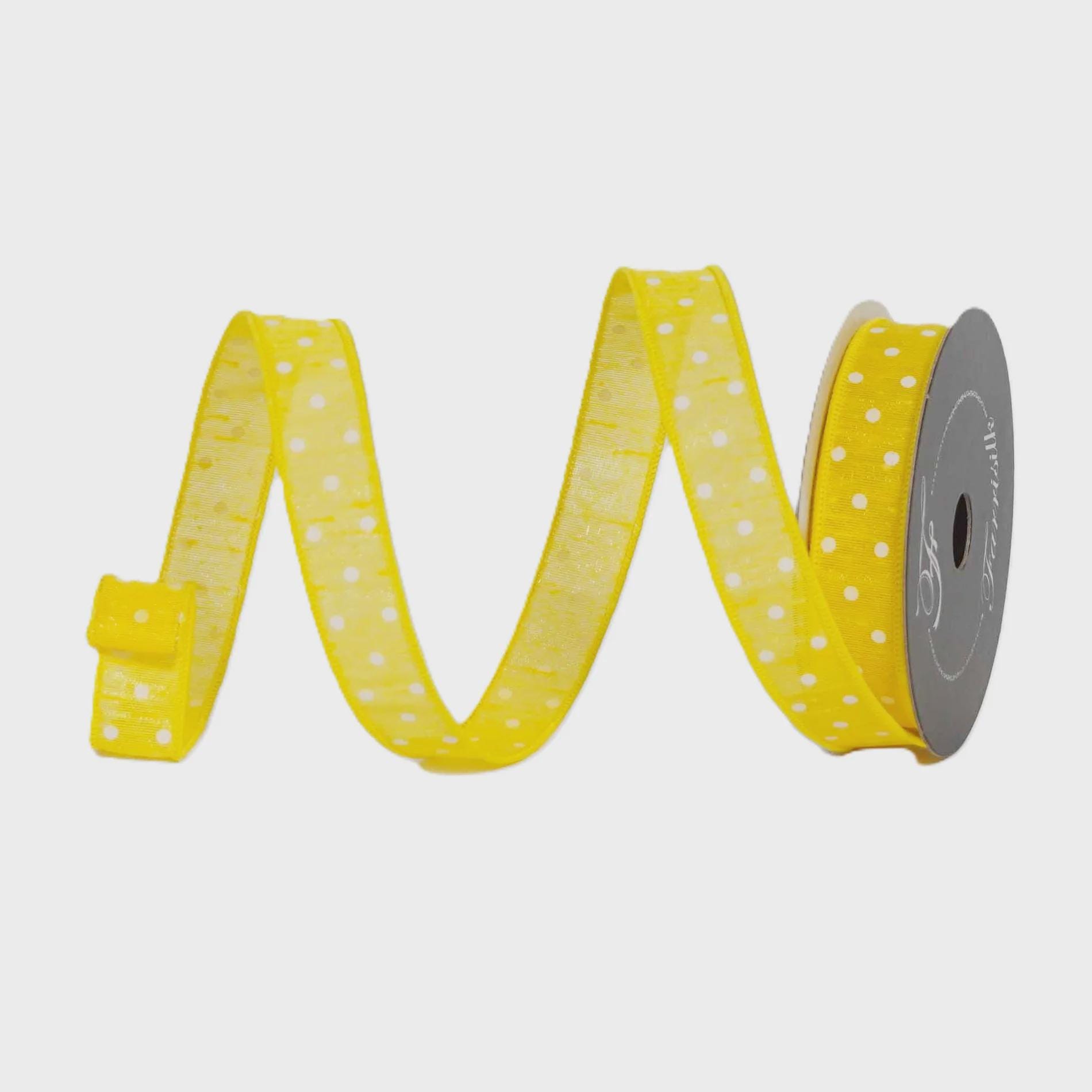 1 Inch Yellow and White Polka Dot Ribbon ~ 10 yards ~ Wired